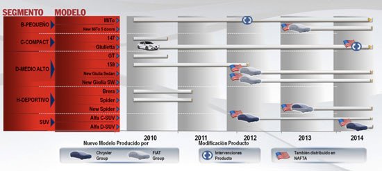 El matrimonio con Chrysler permitirá el desembarco del Alfa Giulietta en terreno estadounidense para el año 2014. Para el año 2012 llegará el nuevo sedán Alfa Giulia con plataforma del grupo Fiat y un nuevo SUV con plataforma Chrysler.