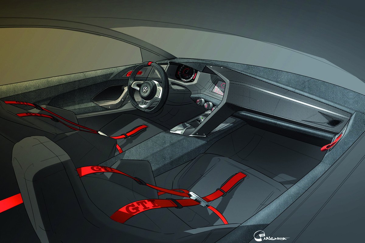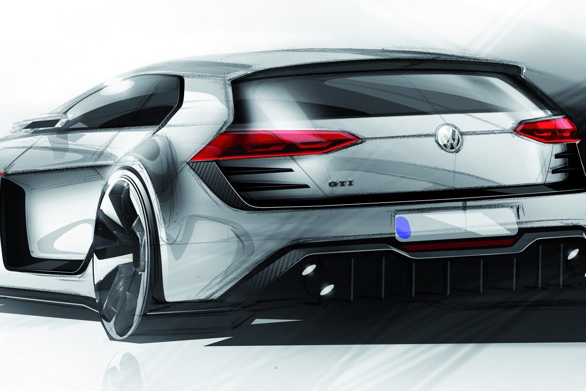 Pero el Design Vision GTI no es sólo motor. La carrocería del Golf sufre una transformación radical, reduciendo la altura casi 6 centímetros, aumentando la anchura en 7, y con unas enormes vías.
