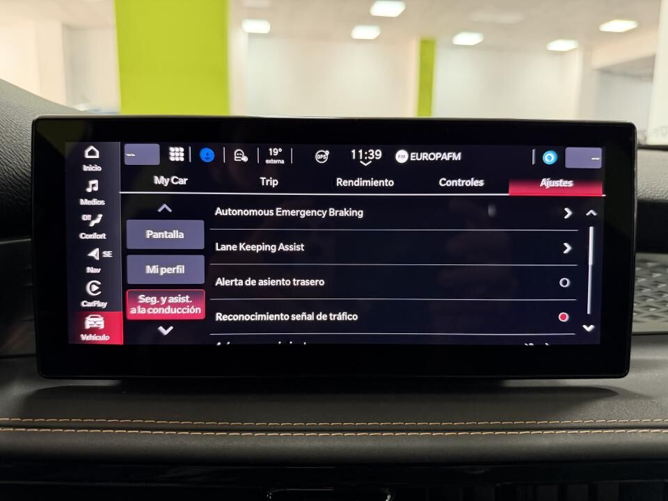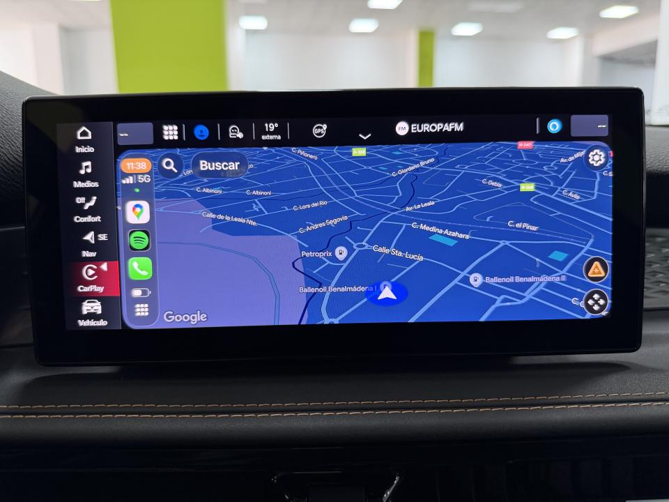 • Navegador G.P.S. con pantalla táctil de 10" • Asientos de cuero y tela • Cuadro de instrumentos digital de 10" • Apple Carplay y Android Auto inalámbricos • Cambio automático y secuencial • Cámara de visión trasera • Sensores de parking delanteros y traseros • Faros Full LED "pure LED vision" • ACC - Control de crucero adaptativo • Frenada de emergencia asistida (frena solo) • Carga inalámbrica del teléfono móvil • Climatizador automático bizona • Apertura y arranque manos libres • Aviso cambio carril + control dirección • Llantas aleación de 18" bicolor • Llamada automática a emergencias "SOS" • Plegado automático de espejos • Reconocimiento señales de tráfico A destacar: • Tiene Apple CarPlay y Android Auto para poder manejar tu móvil desde la pantalla del coche y así acceder el navegador G.P.S o las aplicaciones como Spotify. • No tienes que sacar las llaves nunca del bolsillo, ya que el coche "te reconoce" y se abre/cierra solo. • ACC: mantiene automáticamente la distancia con el coche que tienes delante. • Para facilitar el aparcamiento tiene cámara de visión trasera y sensores de aparcamiento traseros y delanteros • El cuadro de instrumentos es digital y se puede personalizar. Gastos de transferencia y preparación seiscientos euros