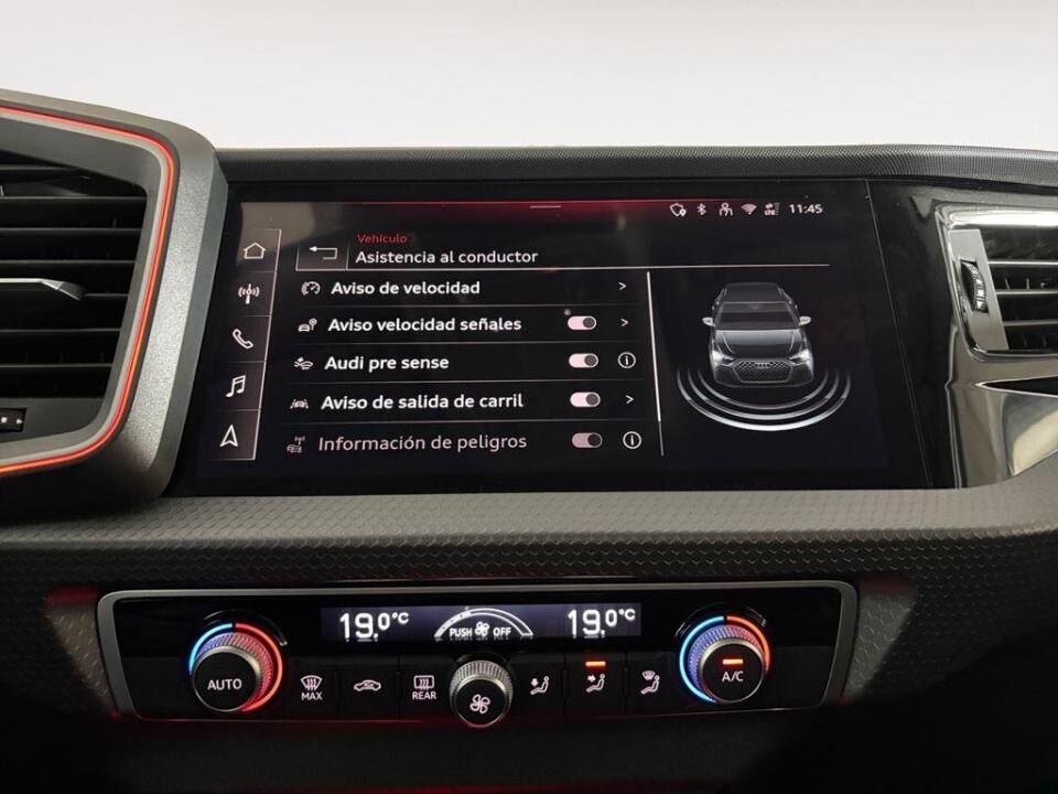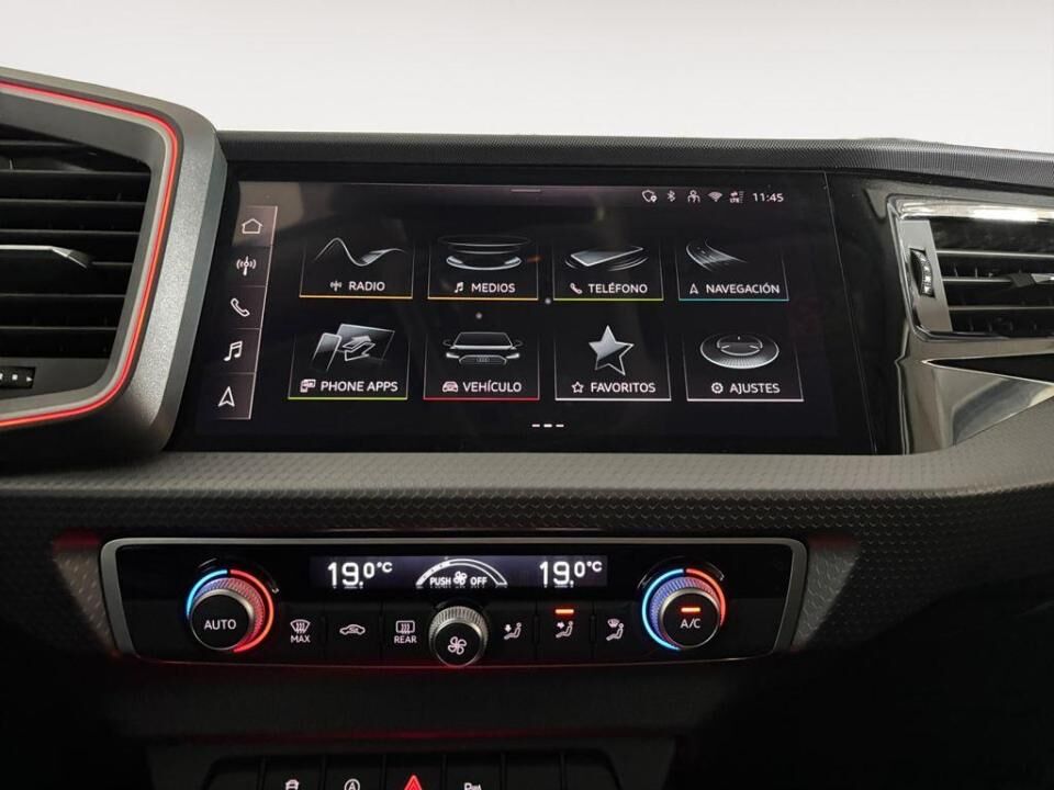 ¡EL ESTILO URBANO SE UNE AL ADN DEPORTIVO DE AUDI! Opcionales: - Cámara de marcha atrás. - Control automático de la velocidad (Tempomat). - Faros LED y grupos ópticos traseros LED. - Llantas de aleación ligera de 17" en diseño de 5 radios con inserciones en plástico negro. - Paquete de contraste 1. carcasa del espejo exterior, parte inferior parachoques delantero (no con S Line exterior). - Paquete Tech. Audi parking system trasero. Audi vitual cockpit. Volante deportivo de cuero de 3 radios multifunción plus. Peparación para MMI navegación plus, Audi parking system plus, cámara de visión trasera. - Retrovisores exteriores con ajuste eléctrico y calefactables. Equipamiento destacado: - Sistema Start-Stop. - Bluetooth. - Sistema de sonido con 4 altavoces pasivos delanteros. - Iluminación interior delantera, trasera y de maletero. - Retrovisor interior con ajuste manual antideslumbrante. - Luces antiniebla traseras. - Sistema de detección de asientos ocupados. - Airbags laterales delanteros + airbags de cabeza + airbags frontales para conductor y acompañante. - Retrovisores exteriores eléctricos y calefactables en color carrocería. - Faros halógenos y pilotos traseros. - Cierre centralizado. - Dirección asistida electromecánica. - Luz diurna. - Elevalunas eléctricos delanteros y traseros. - Aplicaciones interiores de aluminio. - Climatizador automático comfort de 2 zonas. Asistentes y seguridad: - Audi pre sense front (asistente de frenada preventiva con detección de peatones y vehículos). - Aviso de salida de carril (Lane Departure Warning). - Sistema de aviso de presión de neumáticos. - Sensor de lluvia y luces automáticas. - Control de crucero (Tempomat). - Audi parking system trasero. - Llamada de emergencia y asistencia en carretera Audi connect. - Fijaciones i-Size en asientos traseros exteriores. - Sistema de detección de fatiga (Driver Activity Assistant). En Grupo Ureta, tu próximo coche te está esperando. Ofrecemos las mejores marcas, la atención que mereces y oportunidades únicas para estrenar vehículo hoy mismo. Por su puesto, le ofrecemos todas las opciones de financiación, entrega y otros servicios adicionales para convertir la compra de su vehículo en una experiencia grata e inolvidable. Contacte con nosotros sin compromiso. Estaremos encantados de atenderle.