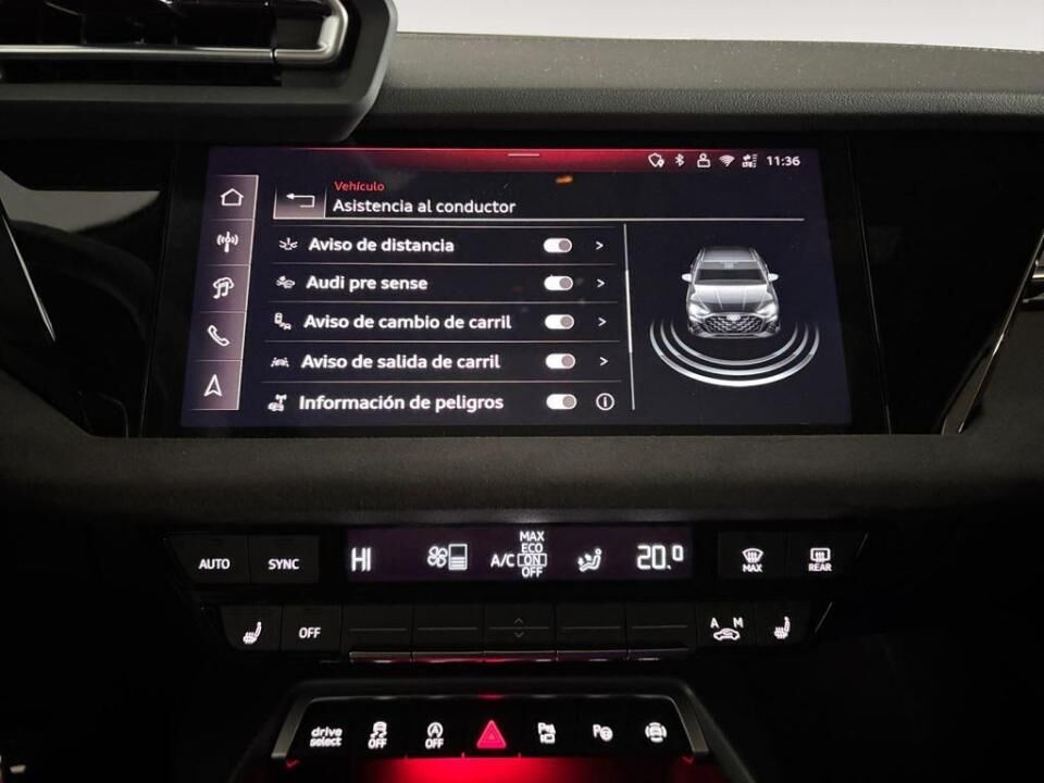 EQUIPADO, DEPORTIVO Y CON DISEÑO S LINE. ¡EXCELENTE A3 SEDÁN CON MÁS DE 16.000€ EN OPCIONALES! Opcionales: - Asistente de conducción adaptativo con emergency assist. - Audi Application Store y smartphone interface. - Audi connect Navegación e infotainment plus. - Audi hold assist. Ayuda de arranque en pendientes. - Cristal termoaislante. - Faros matrix LED. - Llave de confort con desbloqueo del maletero controlado por sensor. - Paquete Climatización plus. Calefacción de asientos delanteros, Climatizador automático de confort de 3 zonas. - Paquete de asistencia a la Conducción y estacionamiento plus y Paquete de asistencia de sistemas. Sistema de seguridad ampliado (PreCrash) sistemas de protección y advertencia pus, Aviso de cambio de carril con aviso de peligro al bajar. - Paquete de Navegación. Audi Virtual cockpit plus, Head-up display, MMI Navegación plus con MMI touch, Sistema de sonido premium SONOS con sonido 3D. - Paquete Premium: Paquete confort plus, Apoyo lumbar de 4 posiciones para los asientos delanteros, Retrovisores ext. ajustables/abatibles eléctricamente y térmicos con ajuste antideslumbrante automático. - Techo corredizo eléctrico de cristal. Equipamiento destacado: - ABS. - Elevalunas eléctricos delanteros y traseros. - Asientos delanteros normales. - Receptor de radio digital. - Tornillos de rueda antirrobo. - Audi drive select. - Respaldo trasero abatible. - Tren de rodaje deportivo. - Set de reparación de neumáticos. - Línea S line (molduras iluminadas, paquete exterior, parrilla Singleframe negro titanio). - Botiquín y 2 triángulos. - Audi Phone Box Light. - Freno de estacionamiento electromecánico. - Herramientas de a bordo. - Alfombrillas delanteras y traseras. - Retrovisores exteriores eléctricos y térmicos (carcasas en negro). - 6 altavoces pasivos. - Faros LED. - Pintura metalizada Rojo Progressive. - Cristales traseros oscurecidos. - Dirección asistida electromecánica. - Revestimiento interior del techo en tela específica. - Aplicaciones interiores en óptica de aluminio. - Volante multifunción de 3 radios achatado con levas. - Climatizador automático de 1 zona. - Llave de control remoto. - Parabrisas antitérmico con aislamiento acústico. - Reposabrazos central delantero. - Retrovisor interior antideslumbrante. - Smartphone Interface. - Conexiones USB delanteras y traseras. - Paquete estilo negro con logos en negro Plus. - S line interior (microfibra Dinamica/cuero sintético, pedales acero, asientos deportivos). - Llantas de aleación 19” diseño estrella 5 brazos en Y. - Inserciones microfibra Dinamica en negro. - Paquete de iluminación ambiente Pro. - Microfibra Dinamica / cuero sintético en negro. Seguridad: - Control de tracción. - ESP. - Indicador de presión de neumáticos. - Audi pre-sense front. - Sistema de aparcamiento asistido + Audi parking system plus. - Asistente de mantenimiento de carril. - Airbag conductor y acompañante con desconexión. - Airbags laterales y de cabeza. - Grupos ópticos traseros LED con intermitentes dinámicos. - Llamada de emergencia y asistencia Audi connect. - Seguro infantil manual. - Detector de fatiga y distracción. - Reconocimiento de señales de tráfico por cámara. -Regulador de velocidad. - Asistente de esquiva y asistente de giro. - ISOFIX y Top Tether. - Llamada de emergencia legal. En Grupo Ureta, tu próximo coche te está esperando. Ofrecemos las mejores marcas, la atención que mereces y oportunidades únicas para estrenar vehículo hoy mismo. Por su puesto, le ofrecemos todas las opciones de financiación, entrega y otros servicios adicionales para convertir la compra de su vehículo en una experiencia grata e inolvidable. Contacte con nosotros sin compromiso. Estaremos encantados de atenderle.