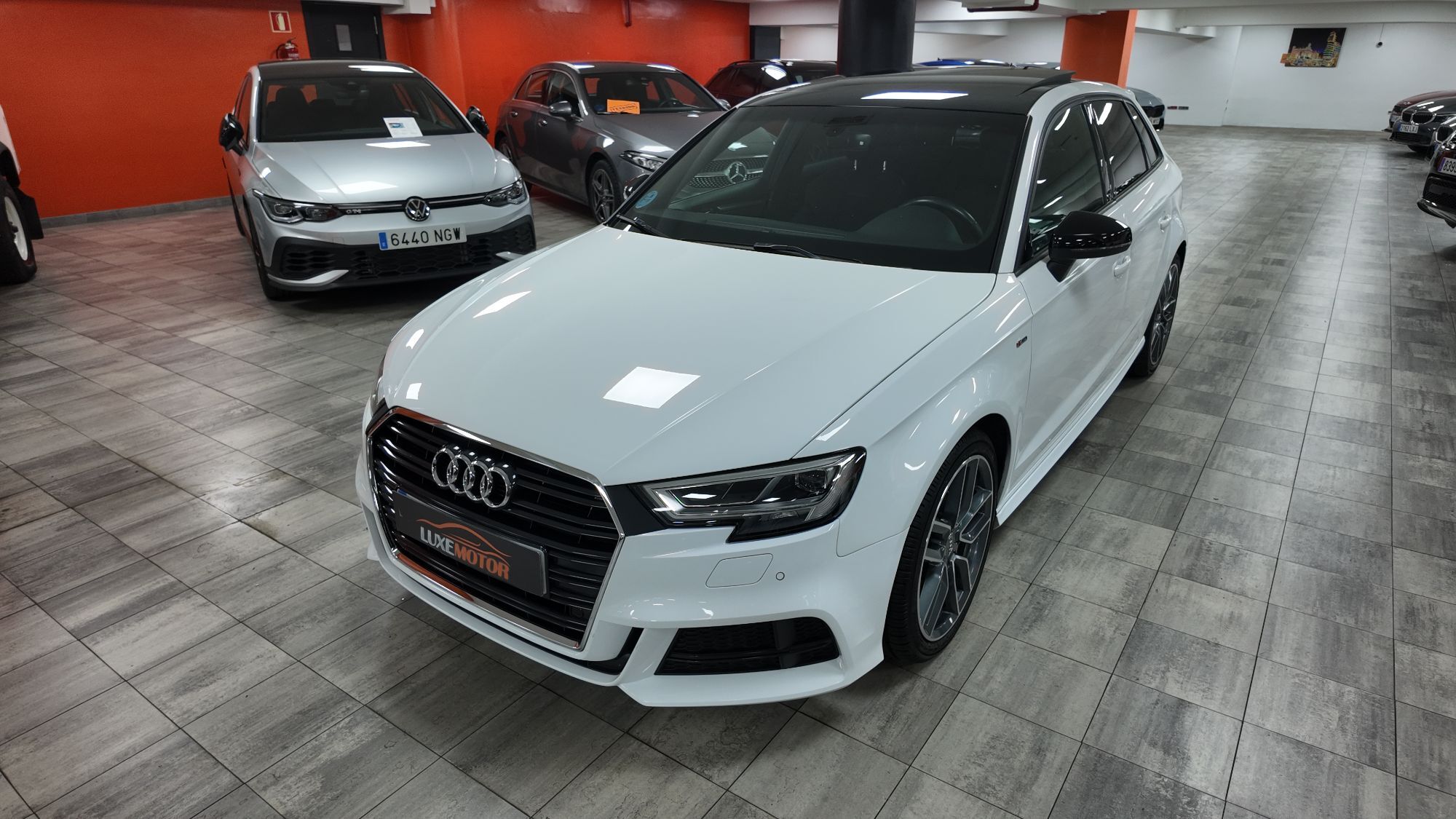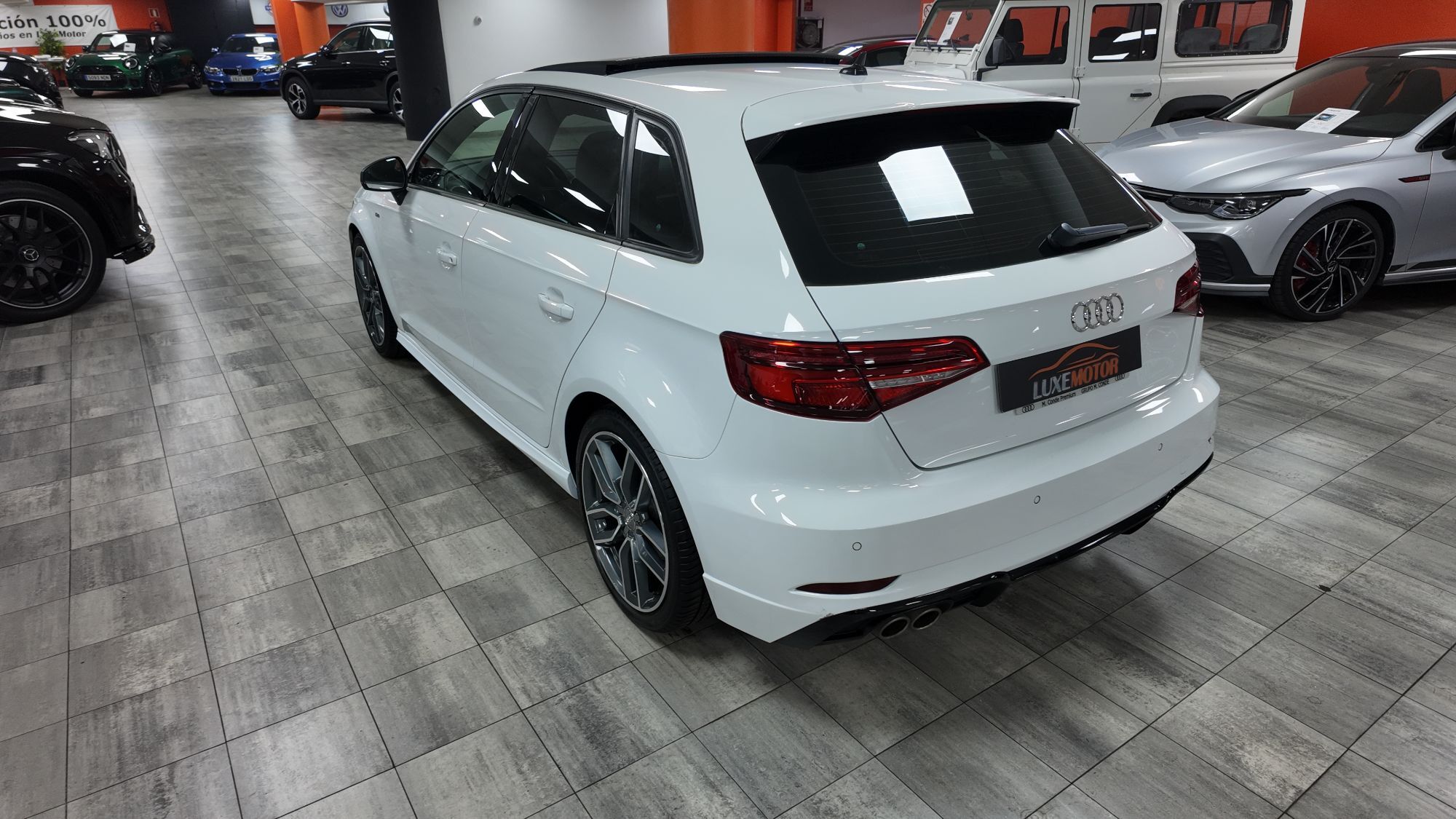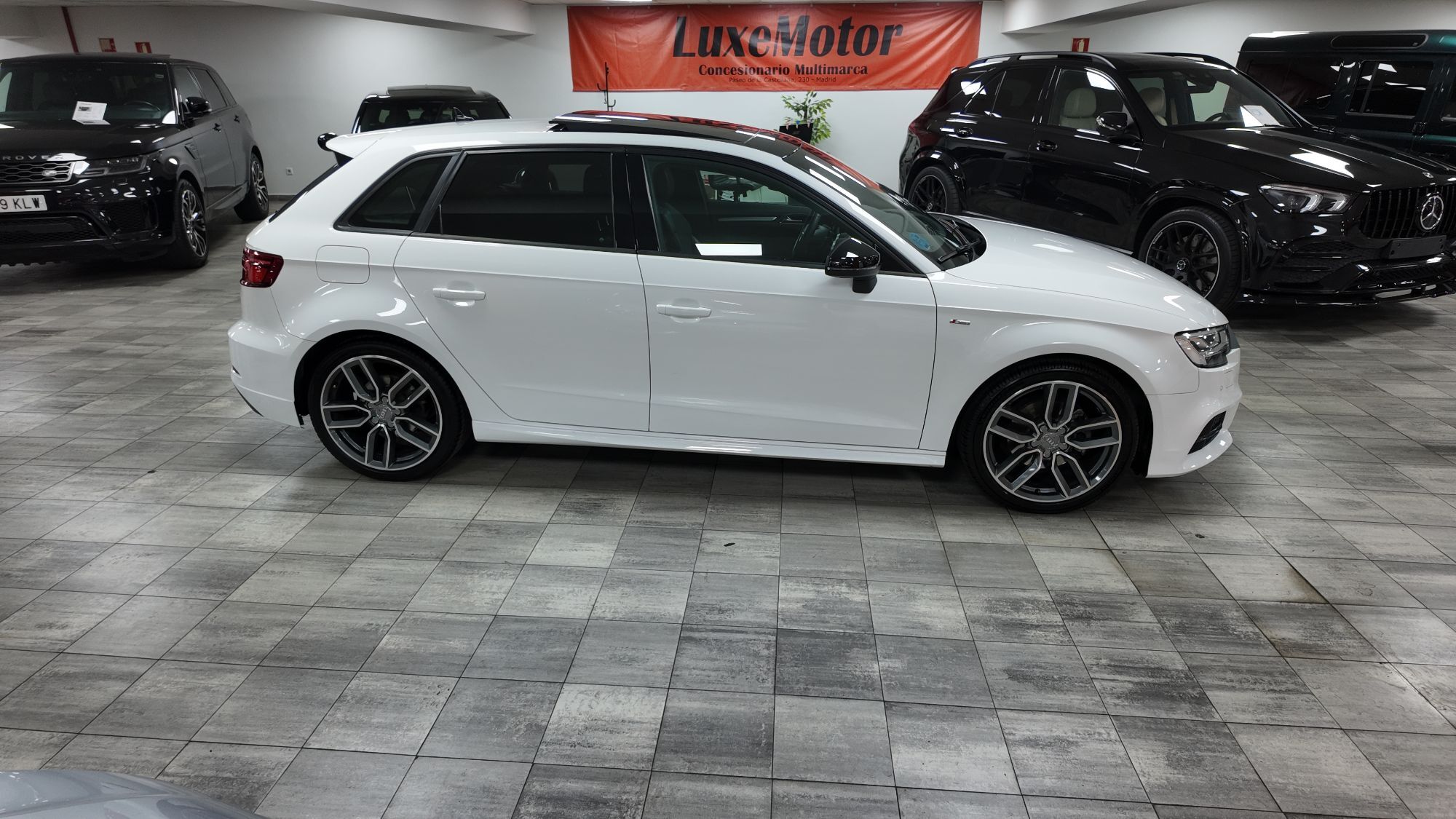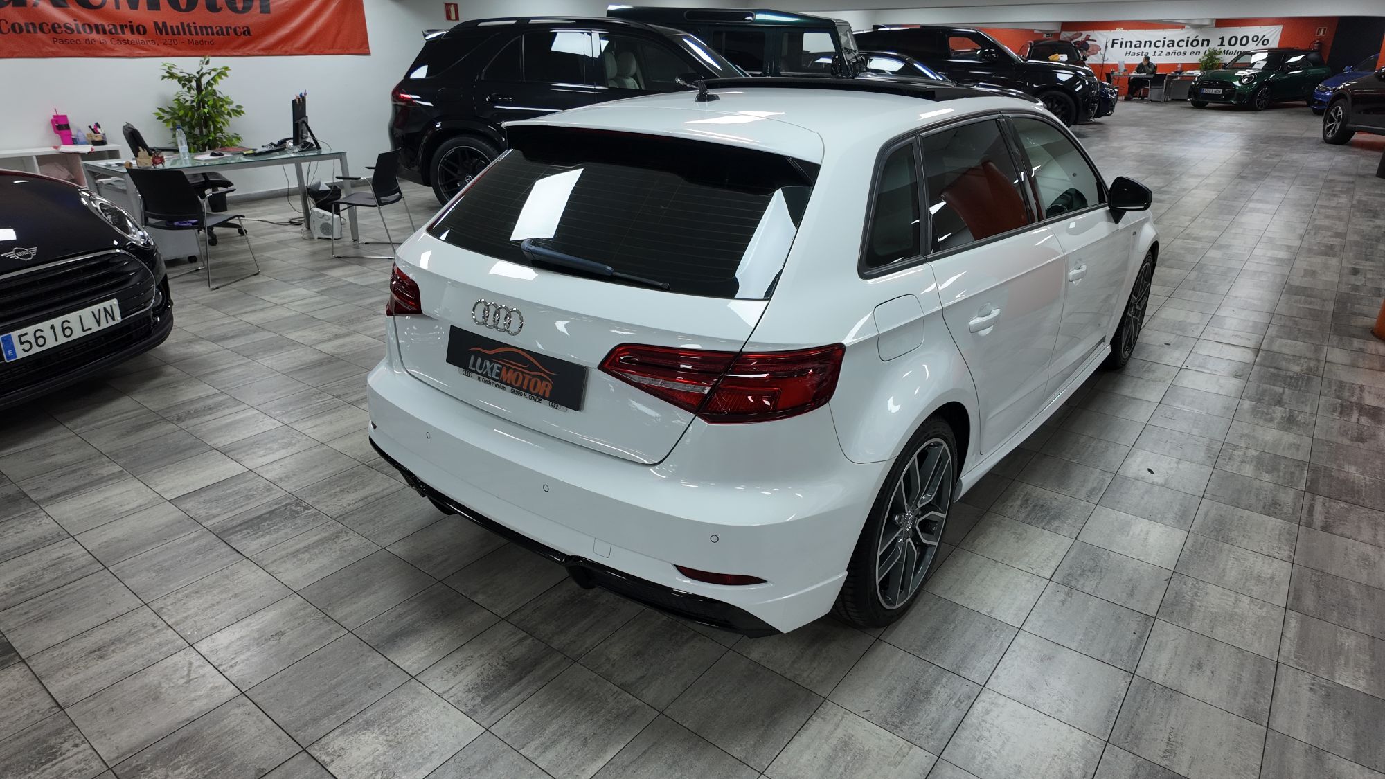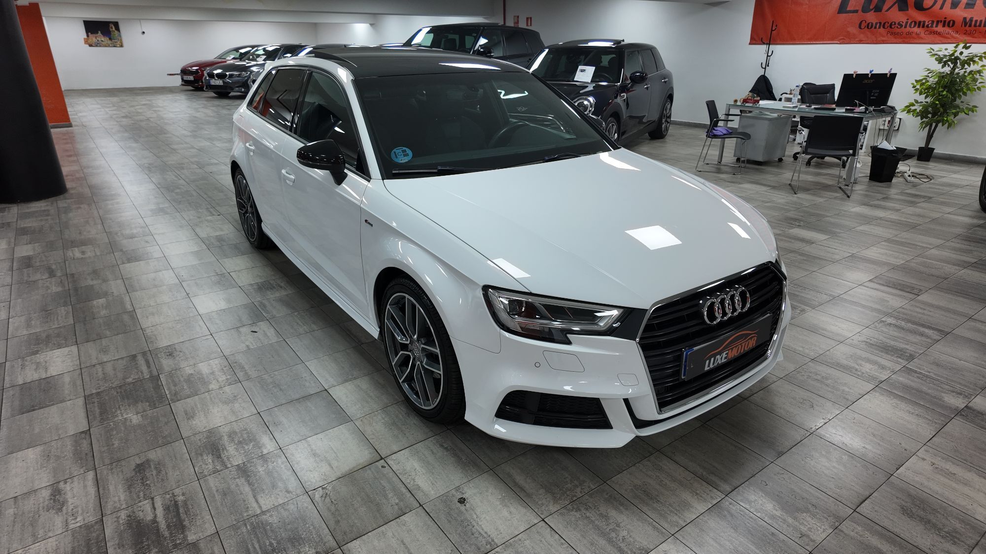 LUXEMOTOR Espectacular¡¡A3 Sportback 35 Tfsi 150cv Sline Aut 5p,paquete deportivo SLine completo interior y exterior,cambio manual 6 vel,faros LED matrix con intermitentes dinamicos,llantas 18",tapiceria tela/cuero negro/gris con asientos deportivos,techo solar panoramico electrico de cristal,climatizador de 3 zonas automatico,sistema navegacion tactil con cockpit cuadro instrumentos,volante deportivo de cuero multifuncion,control crucero velocidad adaptativo,suspension deportiva,mapas de conduccion Audi Drive,bluetooth telefono con carga wifi,sensores aparcamiento traseros,aviso de cambio de carril involuntario,equipo sonido Audi,todos los extras...libro de mantenimiento AUDI. Precio todo incluido (Impuestos, transferencia a su nombre y garantía) Certificado de kilometraje y ausencia de daños estructurales Compramos su coche en el acto y al contado Financiación 100% en el acto Posibilidad de cambio de vehículo en 10 días Entregamos su vehículo en cualquier punto de la península (Consultar presupuesto) 3000m2 de exposición en el centro de Madrid Pº de la Castellana 230, junto a Plaza de Castilla (metro, bus y Renfe) Parking gratuito, entrada por c/ Carmen Sánchez Carrascosa,5 Horario; de Lunes a Viernes de 9.30h a 14.00h y de 16.00h a 19.00h Sabados de 10:30 a 14:00