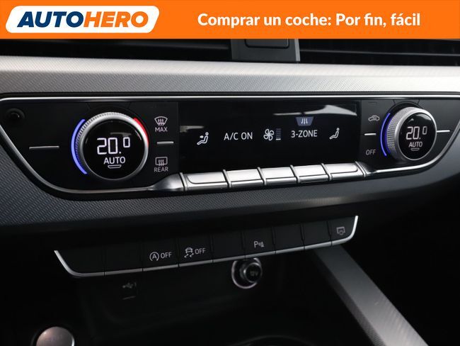 AUTOHERO, Comprar un coche: Por Fin, Fácil Disfruta de nuestras ofertas y ventajas por ser nuestro cliente: - Recoge el coche de tus sueños gratis en cualquiera de nuestros puntos de entrega. ¡solo por tiempo limitado, no lo dejes escapar! - Cuida del coche con el mantenimiento más completo desde 5€ al mes - Financia con nosotros, y consigue uno de los TIN más bajos del mercado - Garantía gratuita de 12 meses incluida y ampliable hasta 36 meses - Política de devolución de 21 días con garantía de devolución del 100% del dinero Este vehículo está disponible en uno de nuestros Autohero Center, llámanos y pregunta su disponibilidad. Nuestro nuevo horario es: L-V: 09:00-21:00, S:10-19 y D:10-14 Pero si no puedes venir, no te preocupes, también puedes comprar el coche de tus sueños en tan solo unos pocos clics. Entra en nuestra web y disfruta de la experiencia Autohero. Características del vehículo: - Navegador GPS - Sistema limitador de velocidad - Cámara trasera - Sensores de aparcamiento: Delantero - Sensores de aparcamiento: Trasero - Parabrisas trasero calefactable - Portón trasero eléctrico (abrir + cerrar) - Compatibilidad con Apple CarPlay - Compatibilidad con Android Auto - Climatizador automático 2 zonas - Luces de maletero - Persiana de maletero - Levas de cambio en el volante - Volante multifuncional - Freno de estacionamiento electr. - Elevalunas eléctricas delanteras - Elevalunas eléctricas traseras - Cierre centralizado - Reposabrazos delantero - Portavasos delantero - Reposabrazos trasero - Bloqueo de elevalunas electricos trasero - Radio - Entrada USB - Bluetooth - Dispositivo de manos libres - Ordenador de a bordo - Indicador de temperatura exterior - Entrada 12V - Retrovisor exterior color carrocería - Retrovisor exterior esférico derecha - Retrovisor exterior esférico izquierda - Retrovisores exteriores regulables - Retrovisores exteriores con intermitente - Retrovisores exteriores plegables - Retrovisores exteriores calefactables - Control automático de las luces - Sensor de luz y lluvia - Lavafaros - Limpiaparabrisas trasero - Sistema antibloqueo (ABS) - Control de estabilidad electrónico (ESC) - Programa electrónico de estabilidad (ESP) - Regulación antideslizante (ASR) con EDS - Interfaz de teléfono inteligente Audi - AdBlue ¿A qué esperas? ¡Tenemos más de 3.000 coches disponibles! Para más información ven a visitarnos a uno de nuestros Autohero Centers o contacta con nuestro equipo por teléfono. ZE63536