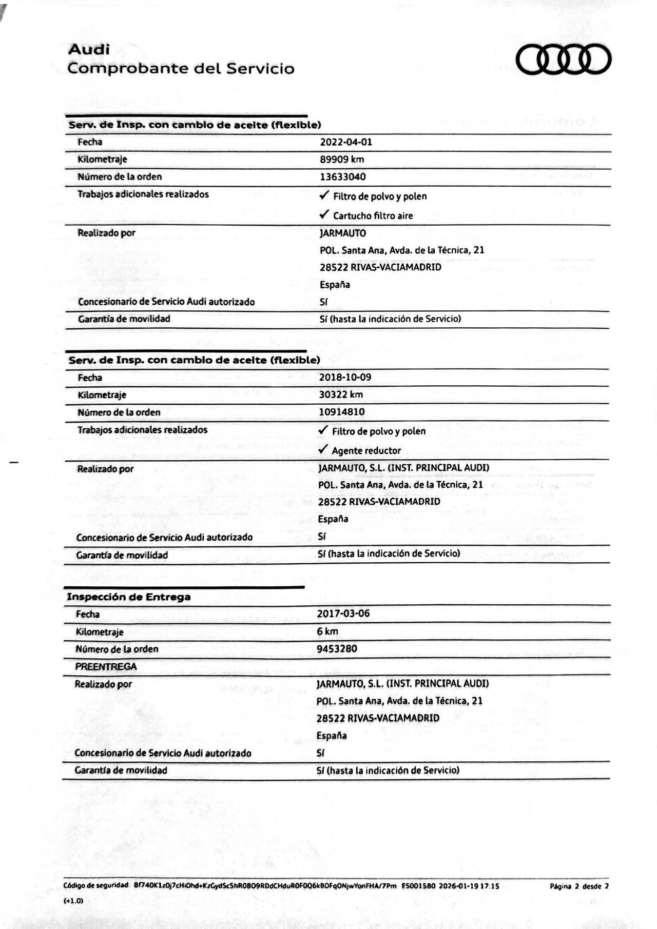 Audi con 138.826 kilómetros de 2017 en Madrid