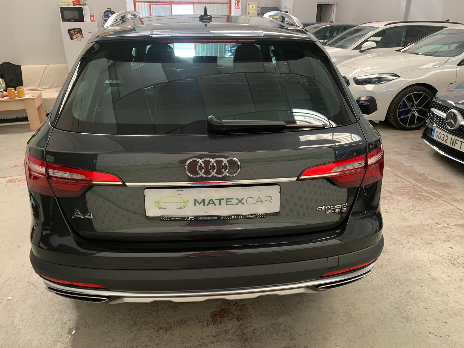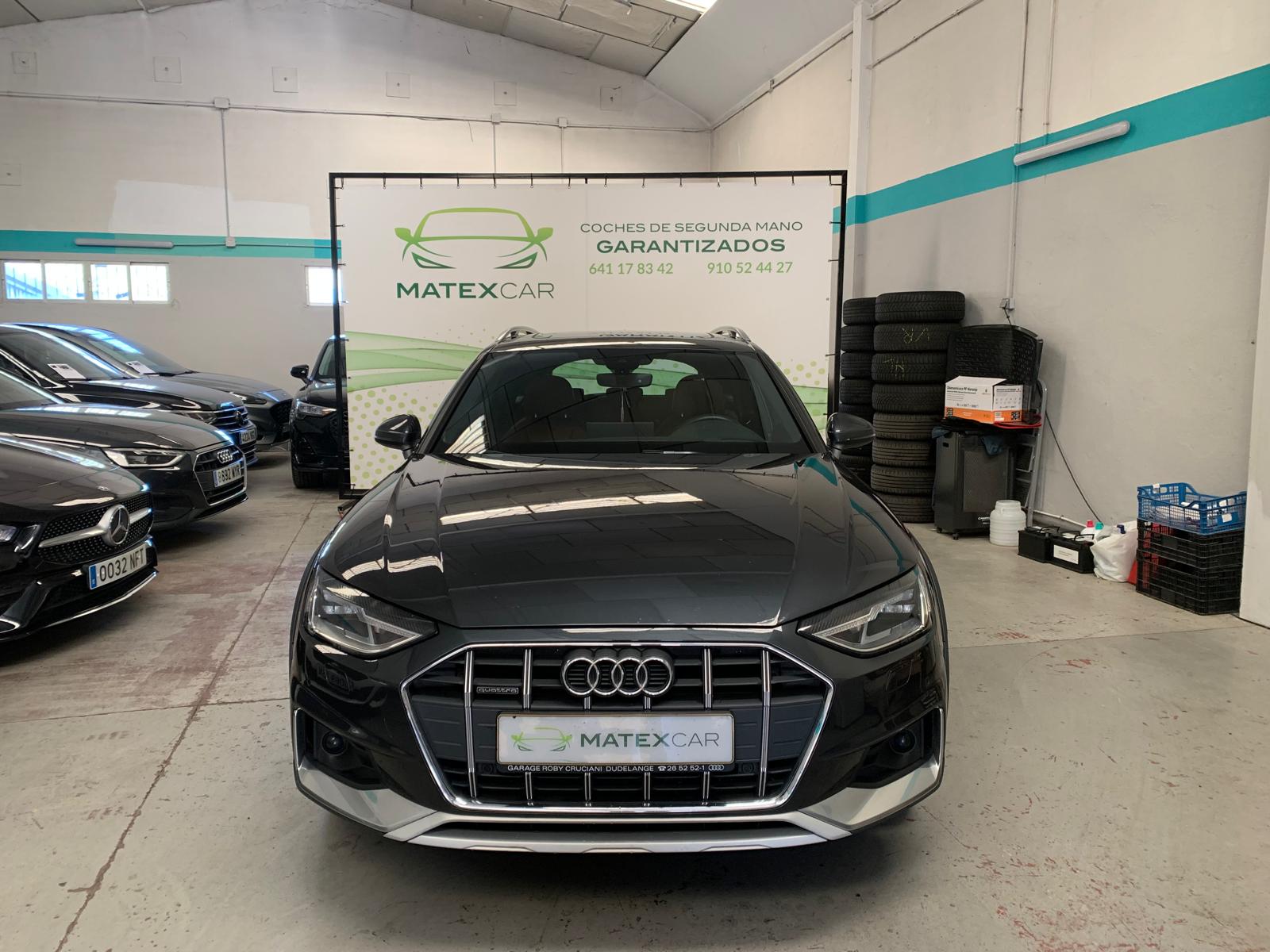 Audi A4 Allroad 40 TDI - Quattro - Gasoil - Automático - 204 CV HASTA DOS AÑOS DE GARANTÍA MECÁNICA TIENE LAS REVISIONES EN LA CASA OFICIAL KM GARANTIZADOS FINANCIACIÓN A MEDIDA Tracción total Cámara de visión trasera Asientos delanteros calefactables Asientos traseros calefactables Techo panorámico Techo solar apertura eléctrica Aire acondicionado automático Climatizador automático 3 zonas Asiento conductor con apoyo lumbar Asiento pasajero con apoyo lumbar Asientos traseros divididos Asiento del conductor regulable eléctricamente Asiento del pasajero regulable eléctricamente Asientos deportivos Isofix Asientos con memoria eléctrica Tapicería de cuero Sensores delanteros Sensores traseros Retrovisores calefactados Retrovisores plegables eléctricos Retrovisores regulables eléctricamente Bluetooth Carga inalámbrica Ordenado de a bordo Radio DAB Sistema de navegación Faros LED Luces diurnas Luces traseras con regulación LED Luz de carretera asistida Sensor de luz Arranque del motor sin llave Portón trasero eléctrico Llantas de aleación Sistema de control de la presión de los neumáticos ABS Airbags Asistente de control de carril Asistente de frenada de emergencia Control crucero Control crucero adaptativo Control del estado del conductor ESP Reconocimiento de señales de tráfico Retención en pendientes Sensor de lluvia Sistema de control de límite de velocidad Techo con baca Ventanas delanteras eléctricas Ventanas traseras eléctricas Volante de cuero Volante deportivo Volante con levas de cambio Volante multifuncional Apoyabrazos Dirección asistida Pintura metálica Sistema Start&Stop NOTA: Este anuncio y toda la información que incluye no es vinculante, puede contener errores. Se muestra a título informativo, en ningún caso se podrá constituir como sustento de un contrato de venta o se podrá utilizar para fines denunciables. Se necesita cita previa para ver el vehículo. MÁS INFORMACIÓN EN MATEXCAR . ES IVA NO DEDUCIBLE