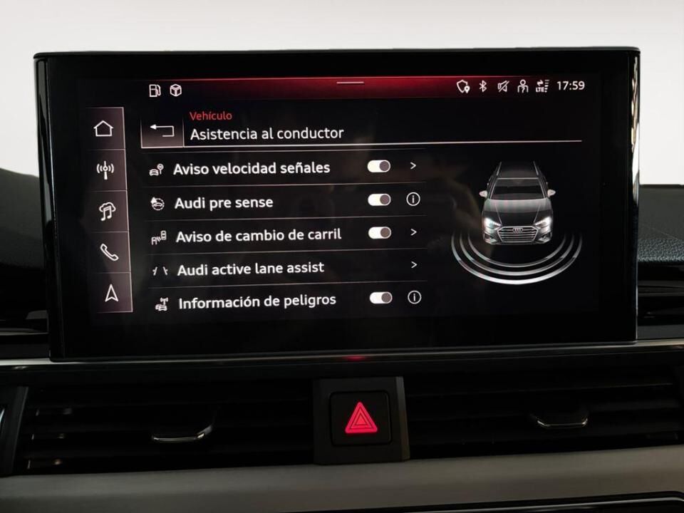 ESPECTACULAR AUDI A4 AVANT. ¡MÁS DE 10000€ EN OPCIONALES! Equipamiento opcional destacado: - Techo corredizo panorámico. - Llantas de aleación 8,5J x 19" diseño de 5 brazos en estrella, titanio mate alto brillo, neumáticos 255/35 R19. - Asientos delanteros deportivos S. - Asientos delanteros con regulación eléctrica y memoria para el conductor. - Asientos con regulación lumbar neumática y función de masaje (3 programas, 10 min). - Tapicería en microfibra Dinámica “Frequenz”/cuero con logotipos S en asientos. - Espejos exteriores calefactables, plegables eléctricamente, antideslumbrantes automáticos y con memoria – 564,45 € - [Paquete de asistentes City]: Audi Parking System Plus, cámara trasera, Audi side assist, pre sense rear & basic, asistente de tráfico cruzado trasero y asistente de salida. - Tren de rodaje deportivo (suspensión deportiva). - [Audi Sound System] con 10 altavoces, amplificador de 6 canales, subwoofer y 180 W de potencia. - Barras longitudinales en el techo en negro. - Retrovisores exteriores en negro brillante. - Eliminación de la limitación de velocidad para llantas de 19". - Volante de cuero multifunción plus achatado con levas. En Grupo Ureta, tu próximo coche te está esperando. Ofrecemos las mejores marcas, la atención que mereces y oportunidades únicas para estrenar vehículo hoy mismo. Por su puesto, le ofrecemos todas las opciones de financiación, entrega y otros servicios adicionales para convertir la compra de su vehículo en una experiencia grata e inolvidable. Contacte con nosotros sin compromiso. Estaremos encantados de atenderle.