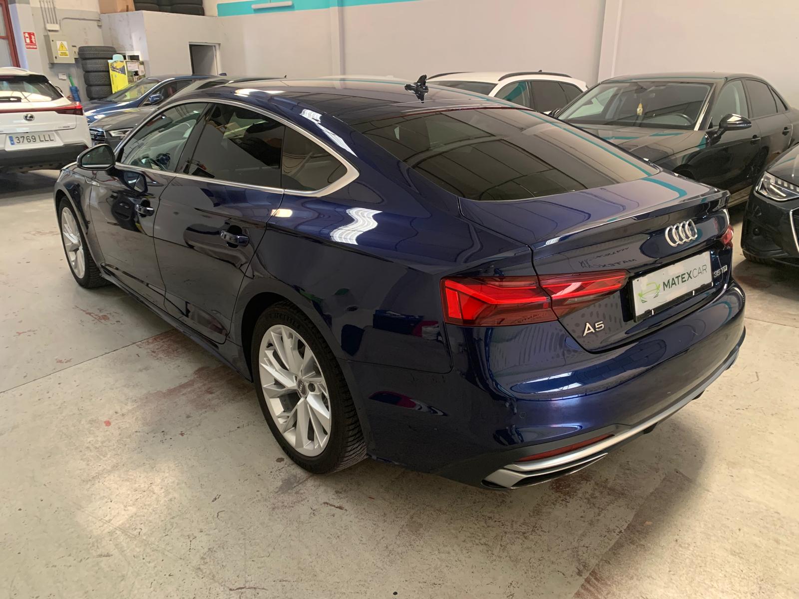 Audi A5 Sportback 35 TDI Advanced - Gasoil - Automático - 163 CV ES UN 35TDI Y 163 CV HASTA DOS AÑOS DE GARANTÍA MECÁNICA KM GARANTIZADOS FINANCIACIÓN A MEDIDA CarPlay Cámara de visión trasera Aire acondicionado automático Asientos delanteros calefactables Isofix Sensores delanteros Sensores traseros Distintos modos de conducción Retrovisor interior con oscurecimiento automático Retrovisores plegables eléctricos Retrovisores regulables eléctricamente Bluetooth Ordenador de a bordo Radio DAB Sistema de navegación Faros LED Luces traseras con regulación LED Llantas de aleación Sistema de control de la presión de los neumáticos Suspensión deportiva Maletero eléctrico ABS Airbags Control crucero Llamada de emergencia Ventanas delanteras eléctricas Ventanas traseras eléctricas Ventanas traseras tintadas Volante de cuero Volante multifuncional Sistema Start&Stop Pintura metálica NOTA: Este anuncio y toda la información que incluye no es vinculante, puede contener errores. Se muestra a título informativo, en ningún caso se podrá constituir como sustento de un contrato de venta o se podrá utilizar para fines denunciables. Se necesita cita previa para ver el vehículo. MÁS INFORMACIÓN EN MATEXCAR . ES IVA NO DEDUCIBLE