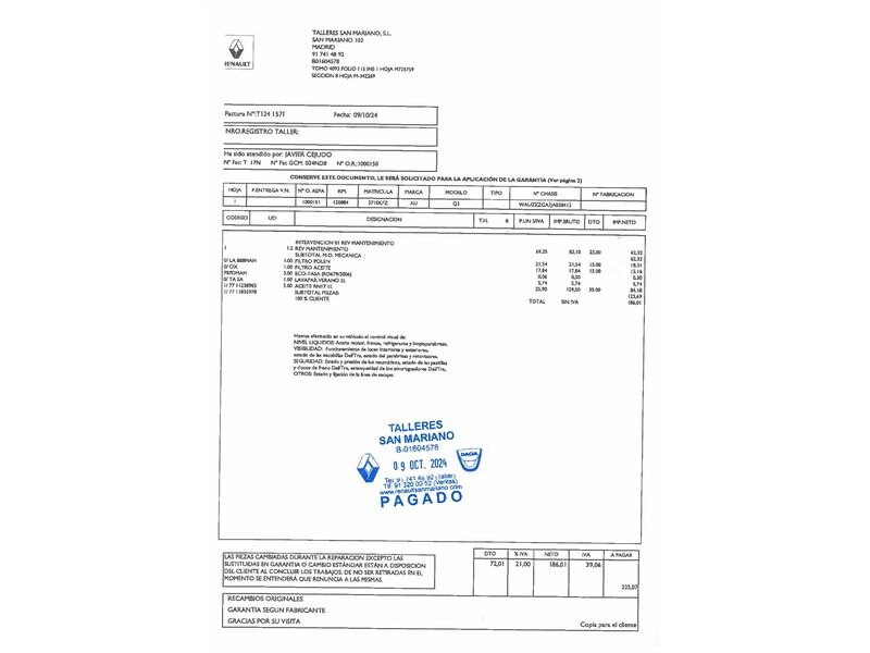 OCASIONPLUS - 14000 COCHES - 100 CENTROS OCASIONPLUS Nº1 CALIDAD - PRECIO Elige el coche que te guste y te lo llevamos a tu ciudad sólo con reservarlo 15 DÍAS / 1000 KMS DE PRUEBA Hasta 1300€ de descuento en este coche ADEMÁS, HACEMOS LAS MEJORES FINANCIACIONES DEL MERCADO, PREGÚNTANOS!! Equipamiento destacado: Navegador, Ayuda aparcamiento, Encendido automático de faros, Sensor de lluvia, Start/Stop automático, Control de velocidad, Limitador de velocidad, Volante multifunción, Aire Acondicionado (Climatizador), Freno de estacionamiento eléctrico, Bluetooth, Llantas de aleación (18"). - Coche Nacional, Historial Mantenimiento, Único propietario. - Garantía total 1 año, con cobertura nacional, ampliable a 24 meses. - Certificado de Kilómetros y ausencia de golpes estructurales. - Sobrevaloramos tu coche en operaciones de cambio. Tásalo ahora en ocasionplus.com - Entregamos cualquier coche en cualquier centro - Abierto Domingo y Festivos.
