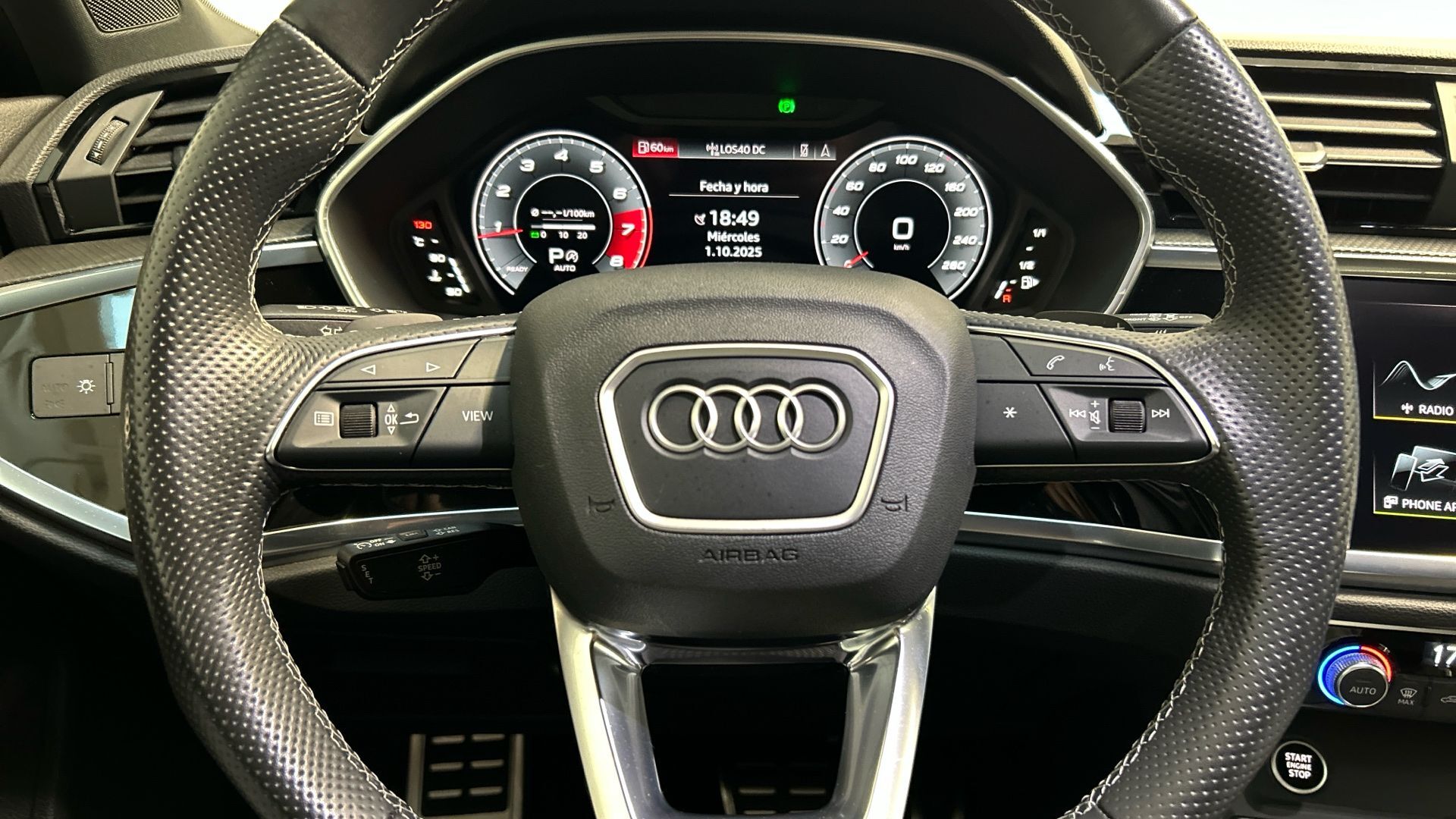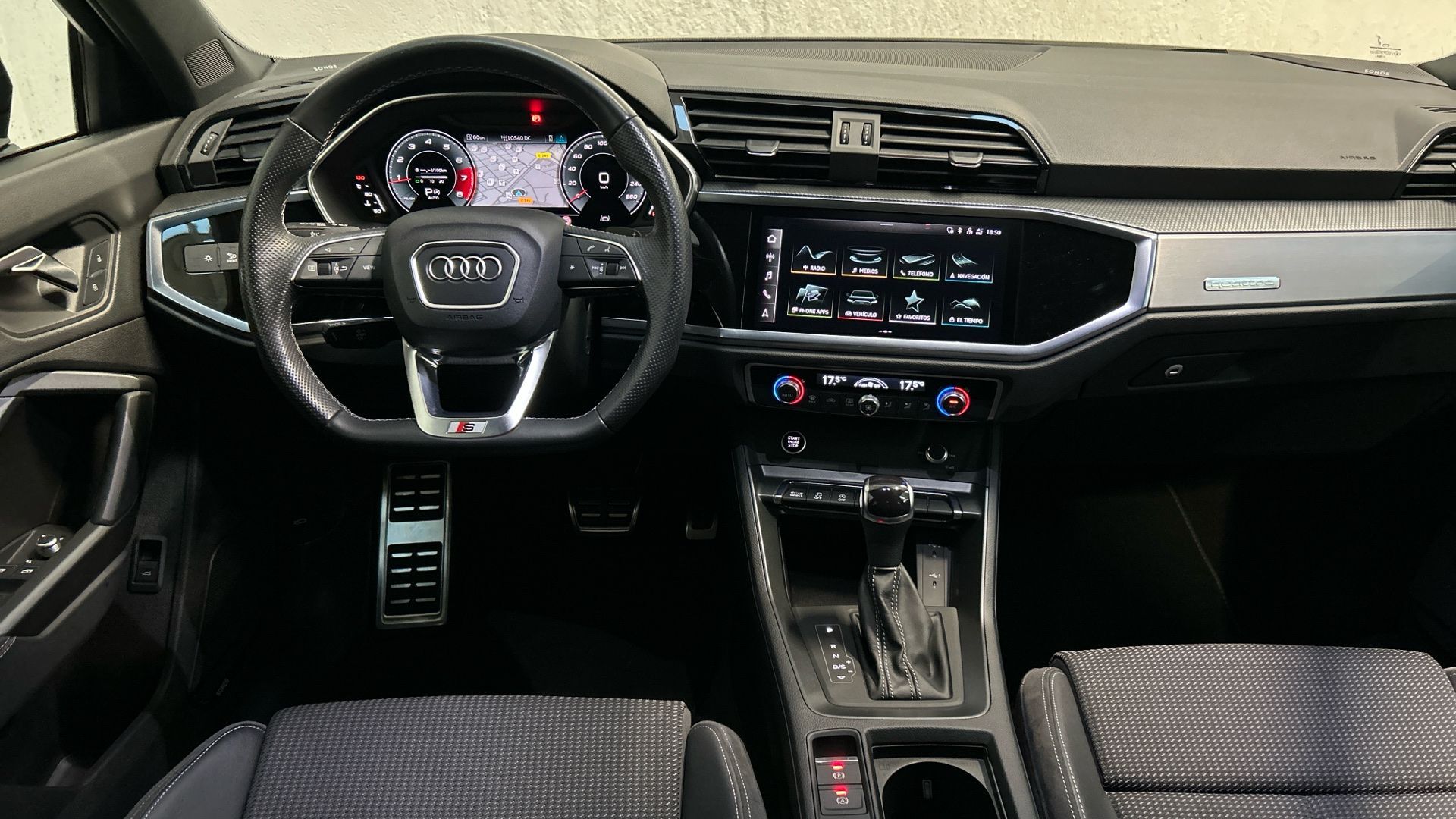 Ref. U47_9699 Lo más destacado: - Pintura: Gris Daytona (efecto perla) Pintura gris Daytona efecto perla Audi exclusive - Tapizado: Tela Puls / Cuero Sintético Negro - Asientos delanteros con ajuste eléctrico - Audi Parking System plus - Tren de rodaje deportivo - Sistema de navegación MMI plus - Espejos retrovisores calefactables con ajuste eléctricoeléctrico de posición y plegables eléctricamente,con función antideslumbrante - Paquete Confort - Llantas Audi Sport de 19"con diseño rotor de 7 radios, óptica negro antracita brillante (8,5J x 19) - Bang & Olufsen Premium Sound System con sonido 3D - Paquete Técnico - Audi connect - Navegación e Infotainmentcon SIM integrada, 3 años - Herramientas de a bordo y gato - Sin inscripción trasera de modelo y cilindrada - Rueda de repuesto de tamaño reducido - Asientos delanteros con regulación lumbar eléctrica - Llave de confort (sin SAFELOCK) - Paquete de óptica Negro plus - Paquete accesorios - Faros Matrix LED, grupos ópticos traseros LED y lava faros Otros puntos destacables: - Concesionario oficial de las marcas Audi, Volkswagen, Volkswagen comerciales con más de 100 años de experiencia. - Vehículos certificados con chequeos hasta 289 puntos. - Garantía europea hasta 24 meses. - Disponibilidad para realizar la prueba del vehículo. - Km garantizados. - Asistencia 24 horas con cobertura europea. - Opción de disponer de vehículo sustitutivo. - Financiación y Opción futuro a su medida. - Opción de cambio o devolución hasta 15 días o 1.000 km. - Aceptamos vehículo a cambio y realizamos la tasación gratuitamente. - Entrega inmediata. - Asesores comerciales certificados.