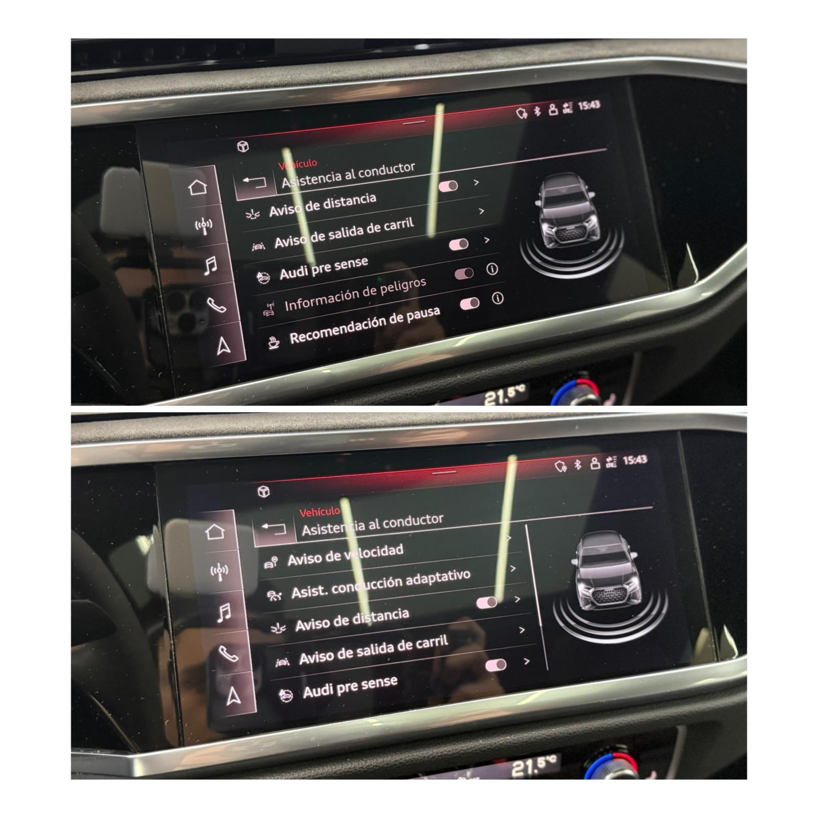 PVP NUEVO: 83.561€ PVP orientativo del vehículo nuevo, comprado en el año de matriculación, sin extras *Precio Financiado. Consulta condiciones. Precio contado: 61.500€ EQUIPAMIENTO DESTACADO: MMI navegación plus con MMI Touch Aviso de salida involuntaria de carril con aviso de cambio de carril Faros LED con intermitentes dinámicos detrás Audi parking system plus Bang & Olufsen Premium Sound System con sonido 3D 683€ incl. Asistente de velocidad adaptativo 533€ incl. Cámara de visión trasera 560€ incl. Asientos deportivos delanteros RS Incluye tapicería en cuero napa fina 'RS' 2.049€ incl. Techo panorámico 1.941€ incl. Cristales traseros oscurecidos 546€ incl. Asientos delanteros calefactables 464€ incl. Asientos delanteros con regulación eléctrica 956€ incl. Gancho de remolque 1.216€ incl. Pintura metalizada 1.055€ incl. Pinzas de freno rojas 410€ incl. CONSUMOS: Ciudad 11.5 Carretera 7.3 Medio 8.8 CO2 202 Depósito de combustible 60 l. ¿QUÉ INCLUYE? Tramitamos directamente y sin costo, la FINANCIACIÓN con tu DNI/NIE, última nómina y poco más, prácticamente ¡¡EN EL MISMO DÍA!! Gestionamos la transferencia del vehículo, TOTALMENTE GRATIS Te damos 1 AÑO DE GARANTÍA/15.000 kms.*, para que solo te preocupes de disfrutar tu nuevo coche Posibilidad de realizar TODA la compra íntegramente ON LINE....¡¡desde tu propia casa!! Servicio de entrega de tu coche "Door to Door", SIN DESPLAZAMIENTOS para ti Pues ve eligiendo tu próximo coche en nuestra web.... ...contacta con nosotros: 622 655 891 (Héctor) ...& WhatsApp ¡¡Y COMIENZA A CONDUCIR TU SUEÑO!! '''''Síguenos en FACEBOOK e INSTAGRAM''''' www.multimarcasbenicarlo.com *Lo que antes suceda Si quieres saber la matrícula del vehículo, ponte en contacto con tu Comercial Certificado que no ha tenido golpe estructural *Oferta válida salvo error tipográfico