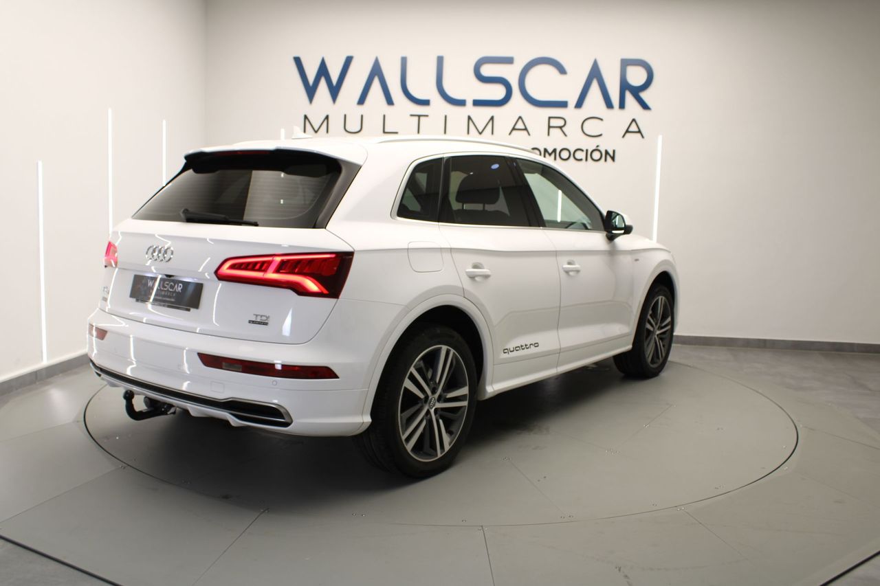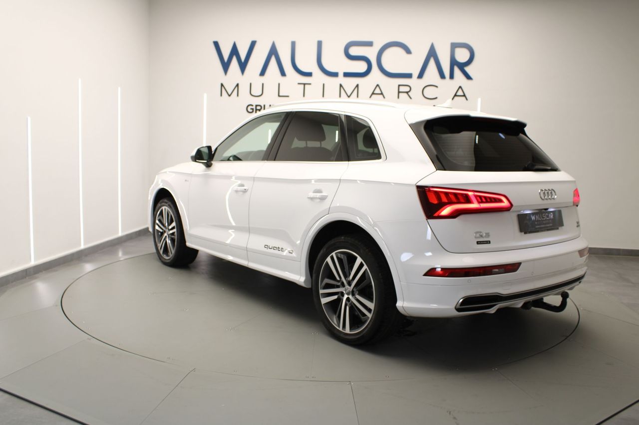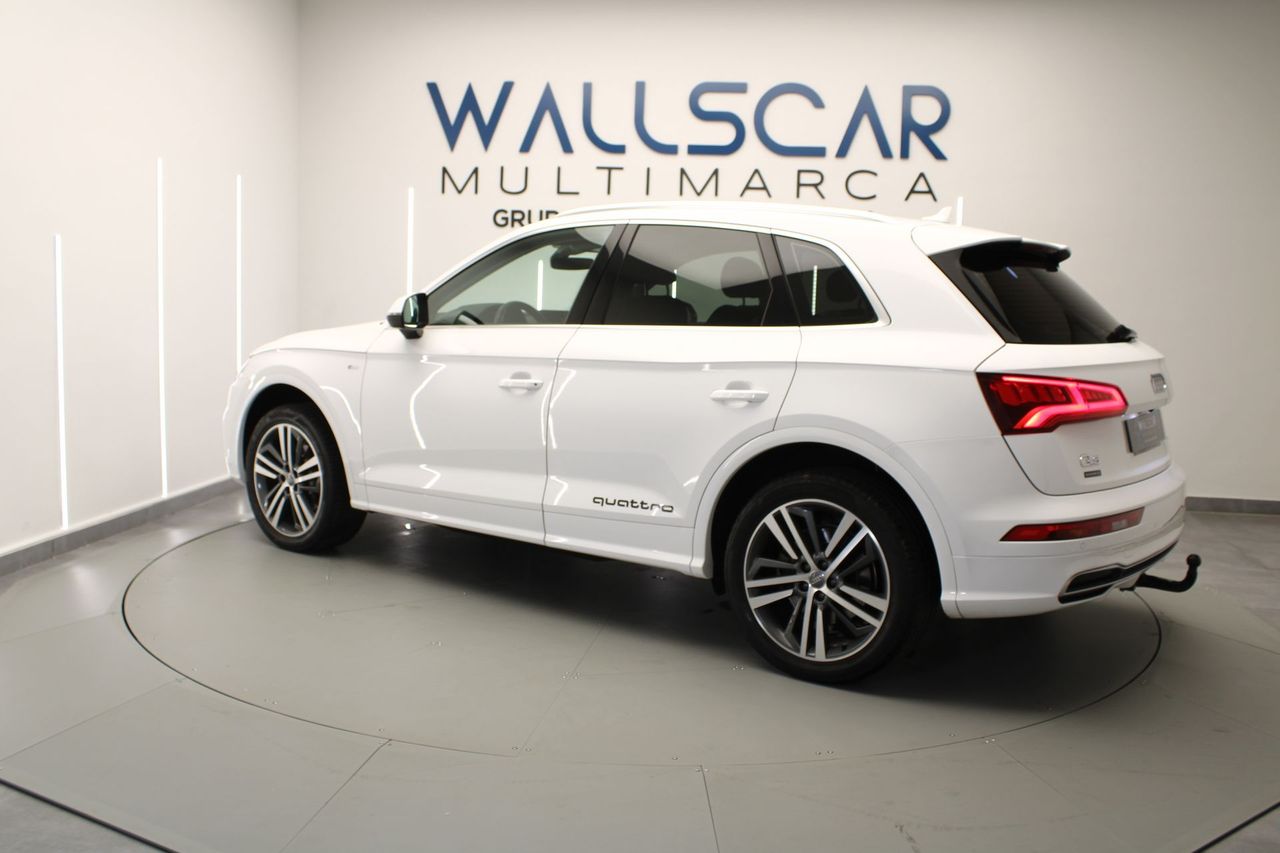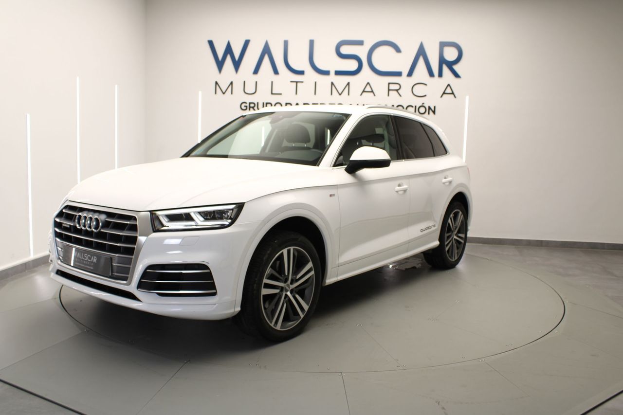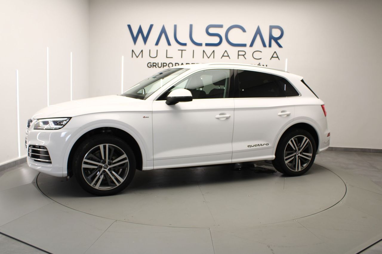 REF: 7014 Te presentamos esta unidad de AUDI Q5 en excelente estado. Vehículo certificado por técnico especializado, acreditando la ausencia de daños estructurales y su kilometraje. Entre los detalles más relevantes de nuestra unidad, destacamos su Display digital y su Paquete S Line completo exterior e interior Y además: -Volante de cuero multifunción -Paquete S Line completo exterior e interior -Luces automáticas y sensor de lluvia -Retrovisores eléctricos -Control de crucero -Climatizador trizona -Botón de arranque -Freno de mano eléctrico -Maletero eléctrico -Modos de conducción -Sistema de navegación -Pantalla de infoentretenimiento con conexión Bluetooth -Cámara trasera y sensores de aparcamiento -Sistema Start Stop -Control de descenso en pendientes -Iluminación ambiental -Levas en volante -Cortinillas en ventanillas traseras Fecha de matriculación ABRIL de 2018 Precio financiando la totalidad del importe del vehículo con nosotros, consulta con nuestros asesores otras opciones. Oferta especial vinculada a la entrega de vehículo o a financiación Aceptamos tu coche como parte del pago. Premiamos los vehículos mejor cuidados. Wallscar Multimarca, concesionario de vehículos y filial de Grupo Paredes Automoción, empresa con más de 30 años de experiencia en el sector automovilístico. Amplio stock con coches de KM0, coches de ocasión, coches de segunda mano y vehículos industriales. Somos concesionarios oficiales Volvo, KGM y EVO. Contamos con talleres oficiales Volvo, KGM, Alfa Romeo, Jeep, Fiat, Fiat Pro y Abarth. Este vehículo cuenta con el Certificado de Calidad Wallscar Premium: Hasta tres años de garantía*, garantía de recompra, garantía de no siniestralidad y garantía de óptimo estado. Visita nuestra web, wallscar.es, para una visión 360º interior y exterior de este vehículo o para tasar tu coche online. Vende tu coche en Wallscar y obtén la máxima valoración. Descubre nuestra gama Lynk & Co. Unidades de Lynk & Co 01 de segunda mano con muy pocos kilómetros. Somos concesionario especializado en Lynk & Co. Este anuncio no es vinculante y puede contener errores. Se muestra a título informativo y no contractual. Oferta y disponibilidad válida salvo error tipográfico. Consulte a nuestro equipo comercial la información relativa al modelo, precio y características técnicas. Wallscar Multimarca, tu concesionario de vehículos de ocasión en Alicante y Elche. AUDI Q5 Ocasión AUDI Q5 Segunda Mano