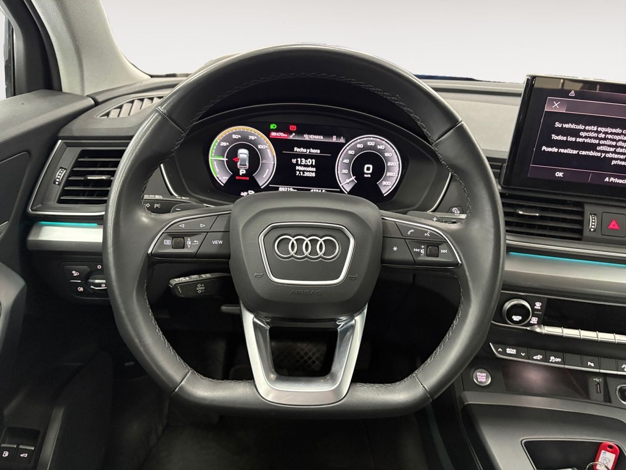 En HRmotor tenemos un coche como nuevo para ti esperándote. Disfrútalo con total tranquilidad, con hasta 2 años de garantía. Contamos con un stock de +3.000 coches de segunda mano para que puedas comprar un coche de ocasión que se adapte a todas tus necesidades y preferencias en nuestros más de 30 concesionarios repartidos en toda España. De esta manera nos encontramos en Madrid con 4 centros; en Barcelona con 4 centros; en Valencia con 3 centros; en Sevilla con 2 centros; en Málaga con 2 centros. Además, nos podrás encontrar también en Lleida, Girona, Castellón, Alicante, Bilbao, Gijón, Mallorca, Murcia, Pamplona, San Sebastián, Tudela, A Coruña, Valladolid, Zaragoza y Elche. Precio al contado de 45890€. o consultar condiciones. Audi Q5 50 Sportback 2.0 TFSI e Advanced quattro * Sujeto a condiciones. Consulte con su comercial V-0344916 ***EQUIPAMIENTO EXTRA:*** - Airbag lateral detrás - Alarma antirrobo para Ruedas (Cerraduras colocadas en la parte superior) - Asistente a la conducción: Ayuda para arranque (hold assist) - Audi connect (servicio básico de internet) - Audi Smartphone Interface - Ayuda aparcamiento delante y detrás, óptico - Climatizador confort 3 zonas - Cámara de marcha atrás - Iluminación ambiente (LED (Diodos Emisores de Luz)-Multicolor) - Llantas de aleación 8x18 (5 brazos, diseño-turbina) - Residuos Keyless-Entry - Multi-Media-Interface MMI Navigation Plus con MMI Touch - Panel de instrumentos digital (virtual cockpit) - Paquete compartimentos y maletero - Reposabrazos central delante Equipamiento confort - Respaldo del asiento trasero dividido/abatible, practicable (40:20:40) - Retrovisor interior con sistema antideslumbramiento autom. - Soporte lumbar delante, regulable eléctricamente - Techo interior en tela, negro - Volante (deportivo/cuero - 3 radios, abajo aplanado) con Multifunción plus ***EQUIPAMIENTO SERIE:*** - Paquete: brillo - Paquete no fumador - Pintura especial Ibis-blanco - Taloneras de entrada con revestimiento de aluminio - Protección del borde de carga (Acero inoxidable) - Retrovisor exterior color carrocería - Barras portaequipajes en el techo Negro - Faro LED - Pilotos traseros LED - Luz de día LED - Paragolpes Versión: advanced - Lunas atérmicas tintado en verde - Parabrisas Cristal protector ruido - Sistema de audio Audio 20 (con Touchpad) - 8 Altavoces - Conector-Universal Bluetooth - Servicio móvil Online Mirror Screen - Sistema control presión neumáticos indirecto (Sin localización) - Acabado interior: Molduras decorativas en Alcantara - Acabado interior: Molduras decorativas piezas de diseño negro mate - Control de crucero (Tempomat) - Airbag conductor/acompañante - Sistema de airbag para la cabeza - Airbag lateral delante - Separación maletero (Red) - Alfombras velours - Climatización automática - Calefacción extra eléctric. - tapicería asientos: Tela Curitiba - Asientos delante regulable manualmente - Portón del maletero / Portón trasero eléctric. accionado (abrir + cerrar) - Inmovilizador (electrónico) - Portavasos - Protección acústica de peatones (Sonido exterior, AVAS) - Anclajes Isofix para Asiento para niños - Cámara multifunción - Sistema antibloqueo (ABS) - Freno de estacionamiento eléctric. (EPB) - Asistente a la conducción: Freno de emergencia en ciudad (SCBS) - Tren de rodaje estándar - Audi Drive Select - Kit reparación de neumáticos - Columna de dirección (Volante) Mec. regulable altura y longitud - Dirección asistida electromecánico - Embrague tracción total - Cable para la carga (5 m.) con Enchufe Schuko (10 A) - Cable para la carga con Enchufe industrial (16 A / 400 V) - Cable para la carga para montantes de carga abiertos (e-tron) - e-tron Sistema de sobrealimentación - Reducción polución según norma gases escape Euro 6d - Depósito combustible: 54 Ltr. - Instalación de arranque y parada - Filtro partículas-Otto (GPF) (Filtro part. Otto) - Mild-Hybrid-Technologie - Motor eléctrico 105 kW (Propulsión híbrida) - Carrocería: 4 puertas - Tipo transmisión: Tracción total - Batalla 2819 mm - Caja de cambios 7 velocidades - Caja cambios doble embrague S-tronic - Motor 1,2 Ltr. - 87 kW TCE Energy