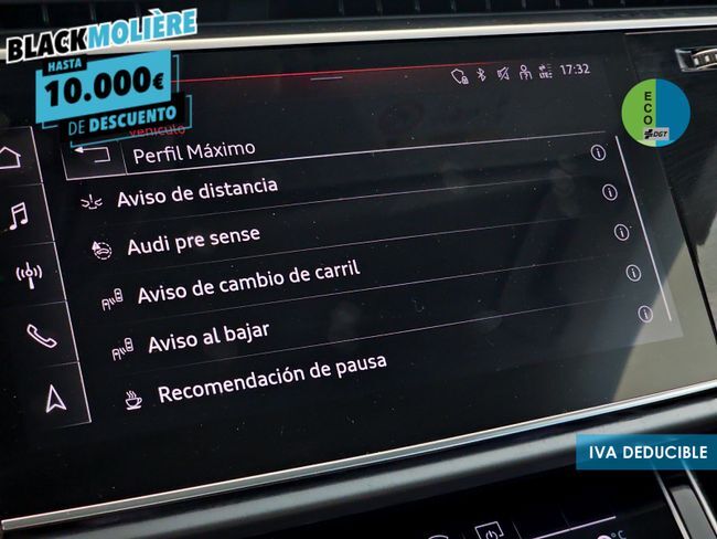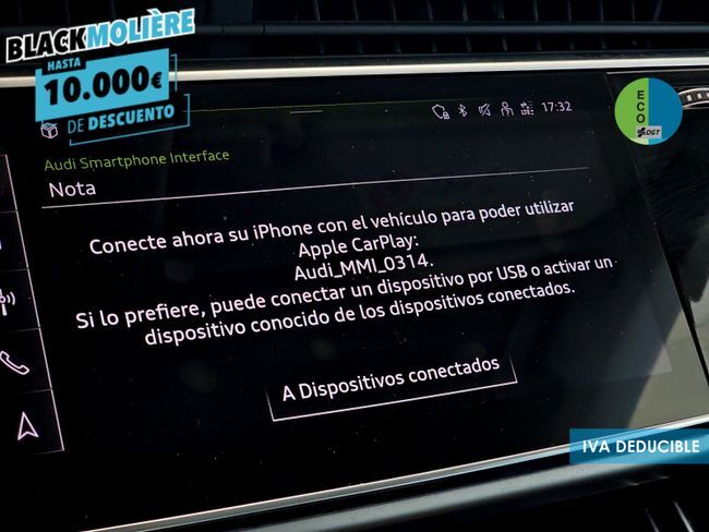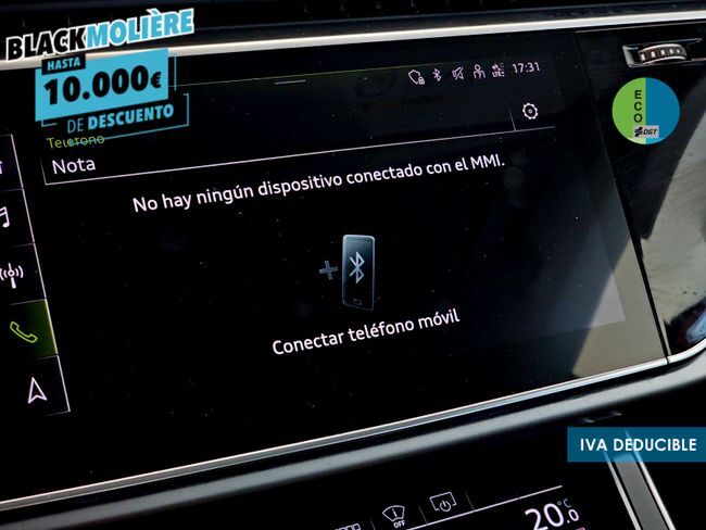 Hola, ¿Cómo estás? Nos enorgullece que estés viendo el anuncio de uno de nuestros más de 500 vehículos y que te vamos a facilitar todo para que sea tuyo. Somos Autos Moliere, el concesionario multimarca con la mejor reputación online de España. - 15 días o 500Km para comprobar que es tu vehículo, si no, lo devuelves. *Consulte condiciones* - GESTIONAMOS LA ENTREGA DE SU VEHÍCULO EN UN TIEMPO RECORD. - Los mejores precios garantizados. - Vehículos certificados en más de 260 puntos (la más amplia del mercado). - Tenemos más modelos a tu disposición en nuestro amplio stock. - Descuento de hasta el 10% por financiar tu vehículo con nosotros. Garantía de 12 meses ampliable hasta 48 meses. IVA DEDUCIBLE INCLUIDO EN EL PRECIO. ¡Llámanos! Precio al contado: 57.890€. Precio financiado: 54.445€. *Este anuncio no es vinculante, puede contener errores, se muestra a título informativo y no contractual. Ponemos a tu disposición este coche de segunda mano en muy buen estado. Un vehículo de ocasión con equipamiento completo, bajo consumo y precio competitivo, ideal para quienes buscan un coche usado de confianza con posibilidad de financiación a medida. Contamos con las marcas más buscadas como Toyota, Renault, Volkswagen, SEAT, Hyundai, Peugeot, Dacia, MG, BYD, Link&Co, Omoda, todas revisadas y listas para entregar. Aprovecha esta oportunidad y conduce hoy mismo tu coche listo para disfrutar en Málaga, Sevilla, Madrid, Valencia, Barcelona o cualquier punto de la península al que quieras que te lo enviemos. ***EQUIPAMIENTO OPCIONAL INCLUIDO*** - Calidad de serie - Sistema de detección de asientos ocupados - Circulación por la derecha - Frenos de disco detrás - Juego de componentes sin normas de fabricación específicas del país - Frenos de disco delanteros - Homologación de tipo, país españa (andorra, baleares, islas canarias) - Suspensión estándar - Motor turbodiesel 6 cil. 3.0 l/170 kw v6, tdi common rail motor básico: t7v - Herramientas de a bordo - No es versión de campaña - 2 triángulos preseñalizadores - Código de región "ece" para radio - Diferenciación de clases de vehículos -4mf- - No vehículo especial, versión estándar - Piezas de montaje para motor de 6 cilindros - Realización - serie - Diferencial autoblocante - Variante equipamiento básico - Incremento del primer llenado de combustible de serie - Funciones fod disponibles online - Columna dirección con regulación axial y vertical - Llantas de serie - Boca de carga - módulo 1 sin inserto - Versión 1 - "drive select" - N.n.n. versión 1 - Etiquetas adhesivas/placas en inglés-español - Protección de cantos en el maletero de plástico - Engranaje del eje trasero básico - Aspiración de aire fresco con filtro de carbón activo - Vehículos sin medidas especiales de revaloración del producto - Ohne zusätzliche bereifung - Puertas de cierre manual - Emblema de modelo y emblema de marca - Con paquete connect 3 - Red divisoria - Con paquete connect 1 - Suelo de carga trasero plano - Ajuste del asiento, eléctrico, para ambos asientos delanteros - Motor diésel - Versión automóvil - Batería 380a (68ah) - Banqueta trasera y respaldo, abatibles, divididos con resposabrazos central - Barras longitudinales del techo, brillante - Forma de carrocería variante 1 - Bandeja del maletero - Ohne sonnenschutzrollo - Kältemittel r1234yf - Vehículo con volante a la izquierda - Protección para el transporte (versión 1) - Capacidad estándar de batería/generador - Parabrisas con luna antitérmica - Asientos delanteros normales - Con cámara multifuncional - Lunas laterales y trasera en cristal antitérmico - Luna transparente - Retrovisor interior de seguridad, con ajuste automático de posición antideslumbrante - Con luces adicionales (iluminación en el habitáculo) - Airbag al lado del conductor y del acompañante, sin airbag de rodilla, con desactivación para lado del acompañante - Ohne verkehrszeichenerkennung - Digitaler radioempfang - Embellecedores brillantes - Dirección asistida - Trägerfrequenz 433,92 bis 434,42 mhz - Motor diesel 6 cilindros 3.0l motor 059.p - Spoiler trasero - Cuadro instrumentos, indicador de km/h - Lámina protectora para el transporte - Interfaz eléctrica para uso externo - Inserciones decorativas - Sistema de propulsión híbrida m-hev - Freno de estacionamiento - Retrovisor exterior derecho, convexo (campo de visión amplio) - Tornillos de rueda con cierre antirrobo y detección de desmontaje de rueda - Neumáticos sin marca establecida - Retrovisor exterior a la izquierda, asférico - Volante multifunción deportivo de cuero - Parachoques reforzado - Parasoles con espejo de cortesía iluminado del lado del conductor y del acompañante - Anclaje del asiento para niños - Fußhebelwerk "standard" - Apoyacabezas delante - Llantas de aleación ligera 8,5j x 19" pulgadas - Red de a bordo de 48 voltios - Reposabrazos central delante - Servocierre del portón del maletero - Indicador de intervalos de servicio 30000 km o 1 año ( variable ) - Carcasas de los retrovisores exteriores en negro - Cierre centralizado "keyless-go" sin cierre de seguridad - Aviso de salida de carril - Airbag lateral delante y detrás airbag de cabeza - Pre sense city - Techo moldeado estándar - Retrovisor ajustable/abatible eléctricamente y térmico - Recubrimiento del suelo del maletero - Sistema de limitación de velocidad - Cubierta para zona trasera (ece) - Inmovilizador electrónico - Soporte para matrícula, delante - Control de presión de los neumáticos - Sistema de navegación high - Con sistema de seguridad ampliado (precrash básico y trasero) - Ayuda de aparcamiento delante y detrás - Calefacción adicional eléctrica por aire - Asistente de cambio de carril - Faros principales led - Sistema de arranque/parada con recuperación de energía - Climatronic, libre de cfc - Molduras de entrada en los bordes de las puertas con insertos en metal - Con depósito adicional par