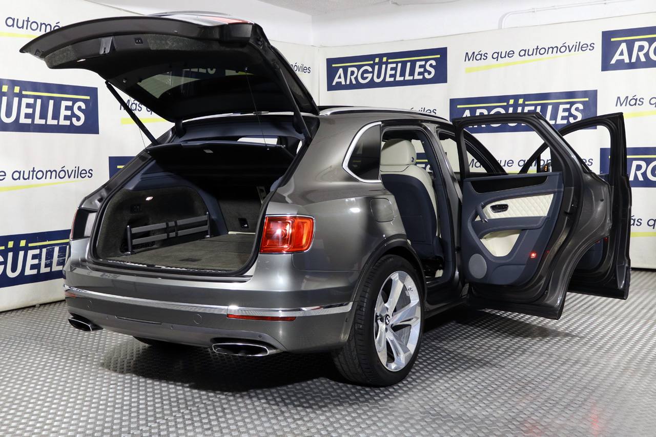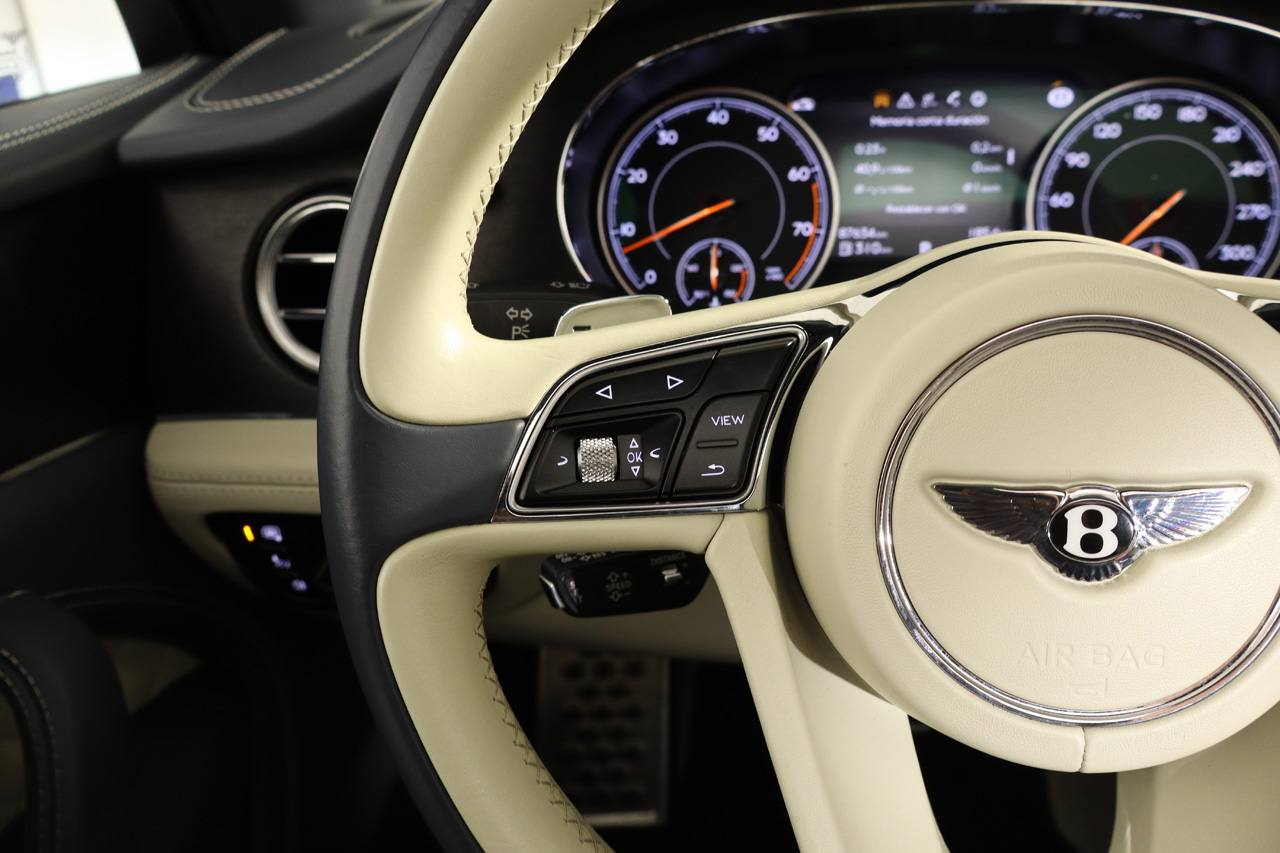 12 Meses de garantía incluida en el precio IVA Deducible. Vehículo con motorización 6.0 W12. Equipado con suspensión neumática autonivelante, techo solar panorámico, tapicería de cuero ampliado bitono Mulliner, asientos eléctricos, faros LED ADAPTATIVOS, sistema de navegación, asientos delanteros y traseros calefactados, cámara 360 junto con sensores de aparcamiento, Head Up Display con proyección en el parabrisas, climatizador bizona, alerta de vehículos en ángulo muerto y de salida involuntaria de carril, regulador de velocidad ADAPTATIVO, ordenador de viaje, portón trasero eléctrico, retrovisores abatibles eléctricamente, acceso y arranque sin llave, volante multifunción con levas de cambio, lunas traseras tintadas, Apple CarPlay, molduras interiores en madera cepillada, techo tapizado en cuero, detalles exteriores en aluminio, 4x4, pintura gris metalizado, llantas de aleación en 22, Bluetooth, conexión USB.