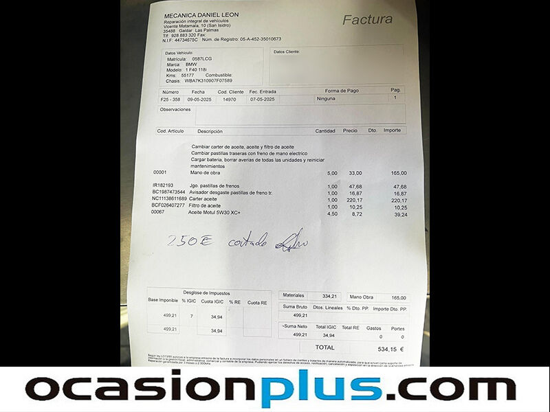 OCASIONPLUS - 14000 COCHES - 100 CENTROS OCASIONPLUS Nº1 CALIDAD - PRECIO Elige el coche que te guste y te lo llevamos a tu ciudad sólo con reservarlo 15 DÍAS / 1000 KMS DE PRUEBA Hasta 2445€ de descuento en este coche Precio oferta financiado: 24455€ (consulta condiciones específicas de promo - sujeta a aprobación de la entidad financiera) Precio al contado: 26900€ ADEMÁS, HACEMOS LAS MEJORES FINANCIACIONES DEL MERCADO, PREGÚNTANOS!! Equipamiento destacado: Paquete M, Tapicería cuero-tela, Asientos deportivos, Cámara de marcha atrás, Encendido automático de faros, Sensor de lluvia, Reconocimiento señales de tráfico, Faros delanteros led, Faros traseros led, Start/Stop automático, Control de velocidad, Volante multifunción, Aire Acondicionado (Climatizador), Bluetooth, Isofix, Freno de estacionamiento eléctrico, Arranque por botón, Llantas de aleación (18"). - Coche Nacional, Historial Mantenimiento. - Garantía total 1 año, con cobertura nacional, ampliable a 24 meses. - Certificado de Kilómetros y ausencia de golpes estructurales. - Sobrevaloramos tu coche en operaciones de cambio. Tásalo ahora en ocasionplus.com - Entregamos cualquier coche en cualquier centro - Abierto Domingo y Festivos.