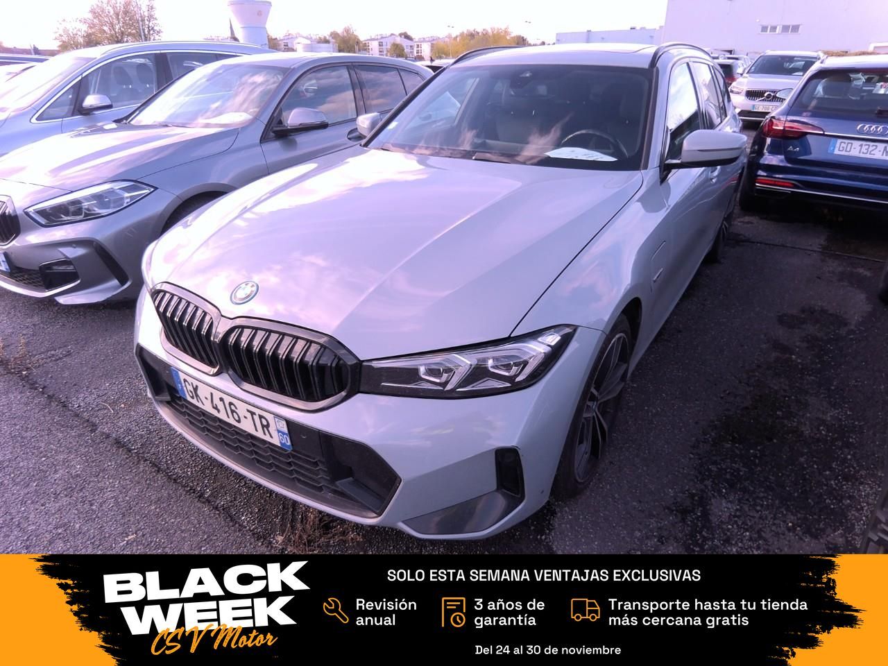 BLACK WEEK CSV MOTOR Del 24 al 30 de noviembre Solo esta semana, si señalizas tu coche desde nuestra web, puedes elegir una de estas ventajas exclusivas: Revisión anual incluida 3 años de garantía incluidos Transporte hasta tu tienda más cercana gratis ¡Sin compromiso! ¡Más de 50 coches nuevos cada día esta semana! ES EL MODELO 320E 204CV FAMILIAR Financiación SIN entrada. Admitimos tu coche a cambio, Y TE LO SOBREVALORAMOS, aunque sea muy viejo. ¿Quieres comprar online? Contáctanos y te daremos todo lo que necesites para decidirte: Teleperitación, certificados, etc. así como la financiación, que sólo con tu nómina te confirmamos en minutos la concesión de la financiación POR EL TOTAL y sin entrada. Nuestros precios son totalmente fijos y sin sorpresas por financiación abusiva. Este vehículo está disponible para su venta en la ubicación que ves en este anuncio. Así también habrá la posibilidad del envío a domicilio, en cualquiera de las siguientes provincias desde 90€: La Coruña Álava Albacete Alicante Almería Asturias Ávila Badajoz Barcelona Burgos Cáceres Cádiz Cantabria Castellón Ciudad Real Córdoba Cuenca Girona Granada Guadalajara Gipuzkoa Huelva Huesca Jaén La Rioja León Lérida Lugo Madrid Málaga Murcia Navarra Ourense Palencia Pontevedra Salamanca Segovia Sevilla Soria Tarragona Teruel Toledo Valencia Valladolid Vizcaya Zamora Zaragoza. El precio indicado es con GARANTIA DE UN AÑO ampliable hasta TRES AÑOS. SEGUNDO AÑO GRATIS FINANCIANDO CON NOSOTROS. El vehículo tiene IVA INCLUIDO y desgravable si eres empresa o autónomo. Garantizamos por CONTRATO kilometraje real y que no ha tenido ningún golpe estructural. INFORMACIÓN PARA PARTICULARES: Te ahorras HASTA EL 11% que deberías pagar a hacienda si comprases a un particular en impuestos. En nuestra web dispone de más información sobre todos nuestros vehículos, así como más posibilidades para contactar con nosotros directamente: www.csvmotor.net Los extras del vehículo que usted está viendo son: VEHÍCULO PHEV CON ETIQUETA 0 Y AUTONOMÍA DE HASTA 56 KM, CAMBIO AUTOMÁTICO DEPORTIVO STEPTRONIC DE 8 VELOCIDADES CON LEVAS EN EL VOLANTE, TAPICERÍA ALCÁNTARA/SENSATEC NEGRO CON DETALLES AZULES (1.400 €), TECHO PANORÁMICO DE CRISTAL (1.700 €), SUSPENSIÓN M ADAPTATIVA (1.200 €), DIRECCIÓN DEPORTIVA VARIABLE (500 €), PAQUETE M SPORT CON PARAGOLPES ESPECÍFICOS Y AERODINÁMICA M (2.500 €), SISTEMA DE NAVEGACIÓN BMW LIVE COCKPIT PROFESSIONAL CON PANTALLA DE ALTA RESOLUCIÓN (1.200 €), ILUMINACIÓN AMBIENTAL INTERIOR (400 €), ASIENTOS DEPORTIVOS DELANTEROS CON AJUSTE ELÉCTRICO Y MEMORIA (950 €), CALEFACCIÓN EN ASIENTOS DELANTEROS (600 €), SISTEMA DE ACCESO Y ARRANQUE SIN LLAVE ‘COMFORT ACCESS’ (700 €), CRISTALES DE PROTECCIÓN SOLAR Y LUNAS TRASERAS CON CORTINILLAS (600 €), CONTROL DE VELOCIDAD CON FUNCIÓN DE FRENADO (400 €), CARGADOR INALÁMBRICO PARA SMARTPHONE (400 €), VOLANTE M DE CUERO (400 €), LLANTAS M DE 19” DOBLE RADIO 791 M BICOLOR (1.200 €), PINTURA METALIZADA BROOKLYN GRAU (950 €), ETC. MODELO DEL 2023 FABRICADO A FINALES DE 2022. Este anuncio no es vinculante, puede contener errores.