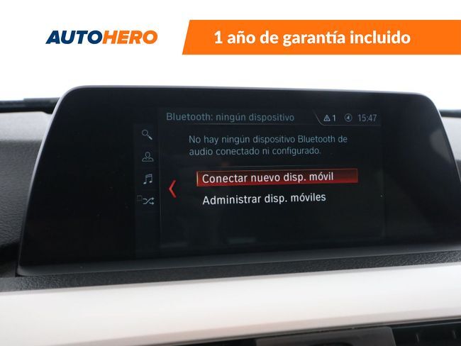 AUTOHERO, Comprar un coche: Por Fin, Fácil Disfruta de nuestras ofertas y ventajas por ser nuestro cliente: - Recoge el coche de tus sueños gratis en cualquiera de nuestros puntos de entrega. ¡solo por tiempo limitado, no lo dejes escapar! - Cuida del coche con el mantenimiento más completo desde 5€ al mes - Financia con nosotros, y consigue uno de los TIN más bajos del mercado - Garantía gratuita de 12 meses incluida y ampliable hasta 36 meses - Política de devolución de 21 días con garantía de devolución del 100% del dinero Este vehículo está disponible en uno de nuestros Autohero Center, llámanos y pregunta su disponibilidad. Nuestro nuevo horario es: L-V: 09:00-21:00, S:10-19 y D:10-14 Pero si no puedes venir, no te preocupes, también puedes comprar el coche de tus sueños en tan solo unos pocos clics. Entra en nuestra web y disfruta de la experiencia Autohero. PS79211 Características del vehículo: - Sistema de audio-navegador - Control de crucero - Limitador de velocidad - Sensores de aparcamiento delanteros - Sensores de aparcamiento traseros - Parabrisas calefactable - Parabrisas trasero calefactable - Portón trasero eléctrico - Caja de cambios automática - Toberas de aire - Climatizador automático 2 zonas - Acceso al maletero (Reposabrazos central detrás) - Persiana de maletero - Volante (deportivo/piel) - Multifunción para Volante - Columna de dirección (Volante) regulable mecánicam. - Elevalunas eléctricas delanteras - Elevalunas eléctricas traseras - Cierre centralizado - Reposabrazos central delante - Reposabrazos central detrás - Portavasos trasero - Portavasos delantero - Bloqueo de elevalunas electricos trasero - Radio - Bluetooth - Dispositivo de manos libres - Indicador de la temperatura exterior - Ordenador de a bordo - Retrovisor exterior color carrocería - Retrovisores exteriores con intermitente - Retrovisores exteriores regulables - Retrovisores exteriores plegables eléctricamente - Control automático de las luces - Sensor de luz y lluvia - Luces antiniebla - Lunas tintadas - Limpiaparabrisas trasero - Sistema antibloqueo (ABS) - Control de tracción dinámica (DTC) - Sistema-revisión: ConnectedDrive - Asistente del freno - Anclajes Isofix para Asiento para niños - Airbag conductor/acompañante - Airbag acompañante desconectable ¿A qué esperas? ¡Tenemos más de 3.000 coches disponibles! Para más información ven a visitarnos a uno de nuestros Autohero Centers o contacta con nuestro equipo por teléfono.