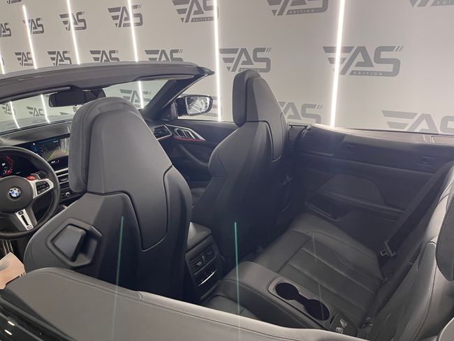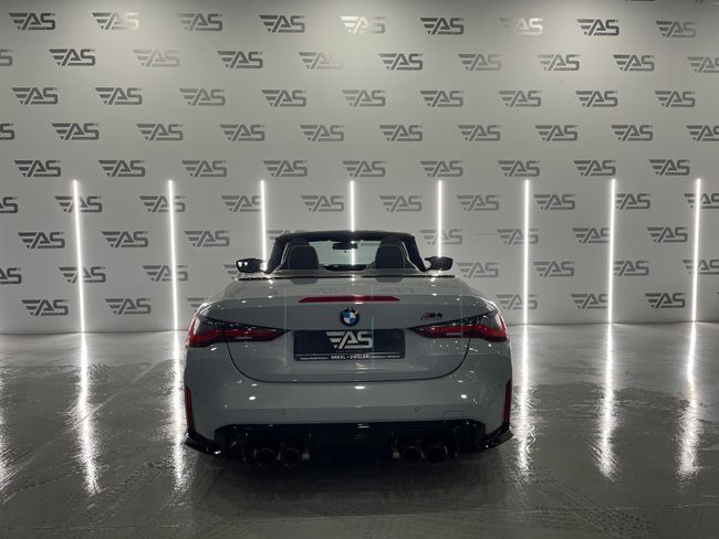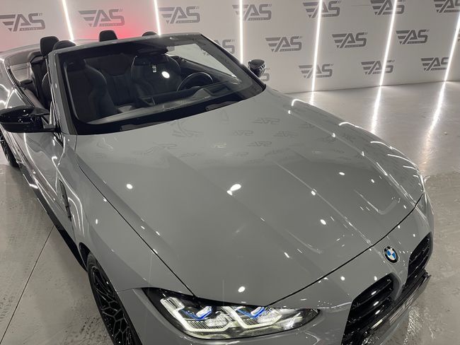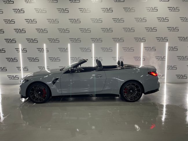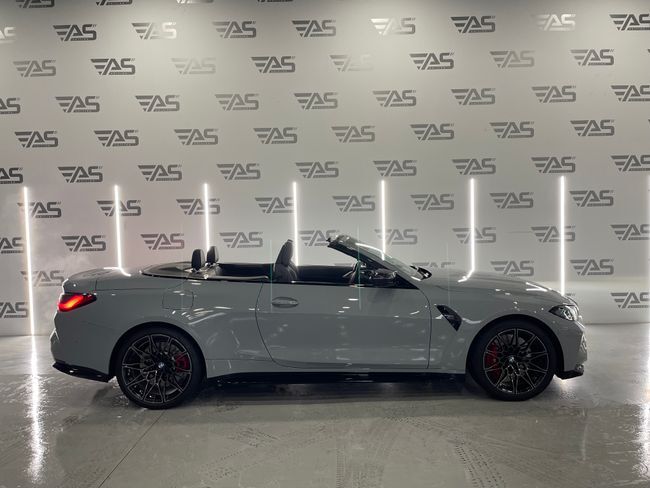 BMW Serie 4 M4 Competition M XDrive Cabrio 3.0 510cv 2p – REESTRENO !!! Garantía oficial Bmw válida hasta 2026 Extras: . Pintura exterior grey . Llantas de doble medida 20" delante y 21" atrás . Sistema de escape deportivo M . Faros delanteros Láser BMW . Paquete de cuero ampliado . Sistema de sonido Harman & Kardon . Head up display . Asientos eléctricos con memoria . Volante calefactable . Apertura y cierre confort sin llave . Iluminación de ambiente con colores . Carga inalámbrica para smartphones . Apple Car Play y Android Auto . Asistente de carril . Asistente de colisión . Asistente de punto ciego . Control de crucero . Cámara de marcha atrás con asistente de aparcamiento . Climatización bizona . Iluminación de bienvenida exterior ¡ Tú nuevo coche te espera en Auto Select Edition ! Financiación 100% hasta 10 años, sin entrada ¡VEN A PROBARLO! Te esperamos en nuestro Showroom Para más información consulte a nuestro Dep. Comercial Todos los vehículos se entregan revisados Garantía: 12 meses (vehículos comerciales 6 meses) . Cambio de nombre incluido en el precio. . Posibilidad de aceptar vehículo como parte de pago. (Previa tasación) . Posibilidad de transporte a cualquier punto de España. (Consultar precio de entrega) TIENDAS: C/ Blas de Otero, 4 · Pol. Ind. Les Brugueres · 17200 Palafrugell (Girona) C/ Ronda Sud, 7 · Pol. Ind. Recinte Firal 1· 17600 Figueres (Girona) Nuestro horario: Lunes a Viernes: 10:00 a 13:00 h. y 16:00 a 19:00 h. Sábados : 10:00 a 14:00 h. . Este anuncio no es vinculante, puede contener errores, se muestra a título informativo y no contractual.