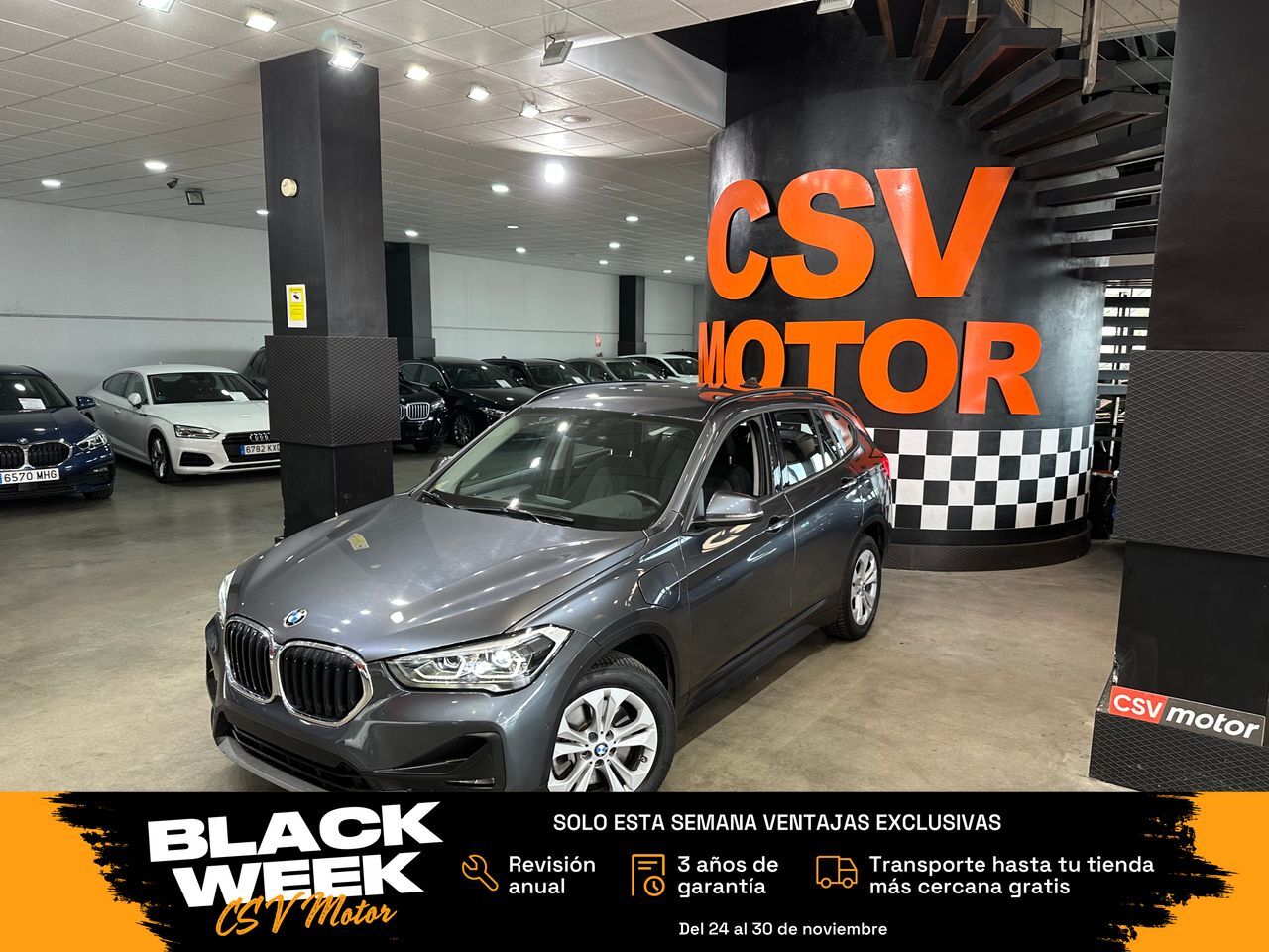 BLACK WEEK CSV MOTOR Del 24 al 30 de noviembre Solo esta semana, si señalizas tu coche desde nuestra web, puedes elegir una de estas ventajas exclusivas: Revisión anual incluida 3 años de garantía incluidos Transporte hasta tu tienda más cercana gratis ¡Sin compromiso! ¡Más de 50 coches nuevos cada día esta semana! ES EL MODELO 1.5HYBRID 220CV 10KWH ADVANTAGE XDRIVE Financiación SIN entrada. Admitimos tu coche a cambio, Y TE LO SOBREVALORAMOS, aunque sea muy viejo. ¿Quieres comprar online? Contáctanos y te daremos todo lo que necesites para decidirte: Teleperitación, certificados, etc. así como la financiación, que sólo con tu nómina te confirmamos en minutos la concesión de la financiación POR EL TOTAL y sin entrada. Nuestros precios son totalmente fijos y sin sorpresas por financiación abusiva. Este vehículo está disponible para su venta en la ubicación que ves en este anuncio. Así también habrá la posibilidad del envío a domicilio, en cualquiera de las siguientes provincias desde 90€: La Coruña Álava Albacete Alicante Almería Asturias Ávila Badajoz Barcelona Burgos Cáceres Cádiz Cantabria Castellón Ciudad Real Córdoba Cuenca Girona Granada Guadalajara Gipuzkoa Huelva Huesca Jaén La Rioja León Lérida Lugo Madrid Málaga Murcia Navarra Ourense Palencia Pontevedra Salamanca Segovia Sevilla Soria Tarragona Teruel Toledo Valencia Valladolid Vizcaya Zamora Zaragoza. El precio indicado es con GARANTIA DE UN AÑO ampliable hasta TRES AÑOS. SEGUNDO AÑO GRATIS FINANCIANDO CON NOSOTROS. El vehículo tiene IVA INCLUIDO y desgravable si eres empresa o autónomo. Garantizamos por CONTRATO kilometraje real y que no ha tenido ningún golpe estructural. INFORMACIÓN PARA PARTICULARES: Te ahorras HASTA EL 11% que deberías pagar a hacienda si comprases a un particular en impuestos. En nuestra web dispone de más información sobre todos nuestros vehículos, así como más posibilidades para contactar con nosotros directamente: www.csvmotor.net Los extras del vehículo que usted está viendo son: VEHÍCULO HÍBRIDO ENCHUFABLE CON ETIQUETA CERO Y AUTONOMÍA DE HASTA 50KM EN MODO 100% ELÉCTRICO, CAMBIO AUTOMÁTICO, ACABADO BUSINESS ADVANTAGE, NAVEGACIÓN BUSINESS CON CONECTIVIDAD USB (1.200€), CLIMATIZADOR AUTOMÁTICO BIZONA CON RECIRCULACIÓN AUTOMÁTICA (650€), ASIENTOS DELANTEROS DEPORTIVOS (550€), SENSOR DE APARCAMIENTO DELANTERO Y TRASERO PDC (850€), ASISTENTE DE APARCAMIENTO PARK ASSIST (500€), CONTROL DE VELOCIDAD CON FUNCIÓN DE FRENADO, FAROS FULL LED (850€), PORTÓN TRASERO ELÉCTRICO, LLANTAS DE ALEACIÓN DE 17” ESTILO DOBLE RADIO 564 (650€), VOLANTE MULTIFUNCIÓN, PAQUETE DE ESPEJOS EXTERIORES, ETC. TOTAL PRECIO VEHÍCULO NUEVO CON ESTA CONFIGURACIÓN: 47.900€. INFORME DE INGENIERO EXTERNO PARA GARANTIZAR KILOMETRAJE Y ESTADO. SE ENTREGARÁ CON LA ÚLTIMA MATRÍCULA EMITIDA POR LA DGT. Este anuncio no es vinculante, puede contener errores.