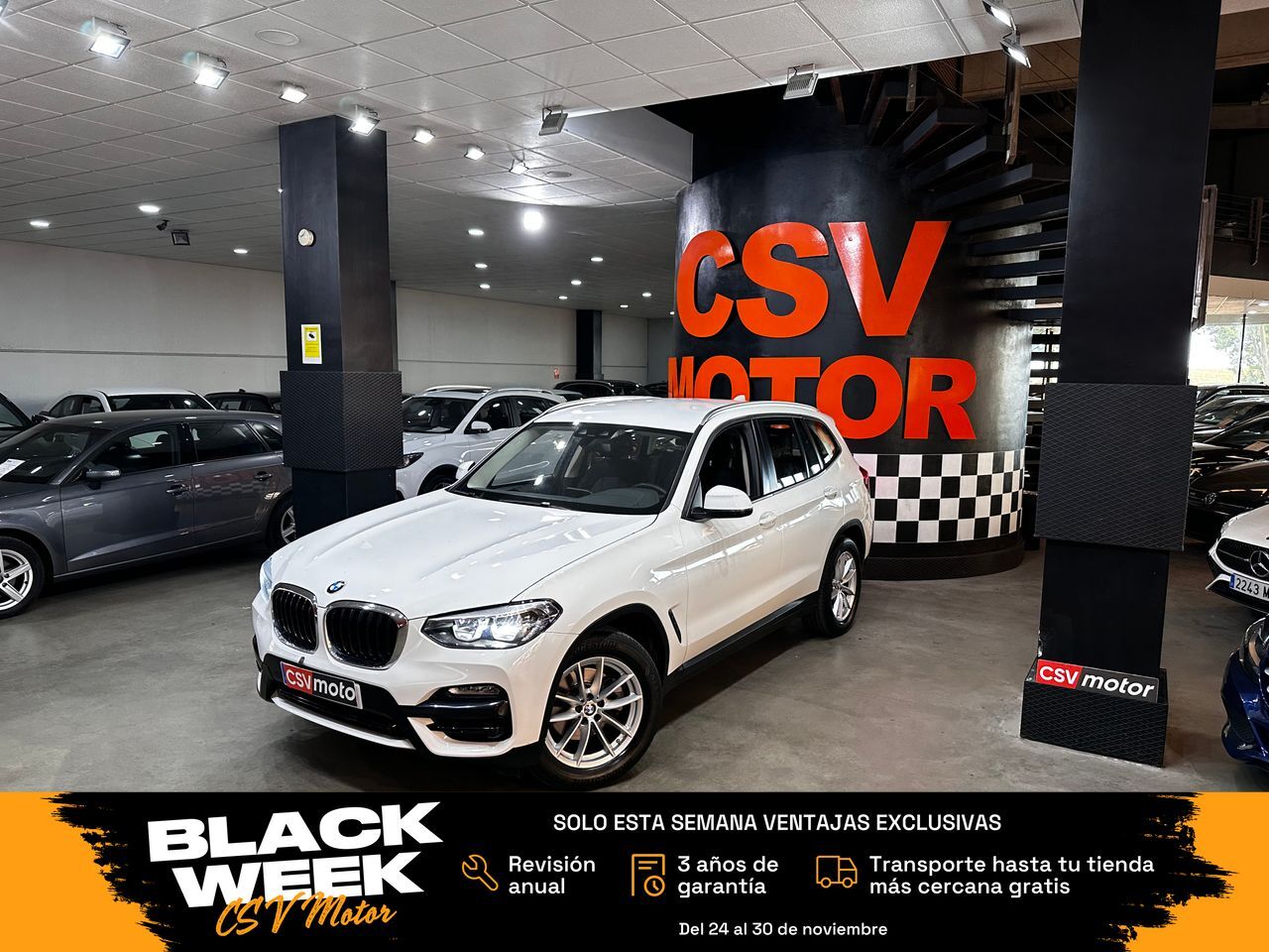 BLACK WEEK CSV MOTOR Del 24 al 30 de noviembre Solo esta semana, si señalizas tu coche desde nuestra web, puedes elegir una de estas ventajas exclusivas: Revisión anual incluida 3 años de garantía incluidos Transporte hasta tu tienda más cercana gratis ¡Sin compromiso! ¡Más de 50 coches nuevos cada día esta semana! ES EL MODELO 18D 150CV SDRIVE Financiación SIN entrada. Admitimos tu coche a cambio, Y TE LO SOBREVALORAMOS, aunque sea muy viejo. ¿Quieres comprar online? Contáctanos y te daremos todo lo que necesites para decidirte: Teleperitación, certificados, etc. así como la financiación, que sólo con tu nómina te confirmamos en minutos la concesión de la financiación POR EL TOTAL y sin entrada. Nuestros precios son totalmente fijos y sin sorpresas por financiación abusiva. Este vehículo está disponible para su venta en la ubicación que ves en este anuncio. Así también habrá la posibilidad del envío a domicilio, en cualquiera de las siguientes provincias desde 90€: La Coruña Álava Albacete Alicante Almería Asturias Ávila Badajoz Barcelona Burgos Cáceres Cádiz Cantabria Castellón Ciudad Real Córdoba Cuenca Girona Granada Guadalajara Gipuzkoa Huelva Huesca Jaén La Rioja León Lérida Lugo Madrid Málaga Murcia Navarra Ourense Palencia Pontevedra Salamanca Segovia Sevilla Soria Tarragona Teruel Toledo Valencia Valladolid Vizcaya Zamora Zaragoza. El precio indicado es con GARANTIA DE UN AÑO ampliable hasta TRES AÑOS. SEGUNDO AÑO GRATIS FINANCIANDO CON NOSOTROS. El vehículo tiene IVA INCLUIDO y desgravable si eres empresa o autónomo. Garantizamos por CONTRATO kilometraje real y que no ha tenido ningún golpe estructural. INFORMACIÓN PARA PARTICULARES: Te ahorras HASTA EL 11% que deberías pagar a hacienda si comprases a un particular en impuestos. En nuestra web dispone de más información sobre todos nuestros vehículos, así como más posibilidades para contactar con nosotros directamente: www.csvmotor.net Los extras del vehículo que usted está viendo son: CAMBIO AUTOMÁTICO STEPTRONIC DE 8 VELOCIDADES (2.500€), CLIMATIZADOR AUTOMÁTICO DE 3 ZONAS (650€), SISTEMA DE NAVEGACIÓN BUSINESS CON PANTALLA CENTRAL (1.100€), SENSOR DE APARCAMIENTO DELANTERO Y TRASERO PDC (850€), LLANTAS DE ALEACIÓN DE 17 PULGADAS (750€), MODOS DE CONDUCCIÓN BMW DRIVING EXPERIENCE CONTROL (350€), VOLANTE MULTIFUNCIÓN, TAPICERÍA DE TELA NEGRA CON ASIENTOS CONFORT, FAROS FULL LED, CONTROL DE CRUCERO CON FUNCIÓN DE FRENADO, PUERTO USB Y BLUETOOTH, ETC. TOTAL PRECIO VEHÍCULO NUEVO CON ESTA CONFIGURACIÓN: 50.300€. INFORME DE INGENIERO EXTERNO PARA GARANTIZAR KILOMETRAJE Y ESTADO. Este anuncio no es vinculante, puede contener errores.