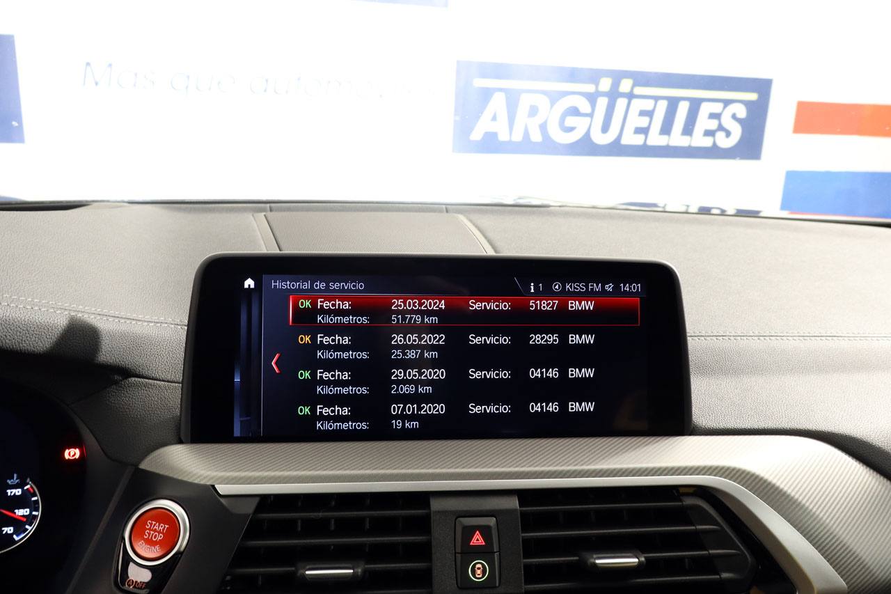 12 Meses de garantía incluida en el precio Vehículo con acabado M Competition y 510cv de potencia. Techo solar panorámico, tapicería de cuero Merino mixto, asientos eléctricos con memoria, sistema de navegación, asientos calefactados, faros LED adaptativos, cámara 360, climatizador de 3 zonas, equipo de sonido Harman Kardon, Head Up Display con proyección en el parabrisas, alerta de vehículos en ángulo muerto y de salida involuntaria de carril, regulador de velocidad ADAPTATIVO, ordenador de viaje, portón trasero eléctrico, retrovisores abatibles eléctricamente, volante multifunción con levas de cambio, acceso sin llave, carga inalámbrica junto con Apple CarPlay, Speed Limit Info, Wifi, 4x4, llantas de aleación M, pintura negro metalizado, Bluetooth, conexión AUX y USB. +135.000EUR NUEVO, CONSULTAR LISTADO COMPLETO DE OPCIONALES.