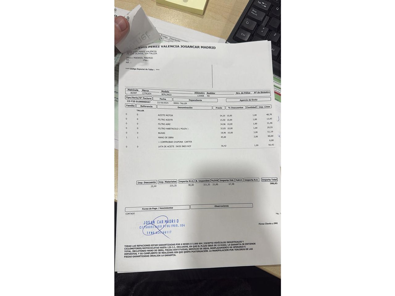 En HRmotor tenemos un coche como nuevo para ti esperándote. Disfrútalo con total tranquilidad, con hasta 2 años de garantía. Contamos con un stock de +3.000 coches de segunda mano para que puedas comprar un coche de ocasión que se adapte a todas tus necesidades y preferencias en nuestros más de 30 concesionarios repartidos en toda España. De esta manera nos encontramos en Madrid con 4 centros; en Barcelona con 4 centros; en Valencia con 3 centros; en Sevilla con 2 centros; en Málaga con 2 centros. Además, nos podrás encontrar también en Lleida, Girona, Castellón, Alicante, Bilbao, Gijón, Mallorca, Murcia, Pamplona, San Sebastián, Tudela, A Coruña, Valladolid, Zaragoza y Elche. Precio al contado de 10990€. o consultar condiciones. Citroen Berlingo 1.2 PureTech 20 Aniversario Edition * Sujeto a condiciones. Consulte con su comercial V-0332396 ***EQUIPAMIENTO EXTRA:*** - Gancho para remolque (bola desmontable) - Pintura metalizada - Programa electrónico de estabilidad (ESP) ***EQUIPAMIENTO SERIE:*** - Mantenimiento del modelo - Paquete infantil - Paquete Look - Paquete fumador - Modelo especial 20 Años Edition - protección de bajos - Retrovisor exterior pintado - Barras portaequipajes en el techo - Luces antiniebla - Luz de día LED - Limpialuneta trasera - Molduras laterales protectoras color carrocería - Lunas tintado - Lunas detrás tintadas (Privacy Glass) - Luna trasera calefactable(s) - Ventanilla lateral detrás tintadas - Ventanilla giratoria detrás - Sistema de audio: Radio con Lector de CD (apto para MP3) - Connecting-Box - Conector-Universal (Conexión USB/iPod/AUX) - Ordenador de a bordo - Ayuda aparcamiento delante y detrás - Control de crucero (Tempomat) - Airbag lado del conductor - Airbag acompañante - Cubierta del maletero / Persiana - Climatizador automático, conductor/acompañante separado regulable - tapicería asientos: Tela - Asiento delante izquierda regulable en altura - Asiento trasero plegable 1/3-2/3 - Elevalunas eléctric. delante con Transmisor de impulsos - Cierre centralizado con Mando a distancia - Puertas traseras doble hoja con Lunas - Puerta corredera izquierda con Ventanilla giratoria - Puerta corredera derecha con Ventanilla giratoria - pirotécnico Tensor del cinturón - Tensor del cinturón con limitador de fuerza - Espejo para niños (retrovisor interior extra para zona trasera) - Inmovilizador - Anclajes Isofix para Asiento para niños en Asiento trasero - Cámara de marcha atrás - Sistema antibloqueo (ABS) - Distribuidor eléctrónico de frenada (EBD) - Asistente a la conducción: Freno de emergencia - Kit reparación de neumáticos - Columna de dirección (Volante) Mec. regulable altura y longitud - Dirección asistida - Reducción polución según norma gases escape Euro 6 - Reducción polución según norma gases escape Euro 4 (PSA = L5) - Sistema Start/Stop - Carrocería: 5 puertas - Caja de cambios 5-marcha - Motor 1,2 Ltr. - 81 kW 12V e-THP / PureTech