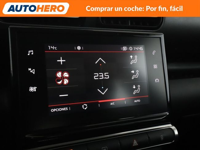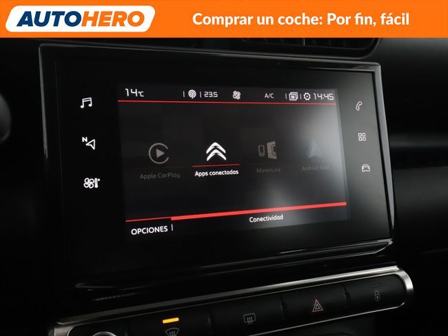 AUTOHERO, Comprar un coche: Por Fin, Fácil Disfruta de nuestras ofertas y ventajas por ser nuestro cliente: - Recoge el coche de tus sueños gratis en cualquiera de nuestros puntos de entrega. ¡solo por tiempo limitado, no lo dejes escapar! - Cuida del coche con el mantenimiento más completo desde 5€ al mes - Financia con nosotros, y consigue uno de los TIN más bajos del mercado - Garantía gratuita de 12 meses incluida y ampliable hasta 36 meses - Política de devolución de 21 días con garantía de devolución del 100% del dinero Este vehículo está disponible en uno de nuestros Autohero Center, llámanos y pregunta su disponibilidad. Nuestro nuevo horario es: L-V: 09:00-21:00, S:10-19 y D:10-14 Pero si no puedes venir, no te preocupes, también puedes comprar el coche de tus sueños en tan solo unos pocos clics. Entra en nuestra web y disfruta de la experiencia Autohero. Características del vehículo: - Sistema de Navegación GPS - Sistema limitador de velocidad - Control de crucero - Preinstalación de sensores de aparcamiento delanteros - Sensores de aparcamiento traseros - Parabrisas calefactable - Llantas de aleación ligera 6 5x16 (Matrix) - Asistente de cambio de carril - Asistente a la conducción: Reconocimiento de señales de tráfico - Apple CarPlay - Android Auto - MirrorLink - Climatizador automático - Asiento trasero plegable 1/3-2/3 - Cubierta del maletero - Volante multifuncional - Columna de dirección (Volante) Mec. regulable altura y longitud - Asistente a la conducción: Asistente de subidas - Elevalunas eléctric. delante - Elevalunas eléctric. detrás - Cierre centralizado - Bloqueo de elevalunas electricos trasero - Radio - Sistema de audio con 6 Altavoces - USB - Dispositivo de manos libres Bluetooth - Ordenador de a bordo - Retrovisores exteriores regulables eléctricamente - Espejos retrovisores con intermitente - Encendido automático de luces - Limpiaparabrisas con Sensor de lluvia - Luz de día LED - Luces antiniebla - Luces de lectura - Luces de maletero - Limpiaparabrisas trasero - Sistema antibloqueo (ABS) - Programa electrónico de estabilidad (ESP) - Regulación antideslizante (ASR) - Sistema control presión neumáticos - Asistente a la conducción: Sistema asistencia y llamada emergencia (CITROEN Connect) - Airbag pasajero desconectable ¿A qué esperas? ¡Tenemos más de 3.000 coches disponibles! Para más información ven a visitarnos a uno de nuestros Autohero Centers o contacta con nuestro equipo por teléfono. PL91731