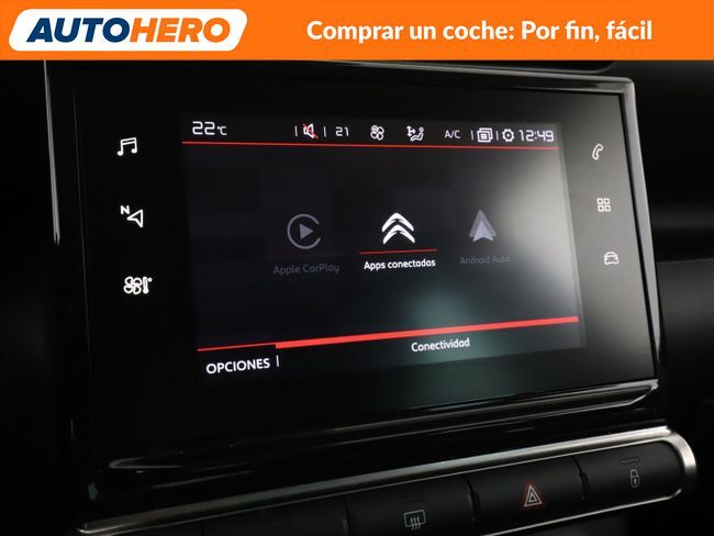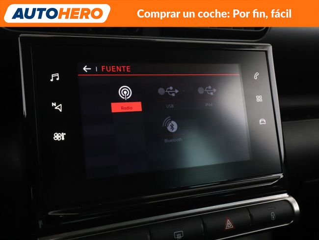 AUTOHERO, Comprar un coche: Por Fin, Fácil Disfruta de nuestras ofertas y ventajas por ser nuestro cliente: - Recoge el coche de tus sueños gratis en cualquiera de nuestros puntos de entrega. ¡solo por tiempo limitado, no lo dejes escapar! - Cuida del coche con el mantenimiento más completo desde 5€ al mes - Financia con nosotros, y consigue uno de los TIN más bajos del mercado - Garantía gratuita de 12 meses incluida y ampliable hasta 36 meses - Política de devolución de 21 días con garantía de devolución del 100% del dinero Este vehículo está disponible en uno de nuestros Autohero Center, llámanos y pregunta su disponibilidad. Nuestro nuevo horario es: L-V: 09:00-21:00, S:10-19 y D:10-14 Pero si no puedes venir, no te preocupes, también puedes comprar el coche de tus sueños en tan solo unos pocos clics. Entra en nuestra web y disfruta de la experiencia Autohero. Características del vehículo: - Sistema de Navegación GPS - Sistema limitador de velocidad - Control de crucero - Sensores de aparcamiento traseros - Parabrisas calefactable - Llantas de aleación ligera 6 5x16 (Matrix) - Asistente de cambio de carril - Asistente a la conducción: Reconocimiento de señales de tráfico - Apple CarPlay - Android Auto - Climatizador automático - Asiento trasero plegable 1/3-2/3 - Asiento delante izquierda regulable en altura - Volante multifuncional - Columna de dirección (Volante) Mec. regulable altura y longitud - Asistente a la conducción: Asistente de subidas - Elevalunas eléctric. delante - Cierre centralizado - Arranque sin llave - Reposabrazos delantero - Bloqueo de elevalunas electricos trasero - Sistema de audio con 6 Altavoces - USB - Dispositivo de manos libres Bluetooth - Ordenador de a bordo - Retrovisor exterior regulable eléctricamente - Retrovisor exterior plegable - Encendido automático de luces - Luz de día LED - Luces antiniebla - Lunetas traseras tintadas - Limpiaparabrisas trasero - Sistema antibloqueo (ABS) - Programa electrónico de estabilidad (ESP) - Regulación antideslizante (ASR) - Sistema control presión neumáticos - Asistente a la conducción: Sistema asistencia y llamada emergencia (CITROEN Connect) - Anclajes Isofix para Asiento para niños en Asiento trasero - Airbag pasajero desconectable - Airbag conductor/acompañante ¿A qué esperas? ¡Tenemos más de 3.000 coches disponibles! Para más información ven a visitarnos a uno de nuestros Autohero Centers o contacta con nuestro equipo por teléfono. UY13941