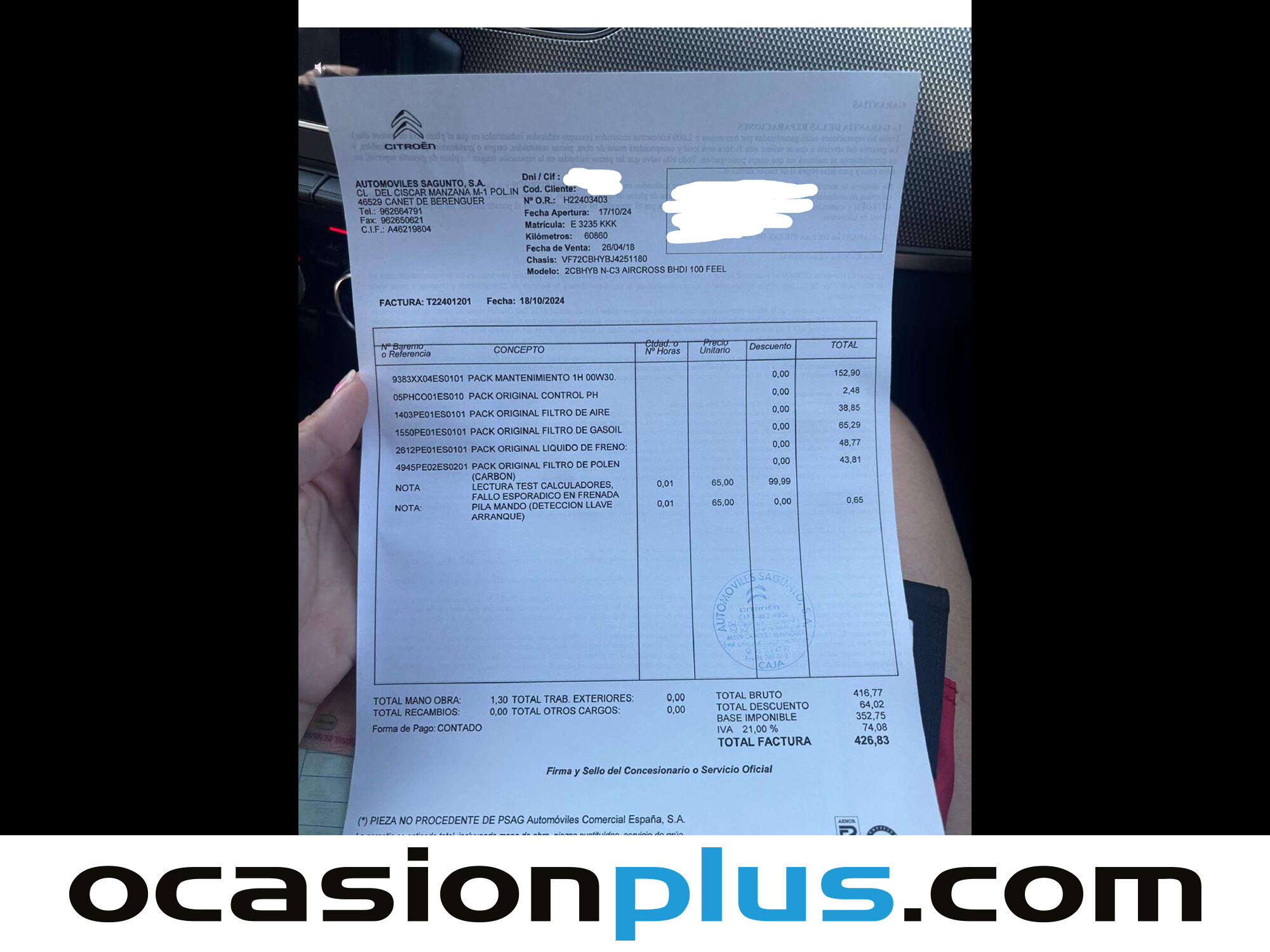 ¡LLEGA LA BLACK WEEK A OCASIONPLUS! HASTA 10.000 € DE SUPERDESCUENTOS EN MÁS DE 16.000 COCHES. SÓLO HASTA EL 30 DE NOVIEMBRE OCASIONPLUS - 16000 COCHES - 100 CENTROS OCASIONPLUS Nº1 CALIDAD - PRECIO Elige el coche que te guste y te lo llevamos a tu ciudad sólo con reservarlo 15 DÍAS / 1000 KMS DE PRUEBA Hasta 2109€ de descuento en este coche Precio oferta financiado: 11091€ (consulta condiciones específicas de promo - sujeta a aprobación de la entidad financiera) Precio al contado: 12200€ ADEMÁS, HACEMOS LAS MEJORES FINANCIACIONES DEL MERCADO, PREGÚNTANOS!! Equipamiento destacado: Car Play, Navegador, Encendido automático de faros, Sensor de lluvia, Asistente de cambio de carril, Control de velocidad, Limitador de velocidad, Volante multifunción, Aire Acondicionado (Climatizador), Arranque por botón, Bluetooth, Elevalunas eléctrico, Llantas de aleación (16"). - Coche Nacional, Historial Mantenimiento. - Garantía total 1 año, con cobertura nacional, ampliable a 24 meses. - Certificado de Kilómetros y ausencia de golpes estructurales. - Sobrevaloramos tu coche en operaciones de cambio. Tásalo ahora en ocasionplus.com - Entregamos cualquier coche en cualquier centro - Abierto Domingo y Festivos.