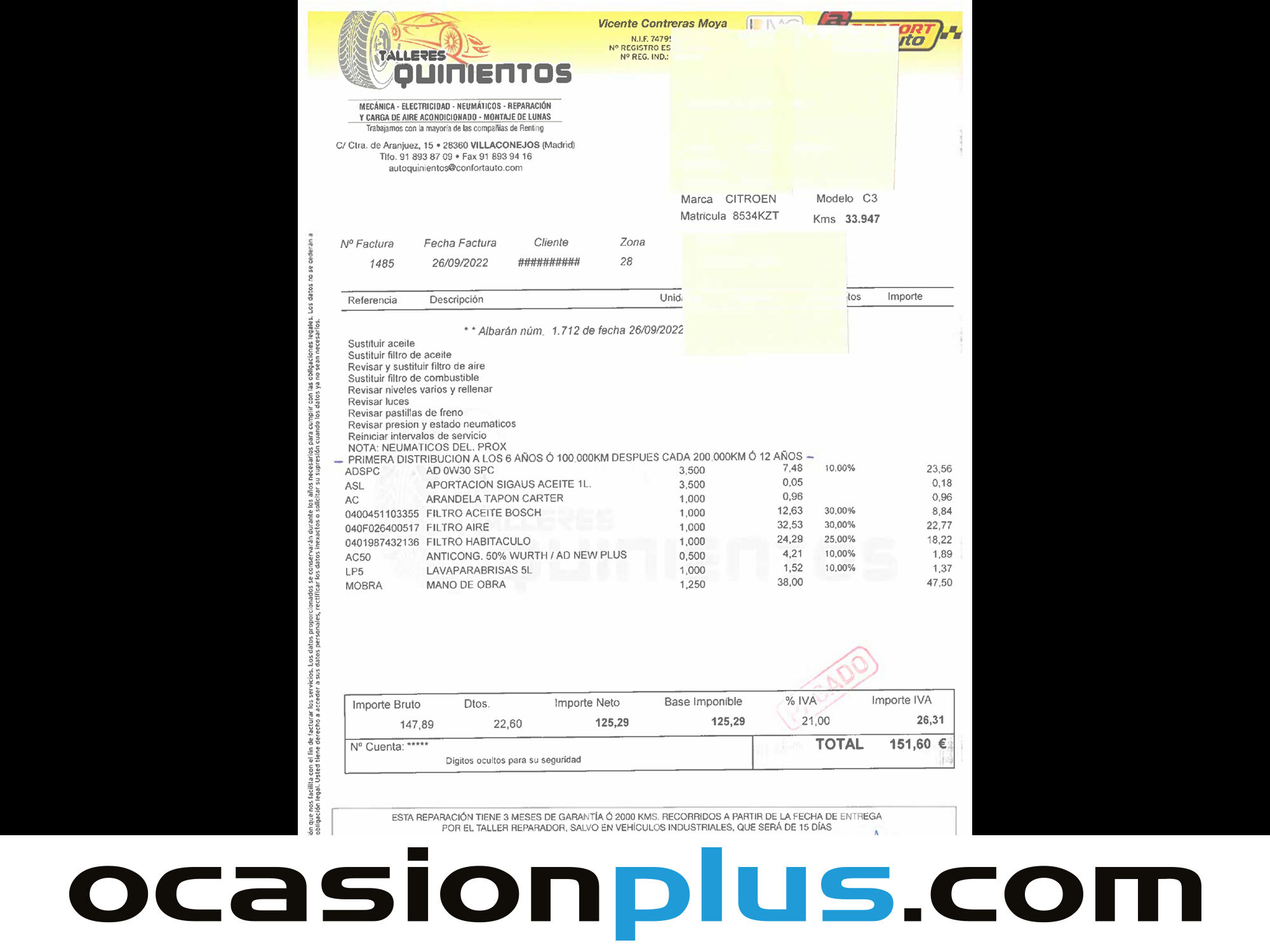 ¡LLEGA LA BLACK WEEK A OCASIONPLUS! HASTA 10.000 € DE SUPERDESCUENTOS EN MÁS DE 16.000 COCHES. SÓLO HASTA EL 30 DE NOVIEMBRE OCASIONPLUS - 16000 COCHES - 100 CENTROS OCASIONPLUS Nº1 CALIDAD - PRECIO Elige el coche que te guste y te lo llevamos a tu ciudad sólo con reservarlo 15 DÍAS / 1000 KMS DE PRUEBA Hasta 1044€ de descuento en este coche Precio oferta financiado: 10446€ (consulta condiciones específicas de promo - sujeta a aprobación de la entidad financiera) Precio al contado: 11490€ ADEMÁS, HACEMOS LAS MEJORES FINANCIACIONES DEL MERCADO, PREGÚNTANOS!! Equipamiento destacado: Navegador, Car Play, Encendido automático de faros, Asistente de mantenimiento de carril, Start/Stop automático, Control de velocidad, Limitador de velocidad, Volante multifunción, Aire Acondicionado (Climatizador), Bluetooth, Llantas de aleación (16"). - Coche Nacional, Historial Mantenimiento. - Garantía total 1 año, con cobertura nacional, ampliable a 24 meses. - Certificado de Kilómetros y ausencia de golpes estructurales. - Sobrevaloramos tu coche en operaciones de cambio. Tásalo ahora en ocasionplus.com - Entregamos cualquier coche en cualquier centro - Abierto Domingo y Festivos.