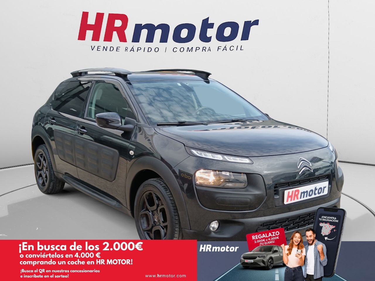 En HRmotor tenemos un coche como nuevo para ti esperándote. Disfrútalo con total tranquilidad, con hasta 2 años de garantía. Contamos con un stock de +3.000 coches de segunda mano para que puedas comprar un coche de ocasión que se adapte a todas tus necesidades y preferencias en nuestros más de 30 concesionarios repartidos en toda España. De esta manera nos encontramos en Madrid con 4 centros; en Barcelona con 4 centros; en Valencia con 3 centros; en Sevilla con 2 centros; en Málaga con 2 centros. Además, nos podrás encontrar también en Lleida, Girona, Castellón, Alicante, Bilbao, Gijón, Mallorca, Murcia, Pamplona, San Sebastián, Tudela, A Coruña, Valladolid, Zaragoza y Elche. Precio al contado de 8890€. o consultar condiciones. Citroen C4 Cactus 1.2 PureTech Shine * Sujeto a condiciones. Consulte con su comercial V-0310439 ***EQUIPAMIENTO EXTRA:*** - Connecting-Box - Llantas de aleación 6,5x16 (Cuadrado, Negro) - Pintura metalizada - Rueda de repuesto ***EQUIPAMIENTO SERIE:*** - Retrovisor exterior calefactable(s), ambos - Retrovisor exterior regulable eléctricamente - Retrovisor exterior pintado - Barras portaequipajes en el techo - Luces antiniebla incl. luz de curva estática - Luz de día LED - Limpialuneta trasera - Partes protectoras laterales Absorvente de choques, Black (Airbump) - Lunas detrás tintadas - Luna trasera calefactable(s) - Ventanilla giratoria detrás - Sistema de audio: Radio con Lector de CD (apto para MP3) - OnStar SOS Inspección - Indicador multifunción con pantalla táctil en color - Ayuda aparcamiento detrás con Cámara de marcha atrás - Sistema audio-navegador con pantalla en color - Sistema control presión neumáticos - Control de crucero (Tempomat) incl. Sistema limitador de velocidad - Airbag lado del conductor - Airbag acompañante - Airbag conductor/acompañante - Sistema de airbag para la cabeza - Reposabrazos central delante - Climatizador automático, separado regulable conductor/acompañante - Climatizador automático - tapicería asientos: Tela - Asiento delante izquierda regulable en altura - Respaldo del asiento trasero dividido/abatible - Asiento trasero plegable - Reposacabezas detrás - Elevalunas eléctric. delante - Cierre centralizado - Inmovilizador con Transponder - Cámara de marcha atrás - Sistema antibloqueo (ABS) - Asistente del freno - Volante (cuero) - Columna de dirección (Volante) regulable en altura - Dirección asistida eléctric. - Programa electrónico de estabilidad (ESP) - Asistente a la conducción: Asistente de subidas (Hill-Holder) - Reducción polución según norma gases escape Euro 6 - Carrocería: 5 puertas - Tipo transmisión: Tracción delantera - Batalla 2595 mm - Caja de cambios 5-marcha - Motor 1,2 Ltr. - 60 kW 12V VTi / PureTech