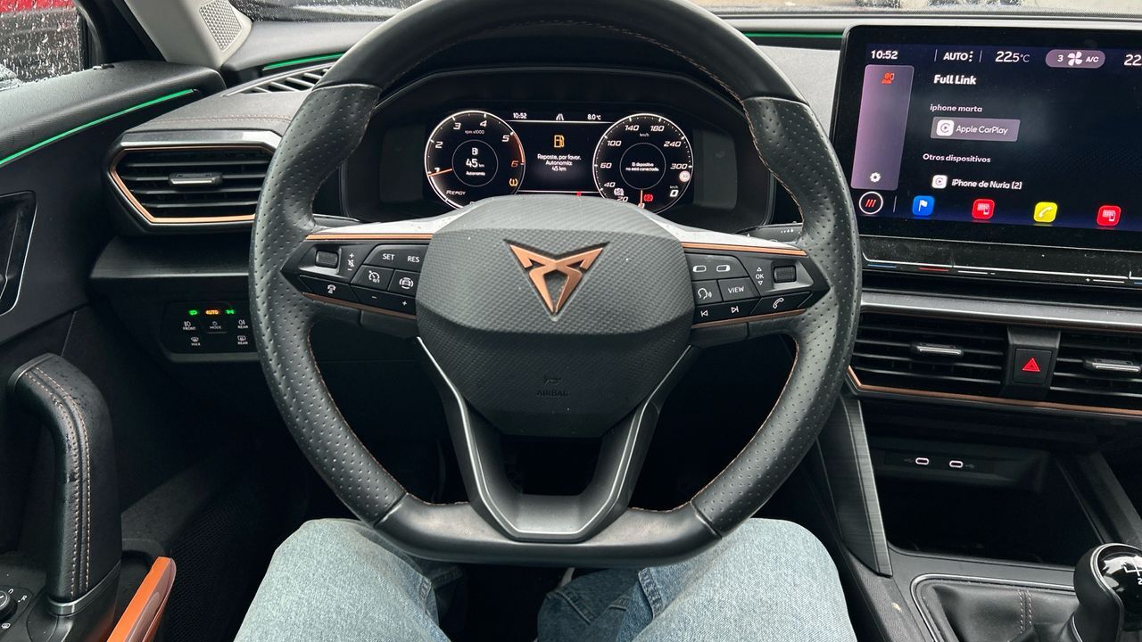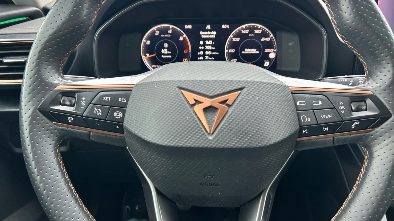 El CUPRA Formentor 2.0 TDI es un SUV que combina diseño deportivo con eficiencia y confort. Su motor diésel de 150 CV y cambio manual ofrece una respuesta firme y un consumo ajustado, ideal para quienes buscan un vehículo versátil para viajes largos y uso diario. Con 38.370 km y acabado en color gris, mantiene una imagen elegante y moderna. En su interior encontrarás un equipamiento completo: pantalla táctil con conectividad, climatizador, control de crucero, cámara trasera y volante multifunción. Además, incorpora asistentes de seguridad y detalles propios de la marca que aportan un toque premium. Es perfecto para conductores que valoran espacio, tecnología y una experiencia de conducción equilibrada. Vehículo comercializado por Grupo Seligrat (Concesionario oficial de las marcas OPEL, PEUGEOT, KIA, HONDA, MITSUBISHI, CHANGAN, SUZUKI y MAXUS) con más de 50 años en el sector, especialistas en la venta de vehículos de ocasión online y presencial. Financiación 100% a tu medida, contacta con nosotros y te informamos sin compromiso. Posibilidad de entrega de tu coche como parte de pago, te damos la máxima tasación tanto presencial, como online. Financiación 100% a tu medida y hasta 3 años de garantía. ***EQUIPAMIENTO OPCIONAL INCLUIDO*** - Pintura metalizada ***EQUIPAMIENTO SERIE INCLUIDO*** - Cinco plazas ( 2+3 ) - Siete altavoces - Equipo de audio con radio AM/FM. RDS. radio digital y pantalla táctil pantalla a color y 0 - Control remoto de audio en el volante - Toma/s de 12v en los asientos delanteros - Cuatro frenos de disco siendo cuatro ventilados - ABS - Preparación para teléfono móvil cargador y antena - Apertura a distancia del maletero con control remoto - Control de crucero con control de crucero adaptativo - Luces de lectura delanteras y traseras - Iluminación de acceso proyección del logo - Espejo de cortesía iluminado en conductor en acompañante - Sensores de aparcamiento traseros con radar - Combustible: diesel y Combustible primario: diesel - Acabados de lujo: pomo de la palanca de cambios en aluminio y cuero. consola central en aluminio simil. puertas en aluminio simil y tablero en símil aluminio y cuero sintético - Faros con lente elipsoidal. bombilla LED y luz larga con bombilla LED - Regulación de los faros con ajuste de altura automático. sensor de luz ambiental y sensor de vehículos en sentido contrario - Luces antiniebla delanteras - Luces laterales maniobras/de bordillo - Encendido diurno automático - Airbag lateral de cortina delantero y trasero - Bandeja trasera rígida - Sujeción de carga - Cierre centralizado con apertura por tarjeta/llave inteligente y contról de los elevalunas - Portaequipajes longitudinal en el techo en color combinado con carrocería - Airbag frontal del conductor. airbag frontal del acompañante desconectable - Airbags laterales delanteros - Dos reposacabezas en asientos delanteros ajustables en altura. tres reposacabezas en asientos traseros ajustables en altura - Cinturón de seguridad delantero en asiento conductor y acompañante con pretensores - Cinturón de seguridad trasero en lado conductor. cinturón de seguridad trasero en lado acompañante. cinturón de seguridad trasero en asiento central de 3 puntos - Asientos de tela (material principal) y de cuero sintético (material secundario) - Apoyabrazos central delantero - Apoyabrazos trasero - Asiento delantero del conductor y acompañante deportivo. ajuste longitudinal manual. ajuste manual en altura y ajuste lumbar manual con ajuste manual del respaldo - Compartimentos bajo el asiento del conductor - Sujetavasos en los asientos delanteros - Sistema de ventilación con pantalla digital. filtro de pólen y filtro de carbón activo controles en pantalla táctil - Controles de climatización diferenciados digitales para conductor/acompañante y asientos delanteros/traseros - Aire acondicionado trizona con mandos traseros para el climatizador de automático - Limpiaparabrisas delantero con sensor de lluvia - Elevalunas eléctricos delanteros y traseros con dos de ellos de un solo toque - Consola en el suelo - Distribución electrónica de la frenada - Sistema de servofreno de emergencia - Pantalla de entretenimiento multimedia táctil de 10.0 delantera y 25.4 - Indicador de baja presion de los neumáticos - Preparación Isofix - Tarjeta / llave inteligente automática con entrada sin llave y arranque sin llave - Conexion internet - Telemática vía SIM en el vehículo con aviso avanzado automático de colisión asistencia por avería - Freno mano electrónico - Filtro de partículas - Resultado de pruebas de impacto Euro NCAP :. puntuación global: 5.00. protección adultos: 93.00. protección niños: 88.00. protección peatones: 68.00. puntuación ayudas a la seguridad: 80.00. Versión evaluada: Cupra Formentor 1.5 petrol 5dr OD LHD y Fecha del test: 03 mar 2021 - Control de arranque en pendiente - Sistema de alarma de colisión: activa las luces de freno con asistencia de frenado. sistema antiatropello peatones/ciclistas. monitorización del conductor y frenado a baja velocidad aviso visual/ acústico - Bluetooth ( incluye música por 'streaming' ) - Start/Stop parada y arranque automático - Cristal trasero oscurecido en el lateral trasero - Conexión para: USB delantero. 2 y 0 - Botón de arranque del vehículo - Limitador de velocidad - Luces de freno. luces frontales antiniebla. luces de cruce. luces intermitentes laterales. Luces de día. Luces traseras y luces de carretera con tecnología LED - Recuperación de la energía motor - Modos de conducción con cartografía del motor y dirección - Sistema de dirección dinámica - Airbag central para asientos delanteros