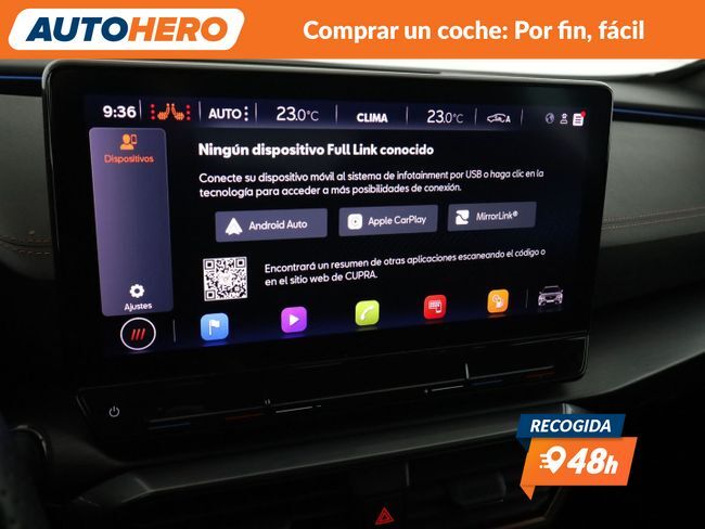 AUTOHERO, Comprar un coche: Por Fin, Fácil Disfruta de nuestras ofertas y ventajas por ser nuestro cliente: - Recoge el coche de tus sueños gratis en cualquiera de nuestros puntos de entrega. ¡solo por tiempo limitado, no lo dejes escapar! - Cuida del coche con el mantenimiento más completo desde 5€ al mes - Financia con nosotros, y consigue uno de los TIN más bajos del mercado - Garantía gratuita de 12 meses incluida y ampliable hasta 36 meses - Política de devolución de 21 días con garantía de devolución del 100% del dinero Este vehículo está disponible en uno de nuestros Autohero Center, llámanos y pregunta su disponibilidad. Nuestro nuevo horario es: L-V: 09:00-21:00, S:10-19 y D:10-14 Pero si no puedes venir, no te preocupes, también puedes comprar el coche de tus sueños en tan solo unos pocos clics. Entra en nuestra web y disfruta de la experiencia Autohero. Características del vehículo: - Digital cockpit - Faros LED-Matrix - Control de crucero (Tempomat) - Cámara trasera - Asistente de aparcamiento - Sensores de aparcamiento delanteros - Sensores de aparcamiento traseros - Asiento delante izquierda eléctric. regulable (con Memory) - Asientos delanteros calefactables - Portón mando eléctr. (abrir + cerrar controlado por sensor) - Tipo transmisión: Tracción total - Asistente a la conducción: Asistente de mantenimiento de carril - Asistente a la conducción: Reconocimiento de señales de tráfico - Asistente a la conducción: Asistente luz carretera - Apple CarPlay - Android Auto - MirrorLink - Climatizador automático 3 zonas - Asientos tipo baquet deportivos delante con reposacabezas integrados - Respaldo del asiento trasero dividido/abatible (1/3-2/3) - Levas de cambio en el volante - Volante calefactable - Volante multifuncional sport - Freno de estacionamiento electr. - Asistente a la conducción: Driving Profile Selection (CUPRA Drive Profile) - Asistente a la conducción: Regulación adaptativa del tren de rodaje (DCC) - Elevalunas eléctric. delante + detrás - Cierre centralizado - Arranque sin llave - Reposabrazos central detrás - Reposabrazos central delante - Portavasos - Bloqueo de elevalunas electricos trasero - Radio - Interfaz USB en la parte frontal (2x, tipo C) - Carga para USB (2-posiciones, Modelo C) para 2ª fila de asientos ¿A qué esperas? ¡Tenemos más de 3.000 coches disponibles! Para más información ven a visitarnos a uno de nuestros Autohero Centers o contacta con nuestro equipo por teléfono. XD92279