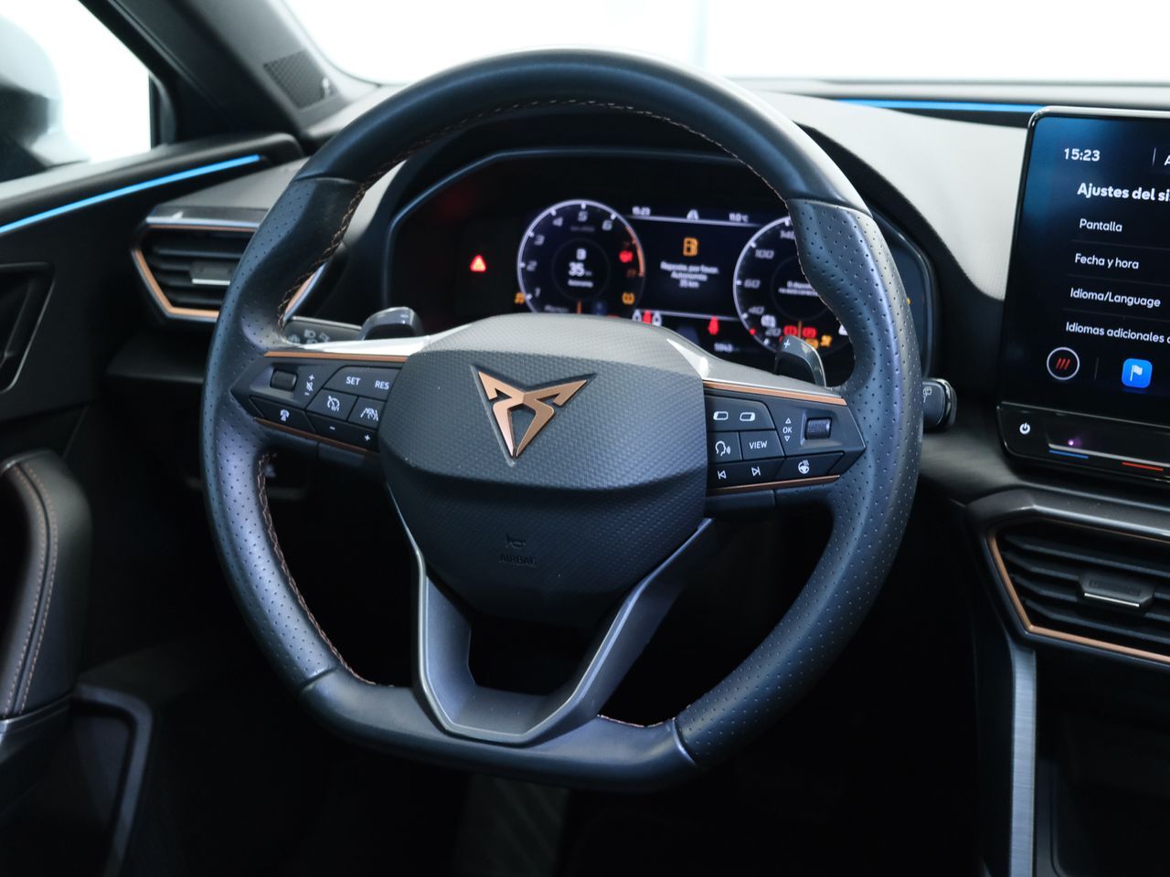 OFERTA MAYO! CUPRA LEON 1.5 ETSI 150 DSG 5P - Kilometraje Certificado - Matriculación: 2024 Equipamiento destacado: - Garantia hasta - 2027 - Android Auto y AppleCarPlay sin CABLES! - Pantalla 12 con cuadro digital de 10.25 totalmente configurable - Cargador inalambrico movil - Acceso y arranque sin llave KEYLESS - Sensor de aparcamiento delantero+trasero + cámara - Regulador adaptativo velocidad, lane assist, frenada de emergencia y ángulo muerto - Climatizador trizona - Faros Full Led - Iluminación led interior envolvente - Luz cortesia retrovisor logo CUPRA - Luz led infinita trasera - Llanta aleación 18 - Cambio de nombre NO incluido en el precio - Aceptamos su actual vehículo como forma de pago, tasación sin compromiso. ONDINAUTO Concesionarios Oficiales Seat, Cupra y DasWeltAuto en: - Ripollet by MAAS ens mous Profesionales en automoción desde 1964... *Las especificaciones en esta ficha en cuanto a precio, modelo, equipamiento, fotos... pueden contener algún error y por tanto no tienen carácter vinculante no pudiendo constituir en ningún caso la base de un futuro contrato. ***EQUIPAMIENTO OPCIONAL INCLUIDO*** - Tech Pack - Sound & Shine pack ***EQUIPAMIENTO SERIE INCLUIDO*** ACABADO INTERIOR - Acabados de lujo: consola central en símil aluminio, puertas en símil aluminio y tablero en símil aluminio ASIENTOS - Cinco plazas ( 2+3 ) - Asientos de tela (material principal) y de cuero sintético (material secundario) - Apoyabrazos central delantero - Apoyabrazos trasero - Asiento delantero del conductor y acompañante deportivo, ajuste longitudinal manual, ajuste manual en altura y ajuste lumbar manual con ajuste manual del respaldo - Asientos traseros de tres plazas de tipo banco de orientación delantera con banqueta fija, respaldo abatible asimétrico y comunicado con el maletero AUDIO - Siete altavoces - Equipo de audio con radio AM/FM, radio digital y pantalla táctil - Control remoto de audio en el volante - Conexión para: USB delantero, 2, 0 y 0 CERRADURAS - Cierre centralizado con apertura por tarjeta/llave inteligente CLIMATIZACIóN - Sistema de ventilación con filtro de carbón activo controles en pantalla táctil y calefacción del motor - Controles de climatización diferenciados para conductor/acompañante y asientos delanteros/traseros - Aire acondicionado trizona con mandos traseros para el climatizador de automático COMBUSTIBLE Y ALIMENTACIóN DEL MOTOR - Combustible: sin plomo 95 octanos y Combustible primario: gasolina - Depósito principal de combustible: 45 litros CONFORT - Toma/s de 12v en los asientos delanteros - Control de crucero - Iluminación de acceso proyección del logo - Espejo de cortesía iluminado en conductor en acompañante - Sistema de distancia de aparcamiento traseros con sensor - Tarjeta / llave inteligente con entrada sin llave y arranque sin llave - Sistema activacion por voz ninguno y activado con Inteligencia Artificial - Navegador de internet integrado - Telemática vía SIM en el vehículo con aviso avanzado automático de colisión y sistema de seguimiento asistencia por avería - Toma de corriente - Bluetooth - Botón de arranque del vehículo - Limitador de velocidad - Modos de conducción con cartografía del motor y dirección - Base de carga inalámbrica DIMENSIONES - Dimensiones exteriores: 4.398 mm de largo, 1.799 mm de ancho, 1.444 mm de alto, 2.689 mm de batalla, 1.538 mm de ancho de vía delantero, 1.508 mm de ancho de vía trasero, 10.500 mm de diámetro de giro entre bordillos, 11.200 mm de diámetro de giro entre paredes, 1.992, 36,7 y 78,4 - Dimensiones interiores: 1.045 mm de altura entre banqueta-techo (delante), 969 mm de altura entre banqueta-techo (detrás), 1.409 mm de anchura en las caderas (delante) y 1.362 mm de anchura en las caderas (detrás) - Capacidad del compartimento de carga: 270 litros (hasta las ventanas con asientos montados) ( medición ISO ) 0 l de almacenamiento delantero y 0,0 cu ft de almacenamiento delantero ESPACIO DE CARGA - Bandeja trasera rígida - Sujeción de carga FRENOS - Cuatro frenos de disco siendo dos ventilados - ABS - Sistema de servofreno de emergencia - Freno mano electrónico - Control de arranque en pendiente INSTRUMENTACIóN - Tablero de instrumentos con pantalla TFT configurable - Ordenador de viaje con consumo medio - Indicador de baja presión de los neumáticos - Pantalla de visualización de 10,30 panel de instrumentos 1 y 26,2, pantalla de visualización táctil de 10,00 Salpicadero central 1, 25,4, orientación de la pantalla fija y no LUCES - Faros con lente elipsoidal, bombilla LED y luz larga con bombilla LED - Regulación de los faros con sensor de oscuridad y sensor de vehículos en sentido contrario - Luces antiniebla delanteras - Luces laterales maniobras/de bordillo - Encendido diurno automático - Luces de freno, luces frontales antiniebla, luces de cruce, luces intermitentes laterales, Luces de día, Luces traseras y luces de carretera con tecnología LED MANTENIMIENTO - Mantenimiento principal cada 30.000 km, 24 meses : variable distancia/tiempo MOTOR - Motor de 1,5 litros ( 1.498 cc ) , cuatro cilindros en línea con 74,5 mm de diámetro y 85,9 mm de carrera ; código del motor: D8I - Compresor: uno de tipo turbo - Norma de emisiones EU6 D, 113 g/km CO2 (combinado), 0,00000 g/km (partículas), g/km Nox y ECO - Etiqueta de eficiencia energética clase A - Desconexión de cilindros - Start/Stop parada y arranque automático - Recuperación de la energía - Emisiones WLTP HEV modo ahorro de la batería, 135,0, 127,0 y 144,0 - Sistema eléctrico 48 PESOS - Pesos: 1.880 kg (peso máximo admisible), 1.395 kg (peso en vacío), peso en vacío incluyendo al conductor Kg (peso en vacio incluido conductor), 0 kg (peso máximo remolcable con freno) y 0 kg (peso máximo remolcable sin freno) ( medición: EU ) PORTAOBJETOS - Compartimentos bajo el asiento del conductor - Sujetavasos en los asientos delanteros y los asientos traseros PRESTACIONES - Prestaciones: