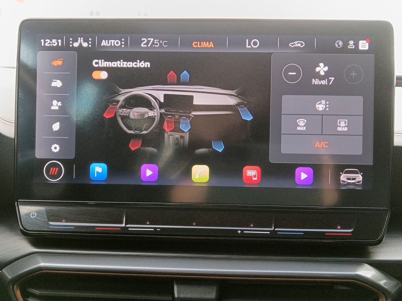 En HRmotor tenemos un coche como nuevo para ti esperándote. Disfrútalo con total tranquilidad, con hasta 2 años de garantía. Contamos con un stock de +3.000 coches de segunda mano para que puedas comprar un coche de ocasión que se adapte a todas tus necesidades y preferencias en nuestros más de 30 concesionarios repartidos en toda España. De esta manera nos encontramos en Madrid con 4 centros; en Barcelona con 4 centros; en Valencia con 3 centros; en Sevilla con 2 centros; en Málaga con 2 centros. Además, nos podrás encontrar también en Lleida, Girona, Castellón, Alicante, Bilbao, Gijón, Mallorca, Murcia, Pamplona, San Sebastián, Tudela, A Coruña, Valladolid, Zaragoza y Elche. Precio al contado de 26790€. o consultar condiciones. Cupra Leon 1.5 eTSI DSG * Sujeto a condiciones. Consulte con su comercial V-0331552 ***EQUIPAMIENTO EXTRA:*** - Panorama Techo corredizo/elevable eléctric. - Paquete: cuero - Pintura metalizada - Sistema de audio: Sistema de sonido BeatAudio - Taloneras de entrada (Aluminio) delante, iluminación ***EQUIPAMIENTO SERIE:*** - Paquete Luz y Visión - Barras portaequipajes en el techo Negro, alto brillo - Faro Faros LED-Matrix - Intermitentes LED en Retrovisor exterior integrad. - Luces antiniebla LED con luz de curva - Asistente a la conducción: Asistente luz carretera - Pilotos traseros LED con intermitente dinámico - Pilotos traseros LED-total con banda luminosa dinámica (Infinite Light) - Luz de día LED - Embellecedores de ventana Negro alto brillo - Paragolpes delante Diseño Cupra - Lunas atérmicas con protección-UV - Ventanilla lateral detrás y Luna trasera oscurecidos - Receptor de radio digital (DAB+) - 7 Altavoces - Bluetooth Audio-Streaming - OnStar SOS Inspección - Conector-USB delante (2-posiciones, Modelo C) - Carga para USB (2-posiciones, Modelo C) para 2ª fila de asientos - Servicio móvil Online Cupra Connect - Media-System Plus - Smartphone Interfaz (Apple CarPlay yy Android Auto) - Panel de instrumentos digital - Ordenador de a bordo - Ayuda aparcamiento detrás - Ayuda aparcamiento delante - Indicador control neumáticos - Control de crucero (Tempomat) incl. Sistema limitador de velocidad - Airbag conductor/acompañante - Airbag lateral delante centro (Central Airbag) - Sistema de airbag para la cabeza - Airbag lateral - Airbag acompañante Desconectable - consola central con Reposabrazos y Portaobjetos - Reposabrazos central detrás - Cubierta del maletero / Persiana - Techo interior en tela, negro - Aire acondicionado Climatronic 3 zonas - Asientos tipo baquet deportivos delante con reposacabezas integrados - Asiento delante izquierda regulable en altura - Asiento delante derecha regulable en altura - Soporte lumbar Asiento delante izquierda, regulable - Soporte lumbar Asiento delante derecha, regulable - Respaldo del asiento trasero dividido/abatible (1/3-2/3) - Elevalunas eléctric. con Cambio-confort - Sistema de encendido y apagado Keyless Open - Sistema de encendido y apagado Kessy Advanced - Smart-Key - Dispositivo de alarma para Cinturones de seguridad - Iluminación del espacio para los pies LED - Parasol izquierda con Espejo (iluminación) - Parasol derecha con Espejo (iluminación) - Inmovilizador (electrónico) - Bocina de dos tonos - Enchufe 230V en Maletero - Orejas de amarre Compartimento de carga - Anclajes Isofix para Asiento para niños - Cargador wireless para Smartphone - Sistema antibloqueo (ABS) - Freno de estacionamiento eléctric. (EPB) - Asistente a la conducción: Asistente de mantenimiento de carril - Asistente a la conducción: Asistente para la atención - Rueda de repuesto de emergencia - Volante (deportivo/cuero) con Multifunción - Volante (CUPRA, cuero) con Multifunción y Función del cambio - Dirección progresiva - Dirección asistida electromecánico - Diferencial autoblocante electrónico (XDS) - electrónico Control de estabilidad (ESC) - Regulación antideslizante (ASR) - Asistente a la conducción: Interruptor de confor de conducción - Reducción polución según norma gases escape Euro 6d - Sistema Start/Stop - Filtro partículas-Otto (GPF) (Filtro part. Otto) - Carrocería: 5 puertas - Caja de cambios 7 velocidades - Caja cambios doble embrague DCT - híbrido-suave 110 kW (Motor 1,5 Ltr. - 110 kW eTSI)