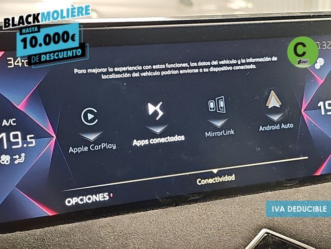 Hola, ¿Cómo estás? Nos enorgullece que estés viendo el anuncio de uno de nuestros más de 500 vehículos y que te vamos a facilitar todo para que sea tuyo. Somos Autos Moliere, el concesionario multimarca con la mejor reputación online de España. - 15 días o 500Km para comprobar que es tu vehículo, si no, lo devuelves. *Consulte condiciones* - GESTIONAMOS LA ENTREGA DE SU VEHÍCULO EN UN TIEMPO RECORD. - Los mejores precios garantizados. - Vehículos certificados en más de 260 puntos (la más amplia del mercado). - Tenemos más modelos a tu disposición en nuestro amplio stock. - Descuento de hasta el 10% por financiar tu vehículo con nosotros. Garantía de 12 meses ampliable hasta 48 meses. IVA DEDUCIBLE INCLUIDO EN EL PRECIO. ¡Llámanos! Precio al contado: 15.890€. Precio financiado: 15.263€. *Este anuncio no es vinculante, puede contener errores, se muestra a título informativo y no contractual. Ponemos a tu disposición este coche de segunda mano en muy buen estado. Un vehículo de ocasión con equipamiento completo, bajo consumo y precio competitivo, ideal para quienes buscan un coche usado de confianza con posibilidad de financiación a medida. Contamos con las marcas más buscadas como Toyota, Renault, Volkswagen, SEAT, Hyundai, Peugeot, Dacia, MG, BYD, Link&Co, Omoda, todas revisadas y listas para entregar. Aprovecha esta oportunidad y conduce hoy mismo tu coche listo para disfrutar en Málaga, Sevilla, Madrid, Valencia, Barcelona o cualquier punto de la península al que quieras que te lo enviemos. ***EQUIPAMIENTO OPCIONAL INCLUIDO*** - Asiento delante izquierda regulable eléctricamente (con Memory) - Asistente a la conducción: asistente de subidas - Asistente a la conducción: Freno de emergencia en ciudad (Active City Brake) - Asistente a la conducción: reconocimiento de señales de tráfico - Caja de cambios automática - Control de crucero (Tempomat) incluido Sistema limitador de velocidad - Elevalunas eléctricos delante - Acceso sin llave - Llantas de aleación ligera - Mando a distancia para Cierre centralizado - Paquete de equipamiento: Ds inspiration performance line - Paquete de equipamiento: DS Sensorial Drive - Retrovisor exterior "negro" brillante, pie retrovisor pintado - Retrovisor exterior regulable eléctricamente, calefactable y plegable - Sistema de audio: DS Connect 2 - Micro Teléfono Longitud 100 Mm Conductor + Pasajero - Apple/Android/mirror link - Con Kit Telefono Manos Libres - Con Wifi - Con Mirror Link - Navegación Conectada Analógica - Con Sistema de Navegación Pantalla Color - Con Ayuda Visual Panorámica Trasera Visión Park1 - Detector de Obstaculos Radar Delantero y Trasero - Regulador y Limitador de Velocidad Programable - Llantas de aleación ligera de 17 Pulgadas Tema 2 - Control Dinamico de Estabilidad - Con Hill Assist