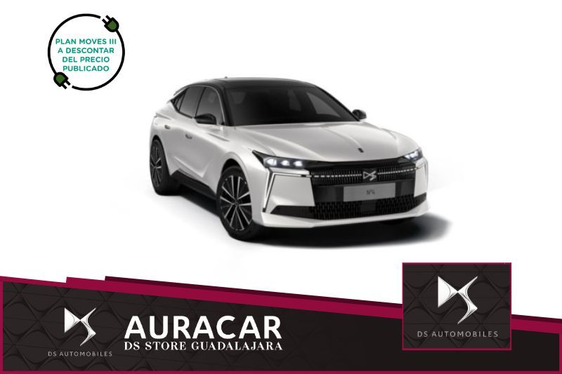 12-043. Vehículo nuevo a matricular, con recompra. Contacte con nosotros para más información. Nº4 E-TENSE ÉTOILE ALCANTARA + BOMBA de calor + Pack easy access: Portón de maletero motorizado con acceso brazos cargados + PACK CONFORT PLUS E-TENSE + Pintura techo en color Negro Perla + Techo panorámico eléctrico En el precio de este vehículo no se ha descontado la ayuda del Plan Moves III, la cual se ha prorrogado hasta el 31 de Diciembre de 2025, así como las deducciones fiscales por la adquisición de vehículos e instalación de recarga. Para más información contacte con nosotros y le informaremos de las ayudas a las quepuedeacceder. AURACAR · DS STORE GUADALAJARA Somos su boutique DS Automobiles en Guadalajara. Visítenos en Calle Trafalgar, 30, Guadalajara. Especialistas en vehículos Híbridos y Eléctricos. Le ayudamos elegir el vehículo que mejor se adapta a sus necesidades. Contamos con más de 20 años de experiencia en el sector representando a las marcas Citroën, DS Automobiles, Peugeot, Opel, Alfa Romeo, Jeep, Fiat, Abarth, Nissan, Hyundai, Mazda, MG y Leapmotor. COMPROMISO: - Precio final, todo incluido. ¡Sin sorpresas! - Incluye Garantía Oficial DS Automobiles. - Incluye Gastos de Matriculación y Gestoría. - Aceptamos su vehículo como parte del pago. - Financiación a medida: Contáctenos y le informaremos al respecto. Vehículo con entrega a domicilio disponible. Disfrute de DS Valet y reciba su DS en la puerta de su domicilio. Para ver más vehículos de nuestras marcas visite nuestra web auracar.es Excepcionalmente, las imágenes pueden no corresponderse con el vehículo ofertado.