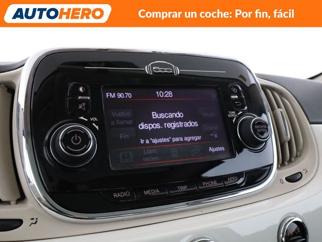 AUTOHERO, Comprar un coche: Por Fin, Fácil Disfruta de nuestras ofertas y ventajas por ser nuestro cliente: - Recoge el coche de tus sueños gratis en cualquiera de nuestros puntos de entrega. ¡solo por tiempo limitado, no lo dejes escapar! - Cuida del coche con el mantenimiento más completo desde 5€ al mes - Financia con nosotros, y consigue uno de los TIN más bajos del mercado - Garantía gratuita de 12 meses incluida y ampliable hasta 36 meses - Política de devolución de 21 días con garantía de devolución del 100% del dinero Compra el coche de tus sueños en tan solo unos pocos clics. Entra en nuestra web y disfruta de la experiencia Autohero. Características del vehículo: - Control de crucero - Limitador de velocidad - Parabrisas calefactable - Techo panorámico - Climatizador automático - Asientos traseros abatibles - Volante multifuncional - Elevalunas eléctricas delanteras - Cierre centralizado - AUX - USB - Dispositivo de manos libres Bluetooth - Ordenador de a bordo - Entrada 12V - Retrovisor exterior color carrocería - Retrovisor exterior regulable eléctricamente - Luces antiniebla - Luces de lectura - Lunas atérmicas - Limpialuneta trasera - Sistema antibloqueo (ABS) - Programa electrónico de estabilidad (ESP) - Anclajes Isofix para Asiento para niños en Asiento trasero - Airbag conductor/acompañante - Airbag del acompañante desconectable - Airbag lateral delante - Dirección asistida eléctric. - Tracción delantera - Caja de cambios 5-marcha - Luna trasera calefactable - Molduras laterales protectoras pintado incl. Logotipo 500 - Manetas ext. Cromado - Parrilla del radiador cromada - Reposacabezas detrás - Cuentarrevoluciones - Parachoques color carrocería - Embellecedores de ventana Cromado - Carrocería: 3 puertas ¿A qué esperas? ¡Tenemos más de 4.000 coches disponibles! Para más información entra en nuestra web o contacta con nuestro equipo por teléfono. VB05096