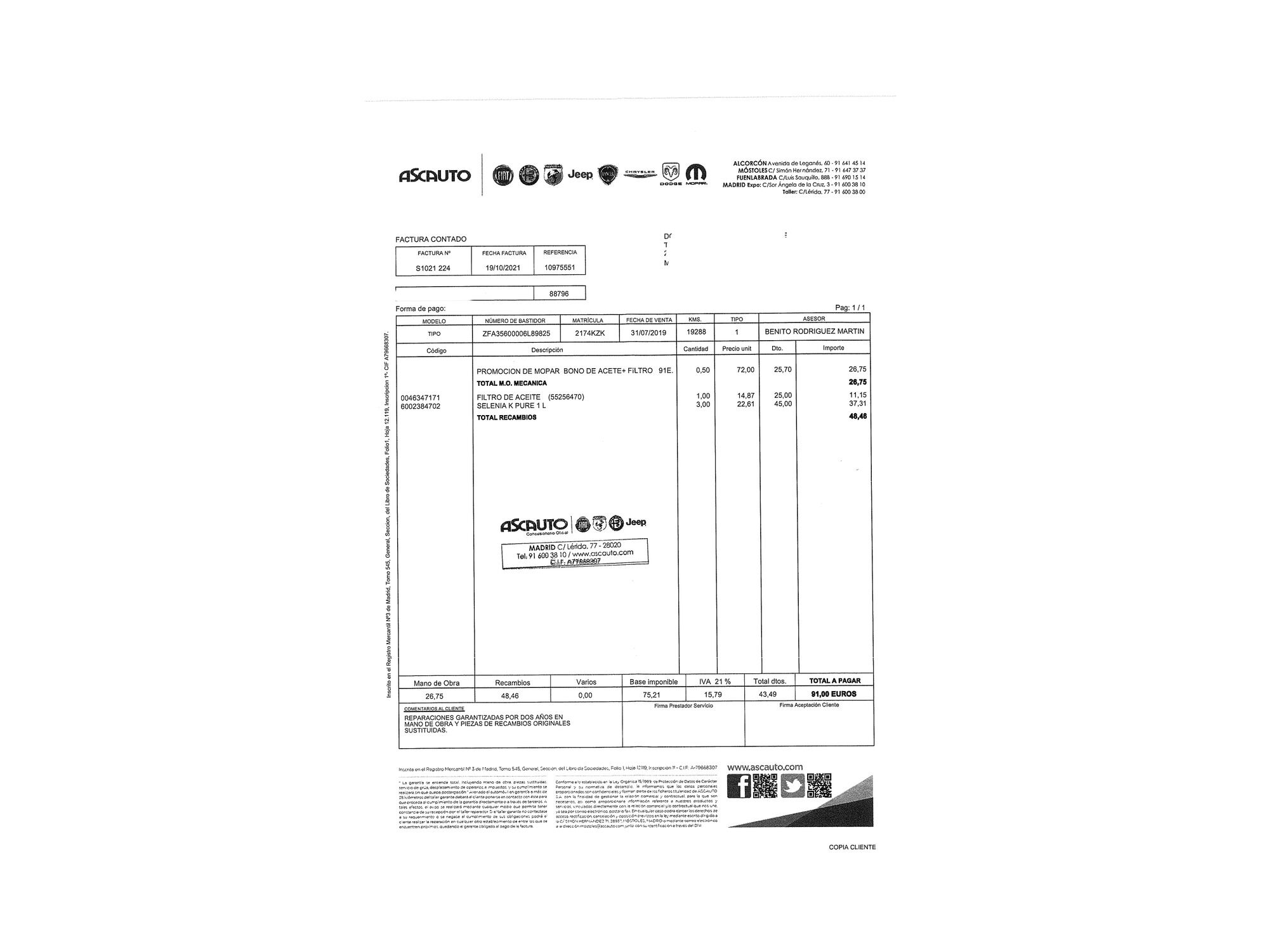 Fiat con 47.263 kilómetros de 2019 en Madrid