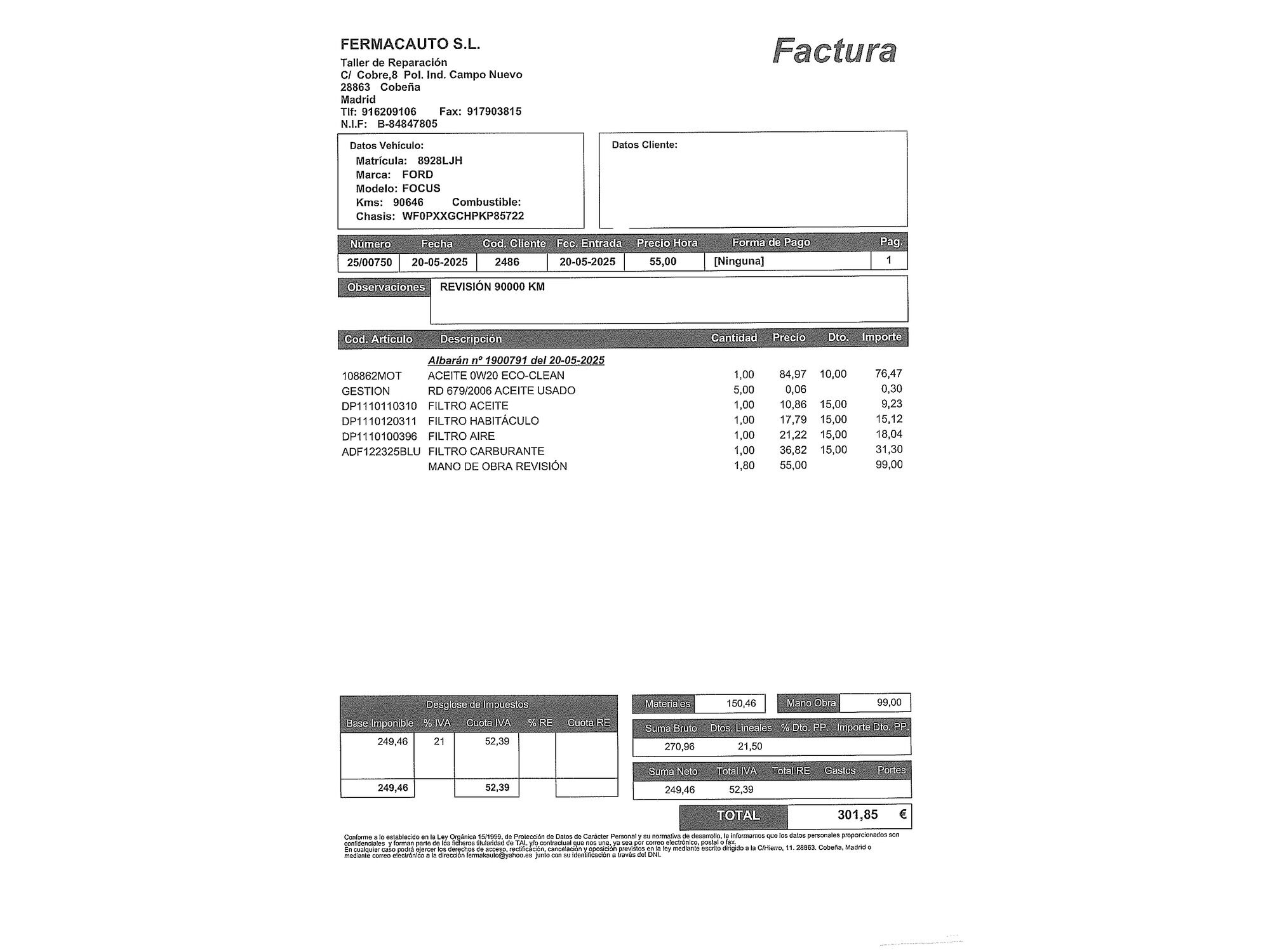 Ford con 100.239 kilómetros de 2020 en Madrid