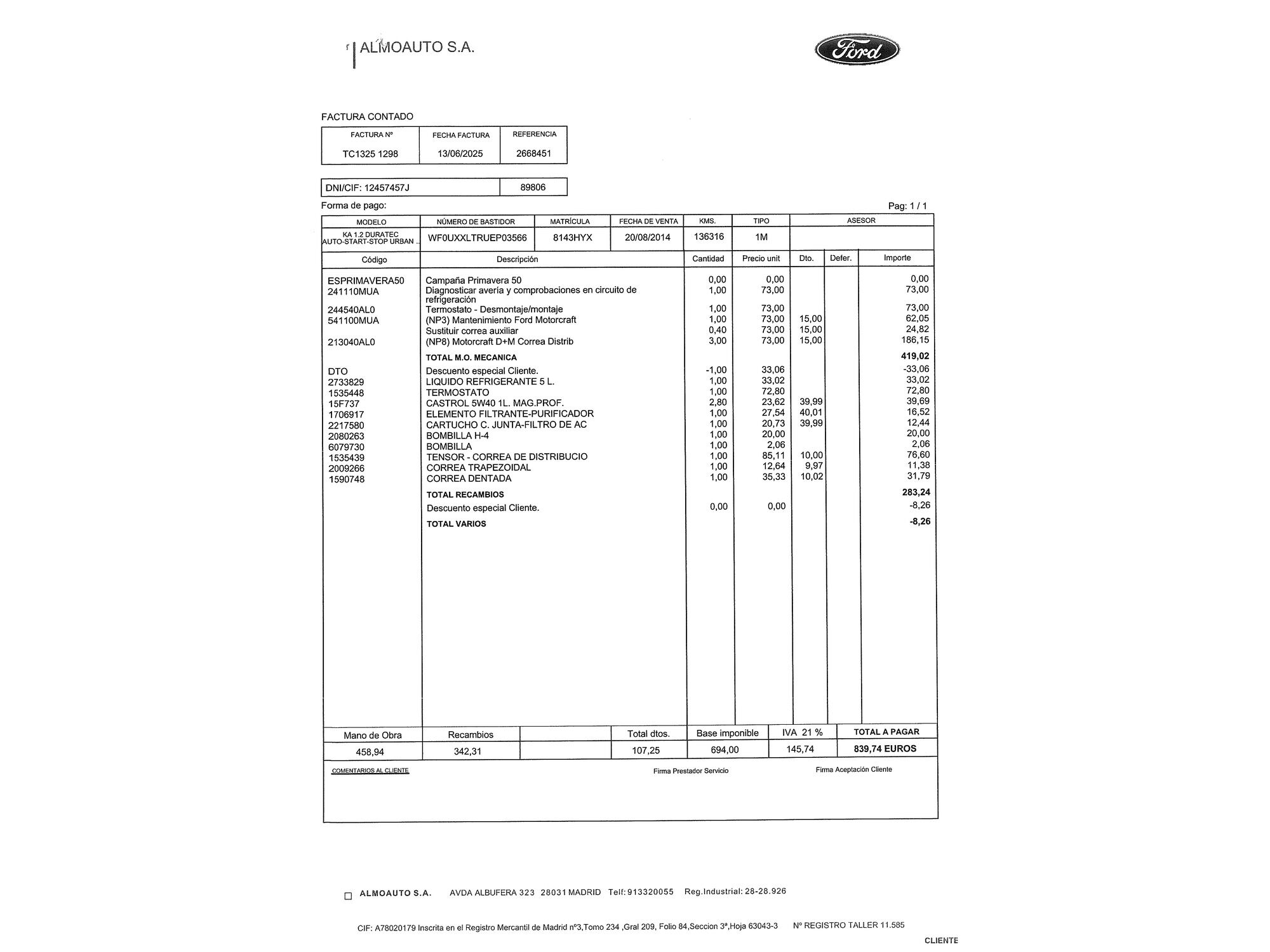 Ford con 142.335 kilómetros de 2014 en Madrid