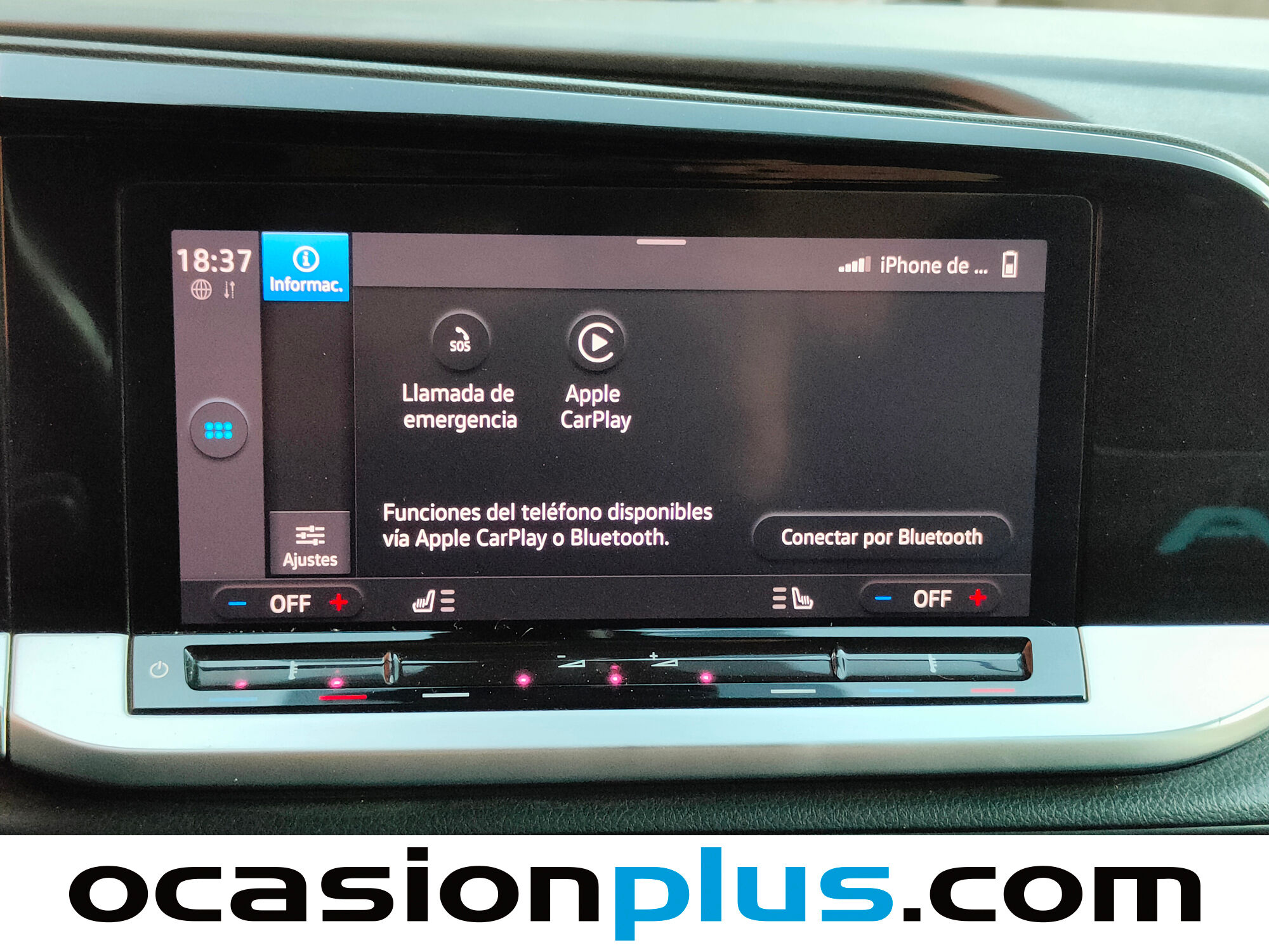 OCASIONPLUS - 20000 COCHES - 120 CENTROS OCASIONPLUS Nº1 CALIDAD - PRECIO Elige el coche que te guste y te lo llevamos a tu ciudad sólo con reservarlo 15 DÍAS / 1000 KMS DE PRUEBA Hasta 2362€ de descuento en este coche Precio oferta financiado: 23628€ (consulta condiciones específicas de promo - sujeta a aprobación de la entidad financiera) Precio al contado: 25990€ ADEMÁS, HACEMOS LAS MEJORES FINANCIACIONES DEL MERCADO, PREGÚNTANOS!! Equipamiento destacado: Asientos calefactables, Navegador, Cámara de marcha atrás, Car Play, Ayuda aparcamiento, Encendido automático de faros, Faros delanteros led, Start/Stop automático, Control de velocidad, Limitador de velocidad, Volante multifunción, Aire Acondicionado (Climatizador), Freno de estacionamiento eléctrico, Arranque por botón, Bluetooth, Llantas de aleación (17"). - Coche Nacional, Historial Mantenimiento, Único propietario. - Garantía total 1 año, con cobertura nacional, ampliable a 24 meses. - Certificado de Kilómetros y ausencia de golpes estructurales. - Sobrevaloramos tu coche en operaciones de cambio. Tásalo ahora en ocasionplus.com - Entregamos cualquier coche en cualquier centro - Abierto Domingo y Festivos.