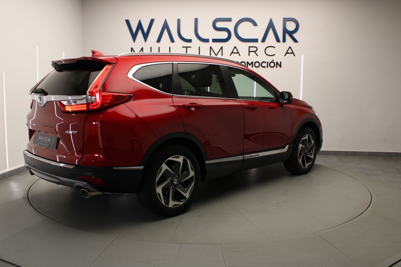 REF: 5905L Te presentamos esta unidad de HONDA CR-V en estado de reestreno Vehículo certificado por técnico especializado, acreditando la ausencia de daños estructurales y su kilometraje. Entre los detalles más relevantes de nuestra unidad, destacamos su tracción 4x4 y su impecable estado. Y además: -Llantas de 19 pulgadas -Dos llaves -Retrovisores automáticos -Entrada y arranque sin llave -Control de ángulo muerto -Asientos eléctricos, calefactables y con memoria para dos conductores -Asistente de mantenimiento en carril -Asistente de colisión frontal -Maletero eléctrico -Techo solar eléctrico -Volante calefactable -Display digital -Levas en volante -Luces automáticas y sensor de lluvia -Control de crucero con radar adaptativo -Sistema de navegación -Apple CarPlay y Android Auto -Cámara trasera y sensores de aparcamiento -Climatizador bizona -Modo ECON Fecha de matriculación Noviembre 2019 Precio financiando la totalidad del importe del vehículo con nosotros, consulta con nuestros asesores otras opciones. Gastos de gestión documental y preentrega: 300€. Aceptamos tu coche como parte del pago. Premiamos los vehículos mejor cuidados. Wallscar Multimarca, concesionario de vehículos y filial de Grupo Paredes Automoción, empresa con más de 30 años de experiencia en el sector automovilístico. Amplio stock con coches de KM0, coches de ocasión, coches de segunda mano y vehículos industriales. Somos concesionarios oficiales Volvo, KGM y EVO. Contamos con talleres oficiales Volvo, KGM, Alfa Romeo, Jeep, Fiat, Fiat Pro y Abarth. Este vehículo cuenta con el Certificado de Calidad Wallscar Premium: Hasta tres años de garantía*, garantía de recompra, garantía de no siniestralidad y garantía de óptimo estado. Visita nuestra web, wallscar.es, para una visión 360º interior y exterior de este vehículo o para tasar tu coche online. Vende tu coche en Wallscar y obtén la máxima valoración. Descubre nuestra gama Lynk & Co. Unidades de Lynk & Co 01 de segunda mano con muy pocos kilómetros. Somos concesionario especializado en Lynk & Co. Este anuncio no es vinculante y puede contener errores. Se muestra a título informativo y no contractual. Oferta y disponibilidad válida salvo error tipográfico. Consulte a nuestro equipo comercial la información relativa al modelo, precio y características técnicas. Wallscar Multimarca, tu concesionario de vehículos de ocasión en Alicante y Elche. Marca Ocasión Marca Segunda Mano REF: XXXX