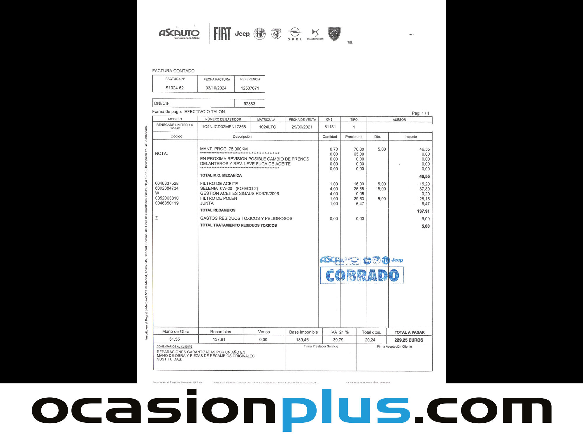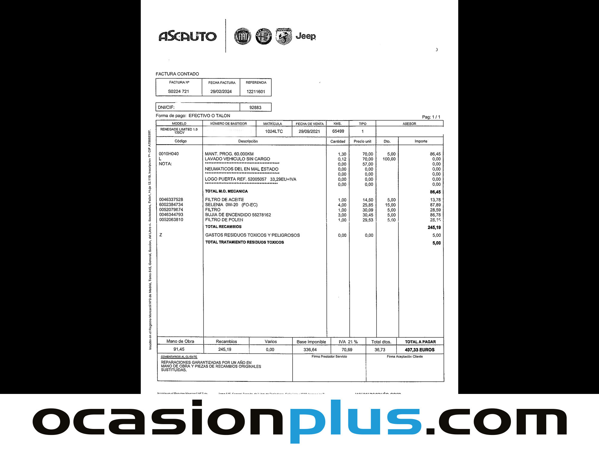 ¡LIQUIDACIÓN FIN DE AÑO DE OCASIONPLUS! LOS MEJORES PRECIOS DEL AÑO CON HASTA -40% DE DESCUENTO EN MÁS DE 16.000 COCHES. SÓLO HASTA EL 21 DE DICIEMBRE OCASIONPLUS - 16000 COCHES - 100 CENTROS OCASIONPLUS Nº1 CALIDAD - PRECIO Elige el coche que te guste y te lo llevamos a tu ciudad sólo con reservarlo 15 DÍAS / 1000 KMS DE PRUEBA Hasta 4217€ de descuento en este coche Precio oferta financiado: 13773€ (consulta condiciones específicas de promo - sujeta a aprobación de la entidad financiera) Precio al contado: 15150€ ADEMÁS, HACEMOS LAS MEJORES FINANCIACIONES DEL MERCADO, PREGÚNTANOS!! Equipamiento destacado: Navegador, Encendido automático de faros, Sensor de lluvia, Start/Stop automático, Control de velocidad, Limitador de velocidad, Volante multifunción, Aire Acondicionado (Climatizador), Bluetooth, Freno de estacionamiento eléctrico, Elevalunas eléctrico, Llantas de aleación (17"). - Coche Nacional, Historial Mantenimiento. - Garantía total 1 año, con cobertura nacional, ampliable a 24 meses. - Certificado de Kilómetros y ausencia de golpes estructurales. - Sobrevaloramos tu coche en operaciones de cambio. Tásalo ahora en ocasionplus.com - Entregamos cualquier coche en cualquier centro - Abierto Domingo y Festivos.
