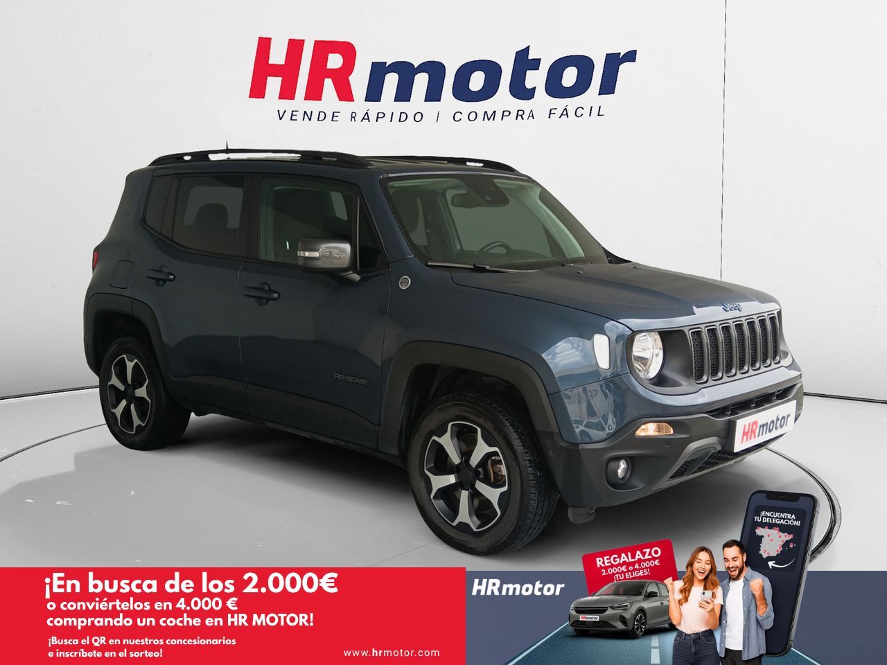 En HRmotor tenemos un coche como nuevo para ti esperándote. Disfrútalo con total tranquilidad, con hasta 2 años de garantía. Contamos con un stock de +3.000 coches de segunda mano para que puedas comprar un coche de ocasión que se adapte a todas tus necesidades y preferencias en nuestros más de 30 concesionarios repartidos en toda España. De esta manera nos encontramos en Madrid con 4 centros; en Barcelona con 4 centros; en Valencia con 3 centros; en Sevilla con 2 centros; en Málaga con 2 centros. Además, nos podrás encontrar también en Lleida, Girona, Castellón, Alicante, Bilbao, Gijón, Mallorca, Murcia, Pamplona, San Sebastián, Tudela, A Coruña, Valladolid, Zaragoza y Elche. Precio al contado de 19390€. o consultar condiciones. Jeep Renegade 1.3 PHEV Trailhawk 4Xe * Sujeto a condiciones. Consulte con su comercial V-0281804 ***EQUIPAMIENTO SERIE:*** - Mantenimiento del modelo - Paquete-LED - Protección inferior para Depósito, Cárter del distribuidor y Eje delantero - Programa de estabilidad para el remolque (TSA) - Retrovisor exterior plegable eléctricamente - Retrovisor exterior regulable eléctricamente y calefactable, ambos - Retrovisor exterior con Asistente de ángulo muerto - Barras portaequipajes en el techo - Intermitente en Retrovisor exterior integrad. - Encendido aut. luces de carretera - Asistente a la conducción: Asistente luz carretera adaptativa - Luces antiniebla con luz de giro estática - Asistente a la conducción: Reconocimiento de señales de tráfico - Sensor de luz y lluvia - Paragolpes Diseño Off-Road - Lunas detrás tintadas - Preinstalación radio, 6 Altavoces - Centro de información (EVIC) con 7-Display - Sistema audio-navegador Blaupunkt TravelPilot - Sistema audio-navegador - Ayuda aparcamiento detrás - Sistema control presión neumáticos - Control de crucero (Tempomat) - Airbag lado del conductor - Airbag acompañante - Sistema de airbag para la cabeza delante y detrás - Airbag lateral - Airbag acompañante Desconectable - Reposabrazos delante - Climatizador automático 2-zonas - Calefacción del asiento delante - Asiento delante izquierda regulable (6 posiciones) - Respaldo del asiento delante derecha abatible - Soporte lumbar Asiento delante izquierda, regulable eléctricamente - Asiento trasero dividido/abatible (40:20:40) - Reposacabezas detrás - Elevalunas eléctric. delante - Elevalunas eléctric. detrás - Cierre centralizado - Mando a distancia para Cierre centralizado - Sistema de encendido y apagado intelligent key - Agarraderos de la puerta ext. color carrocería - Cinturones de seguridad delante regulable en altura - Retrovisor interior con sistema antideslumbramiento autom. - Enchufe (enchufe 12V) delante - Orejas de amarre Maletero/compartimento de carga - Anclajes Isofix para Asiento para niños - Cámara de marcha atrás - Freno de estacionamiento eléctric. - Asistente a la conducción: Aviso de colisión frontal (Forward Collision Warning) - Sistema protección antivuelco (Protección-rollover-activo, ARP) - Asistente a la conducción: Sistema de aviso-cambio de vía - Llantas de aleación 7x17 - Kit reparación de neumáticos - Volante con Multifunción - Volante calefactable(s) - Volante (cuero) - Volante (piel sintética) - Columna de dirección (Volante) regulable mecánicam. - Dirección asistida - Dirección asistida electromecánica - Control de tracción electrónico - Control de tracción dinámica (DTC) - Programa electrónico de estabilidad (ESP) - Asistente a la conducción: Asistente de subidas - Cable para la carga (6 m.) con Enchufe Schuko (10 A) - Reducción polución según norma gases escape Euro 6d - Instalación de arranque y parada - Filtro partículas-Otto (GPF) (Filtro part. Otto) - Plug-in Tecnología-híbrida - Carrocería: 5 puertas - Tipo transmisión: Tracción total - Batalla 2570 mm - Caja de cambios automática - (6 velocidades) - Híbrido 177 kW (Motor 1,3 Ltr. - 132 kW)