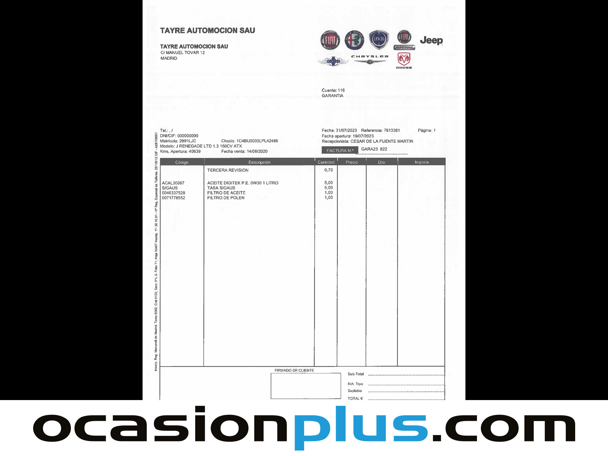 OCASIONPLUS - 16000 COCHES - 100 CENTROS OCASIONPLUS Nº1 CALIDAD - PRECIO Elige el coche que te guste y te lo llevamos a tu ciudad sólo con reservarlo 15 DÍAS / 1000 KMS DE PRUEBA Hasta 2671€ de descuento en este coche Precio oferta financiado: 14719€ (consulta condiciones específicas de promo - sujeta a aprobación de la entidad financiera) Precio al contado: 16190€ ADEMÁS, HACEMOS LAS MEJORES FINANCIACIONES DEL MERCADO, PREGÚNTANOS!! Equipamiento destacado: Navegador, Car Play, Cámara de marcha atrás, Encendido automático de faros, Sensor de lluvia, Asistente de mantenimiento de carril, Faros delanteros led, Faros traseros led, Start/Stop automático, Control de velocidad, Limitador de velocidad, Volante multifunción, Aire Acondicionado (Climatizador), Freno de estacionamiento eléctrico, Arranque por botón, Bluetooth, Llantas de aleación (17"). - Coche Nacional, Historial Mantenimiento. - Garantía total 1 año, con cobertura nacional, ampliable a 24 meses. - Certificado de Kilómetros y ausencia de golpes estructurales. - Sobrevaloramos tu coche en operaciones de cambio. Tásalo ahora en ocasionplus.com - Entregamos cualquier coche en cualquier centro - Abierto Domingo y Festivos.