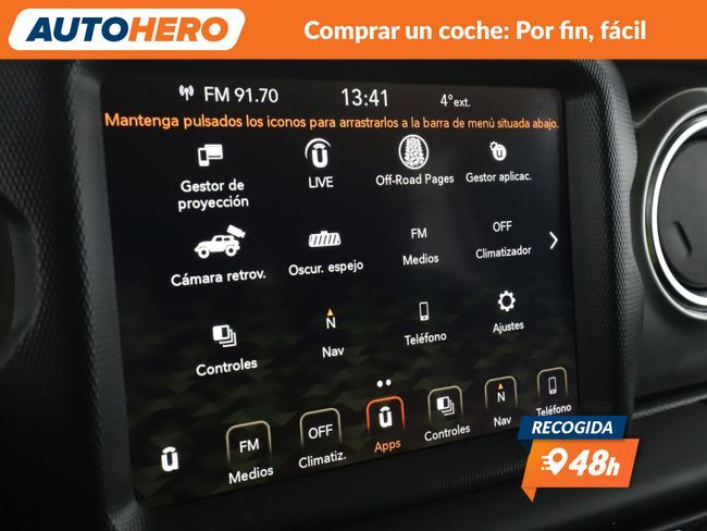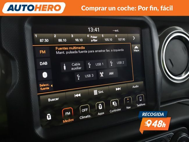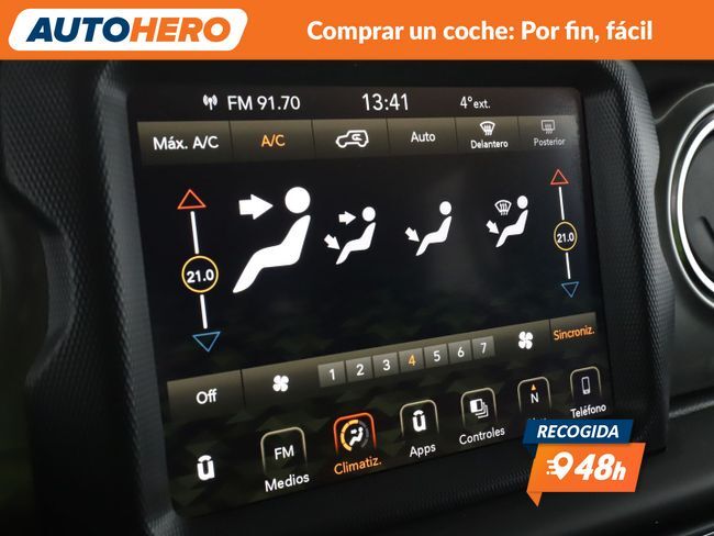 AUTOHERO, Comprar un coche: Por Fin, Fácil Disfruta de nuestras ofertas y ventajas por ser nuestro cliente: - Recoge el coche de tus sueños gratis en cualquiera de nuestros puntos de entrega. ¡solo por tiempo limitado, no lo dejes escapar! - Cuida del coche con el mantenimiento más completo desde 5€ al mes - Financia con nosotros, y consigue uno de los TIN más bajos del mercado - Garantía gratuita de 12 meses incluida y ampliable hasta 36 meses - Política de devolución de 21 días con garantía de devolución del 100% del dinero Este vehículo está disponible en uno de nuestros Autohero Center, llámanos y pregunta su disponibilidad. Nuestro nuevo horario es: L-V: 09:00-21:00, S:10-19 y D:10-14 Pero si no puedes venir, no te preocupes, también puedes comprar el coche de tus sueños en tan solo unos pocos clics. Entra en nuestra web y disfruta de la experiencia Autohero. Características del vehículo: - Sistema de Navegación GPS - Control de crucero (Tempomat) - Limitador de velocidad - Cámara trasera - Sensores de aparcamiento delanteros y traseros - Parabrisas calefactable - Tracción total - Reconocimiento de las señales de tráfico - Climatizador automático 2 zonas - Asiento trasero dividido / plegable - Volante multifuncional - Control de descenso en pendientes - Elevalunas eléctricas delanteras - Elevalunas eléctricas traseras - Cierre centralizado con Mando a distancia - Arranque sin llave - Portavasos - Reposabrazos delantero - Bloqueo de elevalunas electricos trasero - Sistema Uconnect - Radio - AUX - USB - Bluetooth - Dispositivo de manos libres - Ordenador de a bordo - Intermitentes en retrovisores - Retrovisores exteriores regulables eléctricamente - Espejo interior - Control automático de las luces - Luces antiniebla - Lunas detrás tintadas - Parasoles - Luneta trasera calefactable - Sistema antibloqueo (ABS) - Programa electrónico de estabilidad (ESP) - Control de tracción - Sistema control presión neumáticos - Sistema de anclajes ISOFIX - Airbag acompañante desconectable - Airbag conductor - Airbag acompañante - Pintura metalizada - Dirección asistida - Sistema Start / Stop - Filtro partículas - Depósito AdBlue - Estribos laterales - Reducción polución según norma gases escape Euro 6d-TEMP - Manilla de la puerta ext. color carrocería ¿A qué esperas? ¡Tenemos más de 3.000 coches disponibles! Para más información ven a visitarnos a uno de nuestros Autohero Centers o contacta con nuestro equipo por teléfono. EC52957