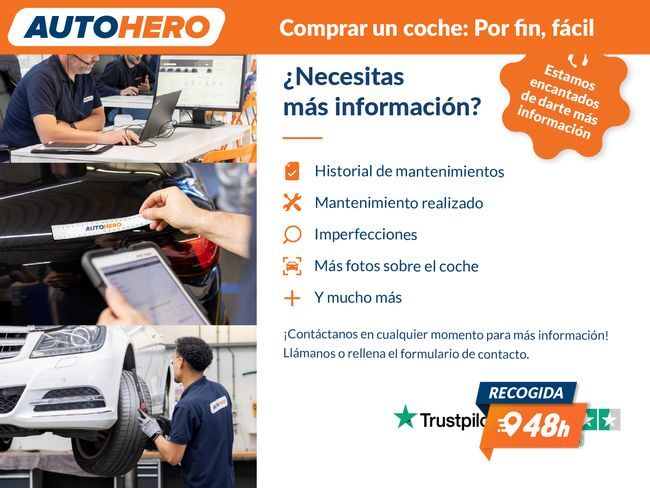 AUTOHERO, Comprar un coche: Por Fin, Fácil Disfruta de nuestras ofertas y ventajas por ser nuestro cliente: - Recoge el coche de tus sueños gratis en cualquiera de nuestros puntos de entrega. ¡solo por tiempo limitado, no lo dejes escapar! - Cuida del coche con el mantenimiento más completo desde 5€ al mes - Financia con nosotros, y consigue uno de los TIN más bajos del mercado - Garantía gratuita de 12 meses incluida y ampliable hasta 36 meses - Política de devolución de 21 días con garantía de devolución del 100% del dinero Este vehículo está disponible en uno de nuestros Autohero Center, llámanos y pregunta su disponibilidad. Nuestro nuevo horario es: L-V: 09:00-21:00, S:10-19 y D:10-14 Pero si no puedes venir, no te preocupes, también puedes comprar el coche de tus sueños en tan solo unos pocos clics. Entra en nuestra web y disfruta de la experiencia Autohero. Características del vehículo: - Control de crucero - Sensores de aparcamiento traseros - Parabrisas delantero calefactable - Parabrisas trasero calefactable - Climatizador automático - Cubierta del maletero - Bolsas portaobjetos en respaldos delanteros - Asientos traseros abatibles - Reposacabezas traseros - Volante multifuncional - Elevalunas eléctricas - Cierre centralizado - Portavasos - Bloqueo de elevalunas electricos trasero - Radio - Lector CD - AUX - USB - Bluetooth - Dispositivo de manos libres - Ordenador de a bordo - Retrovisores exteriores regulables eléctricamente - Control automático de las luces - Luces de lectura - Tercera luz de freno - Iluminación del maletero - Lunas tintadas - Parasoles - Limpiaparabrisas trasero - ABS - Sistema de Estabilizador Electrónico (ESP) - Sistema de anclajes ISOFIX - Airbag conductor / acompañante - Airbag acompañante desconectable - Airbag lateral - Pintura metalizada - Dirección asistida - Sistema Start / Stop - Tracción delantera - Transmisión manual 5 marchas ¿A qué esperas? ¡Tenemos más de 3.000 coches disponibles! Para más información ven a visitarnos a uno de nuestros Autohero Centers o contacta con nuestro equipo por teléfono. ZD98637