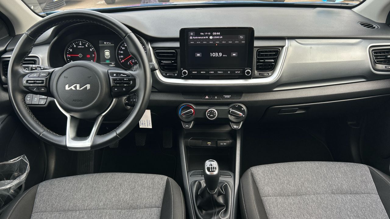 Este Kia Stonic 1.0 T-GDI MHEV Concept en color Sporty Blue es un SUV compacto que destaca por su diseño dinámico y eficiencia. Con solo 12.633 km, incorpora un motor de gasolina microhíbrido de 100 CV y cambio manual iMT, ofreciendo una conducción ágil y económica, perfecta para desplazamientos urbanos y escapadas por carretera. En su interior encontrarás un espacio práctico y bien equipado: pantalla táctil con conectividad, aire acondicionado, volante multifunción y control de crucero. Además, incluye asistentes de seguridad como frenada autónoma y aviso de cambio de carril, aportando confianza en cada trayecto. Es una opción ideal para quienes buscan un coche versátil, moderno y fácil de conducir. Financiación 100% a tu medida y hasta 3 años de garantía. Aceptamos tu coche como parte de pago, con la máxima tasación tanto presencial como online. ***EQUIPAMIENTO OPCIONAL INCLUIDO*** - Pintura metalizada ***EQUIPAMIENTO SERIE INCLUIDO*** - Cinco plazas ( 2+3 ) - Seis altavoces - Equipo de audio con radio AM/FM. radio digital y pantalla táctil pantalla a color - Control remoto de audio en el volante - Toma/s de 12v en los asientos delanteros - Cuatro frenos de disco siendo dos ventilados - ABS - Control de crucero - Espejo de cortesía iluminado en conductor en acompañante - Combustible: sin plomo 95 octanos y Combustible primario: gasolina - Acabados de lujo: pomo de la palanca de cambios en cuero - Alfombrillas - Faros con lente elipsoidal. bombilla halógena y luz larga con bombilla halógena - Regulación de los faros con ajuste de altura manual y sensor de oscuridad - Luces antiniebla delanteras - Luces laterales maniobras/de bordillo - Encendido diurno automático - Airbag lateral de cortina delantero y trasero - Bandeja trasera rígida - Cierre centralizado con mando a distancia - Portaequipajes longitudinal en el techo en Cromados/Plateados - Airbag frontal del conductor. airbag frontal del acompañante desconectable - Airbags laterales delanteros - Dos reposacabezas en asientos delanteros ajustables en altura. tres reposacabezas en asientos traseros ajustables en altura - Cinturón de seguridad delantero en asiento conductor. acompañante y ajustable en altura con pretensores - Cinturón de seguridad trasero en lado conductor. cinturón de seguridad trasero en lado acompañante. cinturón de seguridad trasero en asiento central de 3 puntos - Asientos de tela (material principal) y de tela (material secundario) - Asiento delantero del conductor individual. ajuste longitudinal manual y ajuste manual en altura con ajuste manual del respaldo. asiento delantero del acompañante individual y ajuste longitudinal manual con ajuste manual del respaldo - Sujetavasos en los asientos delanteros y los asientos traseros - Sistema de ventilación con filtro de pólen y filtro de carbón activo calefacción del motor - Aire acondicionado - Limpiaparabrisas delantero - Elevalunas eléctricos delanteros con uno de ellos de un solo toque. elevalunas eléctricos traseros - Sistema de servofreno de emergencia - Indicador de baja presion de los neumáticos con sensor Montado en la llanta - Preparación Isofix - Sistema activacion por voz otro - Filtro de partículas - Resultado de pruebas de impacto Euro NCAP :. puntuación global: 5.0. protección adultos: 93.0. protección niños: 84.0. protección peatones: 71.0. puntuación ayudas a la seguridad: 59.0. Versión evaluada: Kia Rio 1.2 GLS (Safety Pack) 5dr HA y Fecha del test: 13 dic 2017 - Control de arranque en pendiente - Encendido automático luces emergencia - Bluetooth - Start/Stop parada y arranque automático - Conexión para: USB delantero. 1. 0 y 0 - Limitador de velocidad - Luces de día con tecnología LED - Recuperación de la energía - Hibrido suave - Un motor eléctrico motor generador integrado c/ correa BISG