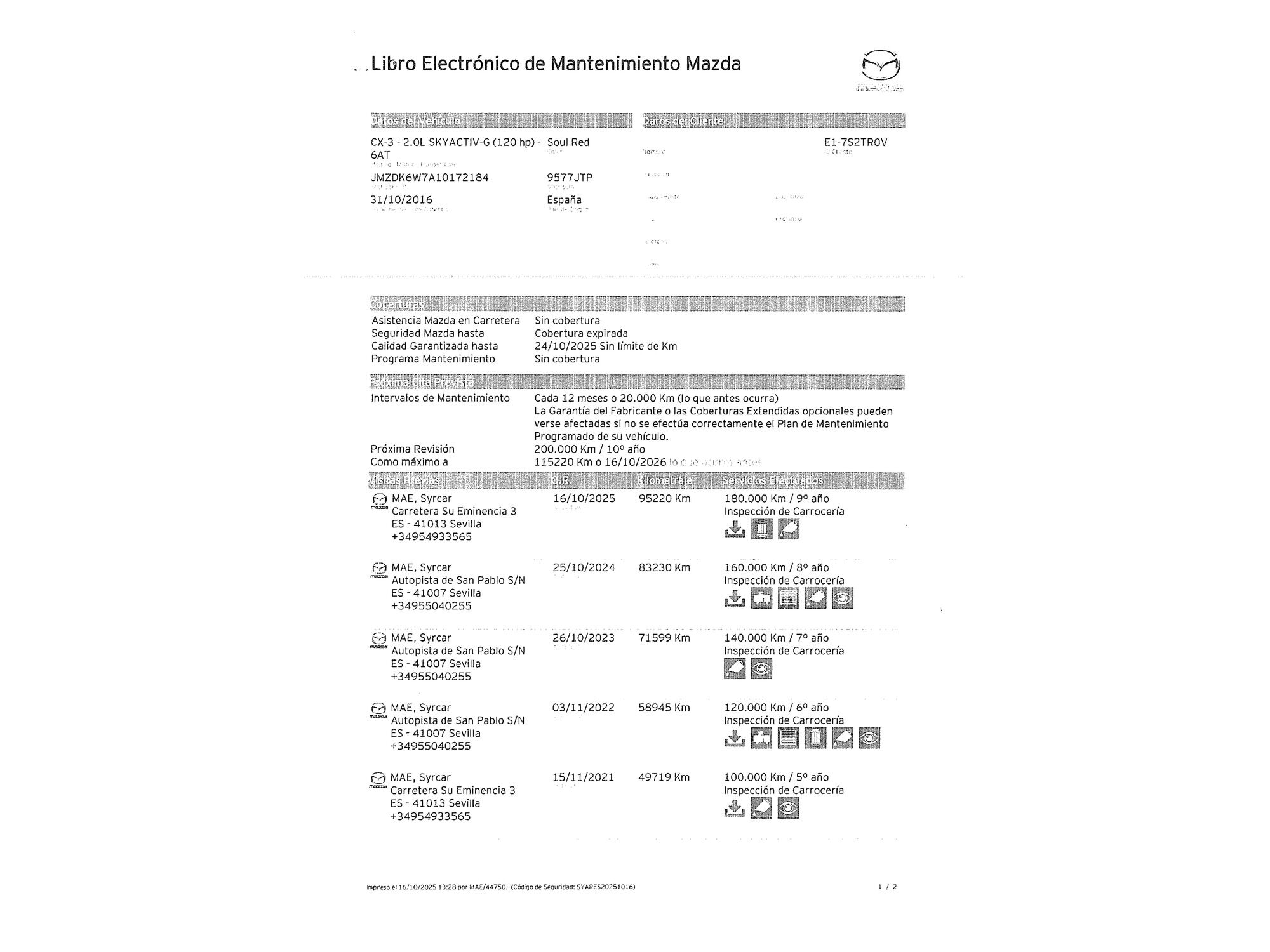 Mazda con 96.159 kilómetros de 2016 en Madrid